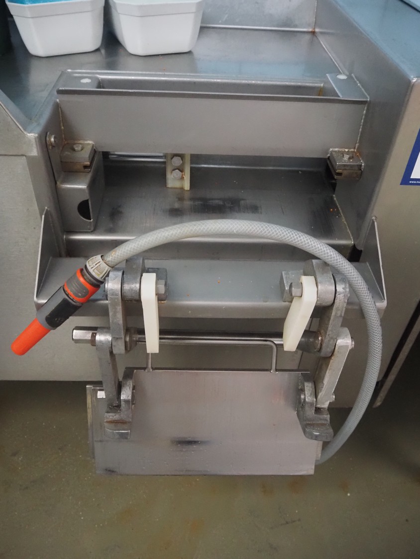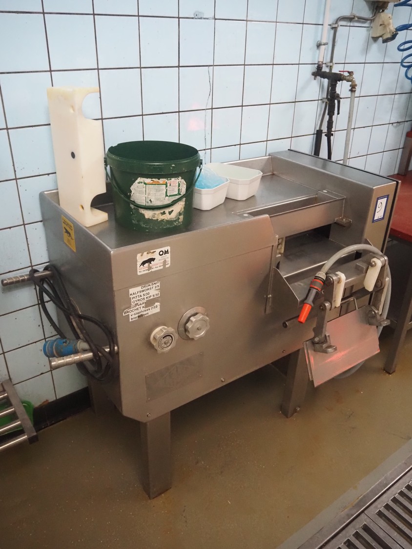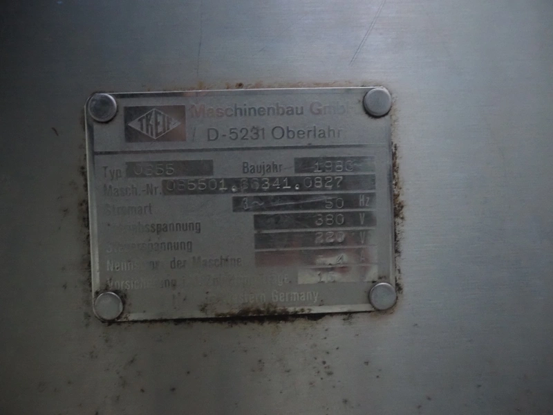 Treif Maschinenbau GmbH dicer, type: 0855, machine number: 085501.36341.0827, year of construction: 1986, 380/220 V, 50 Hz, chamber dimensions: 85 mm x 85 mm, total dimensions: 1200 mm x 750 mm x 1000 mm.