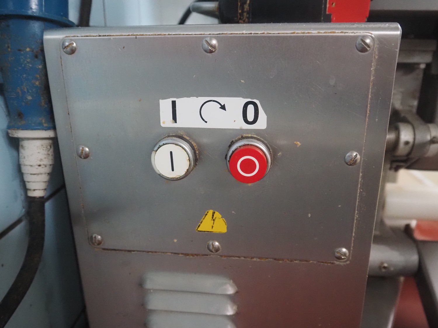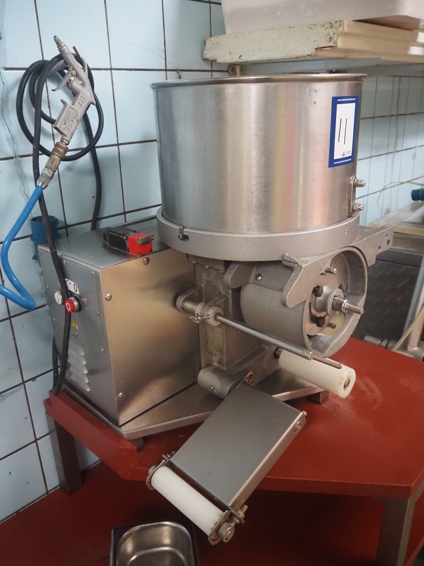 La Minerva hamburger forming machine, type: C/E651, serial number: 00E0080, 230 V, 3 Ph, 50 Hz, 2.8 A, 1.1 kW, total dimensions: 600 mm x 500 mm x 650 mm. Incomplete.