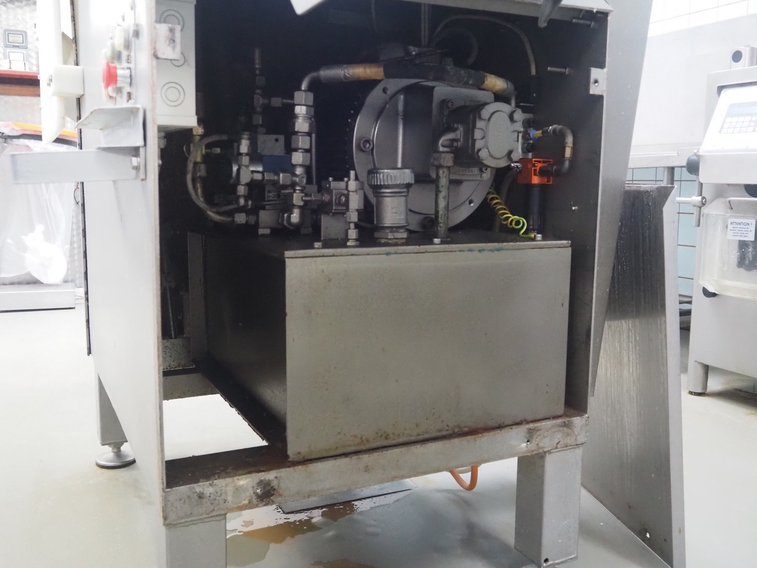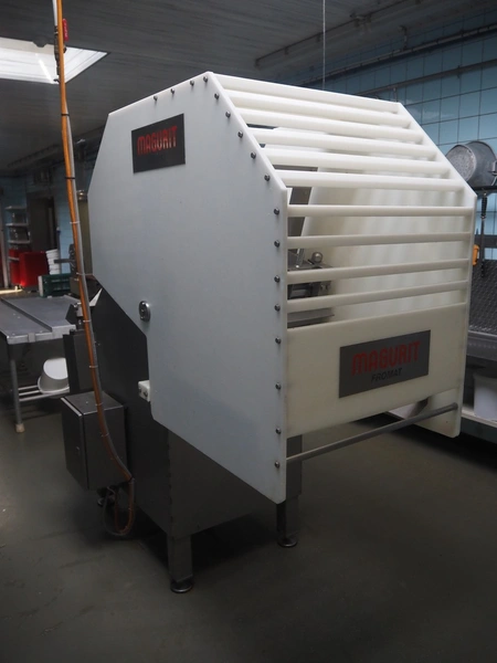 Magurit frozen block cutter, maximum block size: 500 mm x 500 mm x 400 mm, total dimensions: 2500 mm x 1000 mm x 2000 mm.