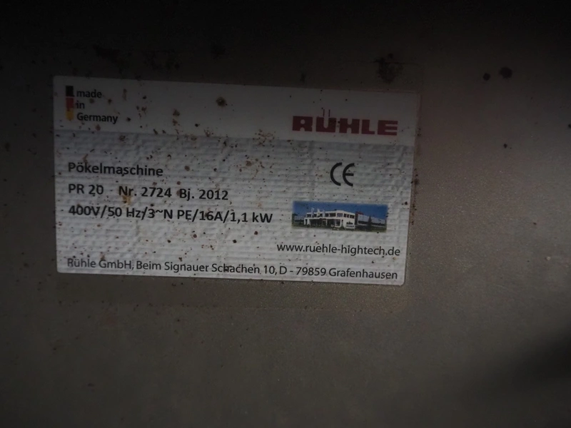 Rühle injector, type: PR 20, number: 2724, year of construction: 2012, 400 V, 3 Ph, 50 Hz, 16 A, 1.1 kW, s/s walking beam, beam width: 300 mm, working width: 280 mm, total dimensions: 1450 mm x 430 mm x 1750 mm.