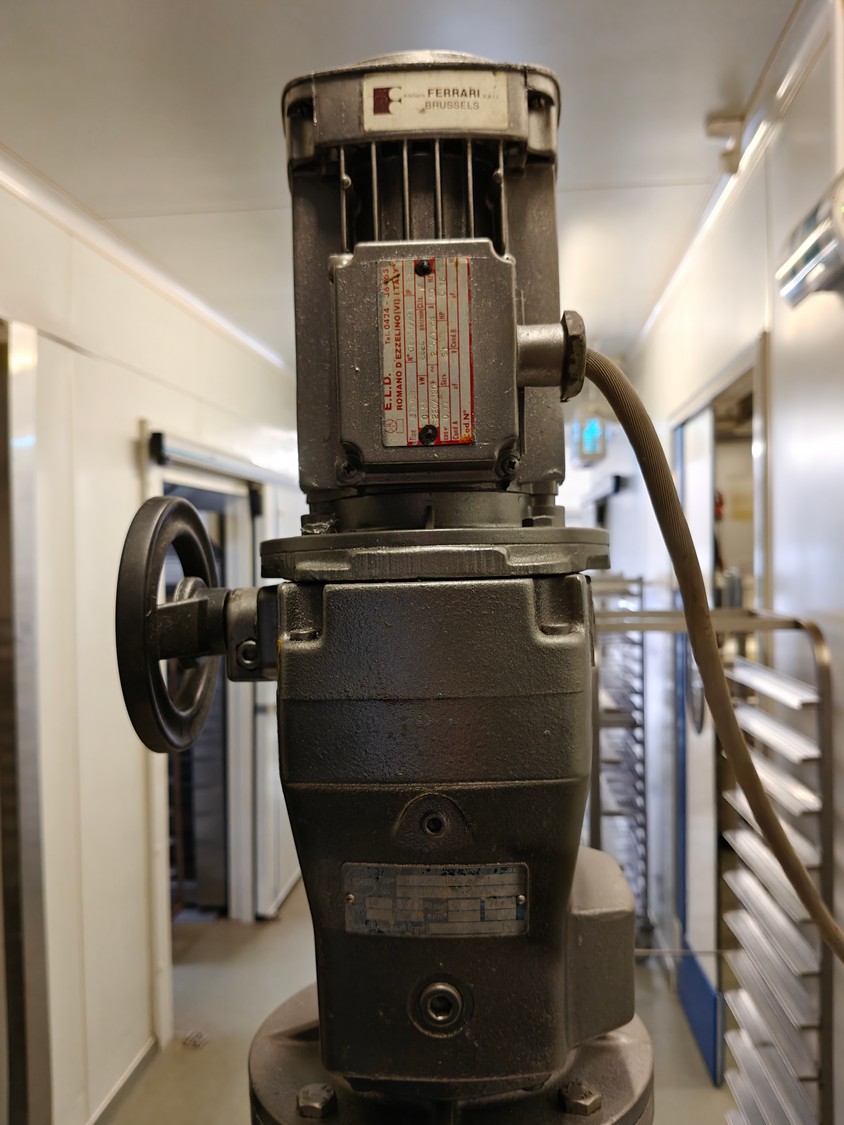 Ferrari mobile heated mixer, 400 V, 3 Ph, 400 volt , dimensions: 700 mm x 700 mm x 2150 mm. Including gas burner.
