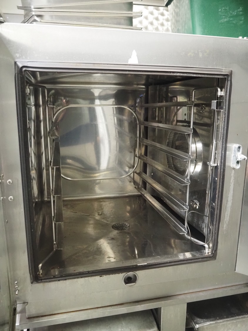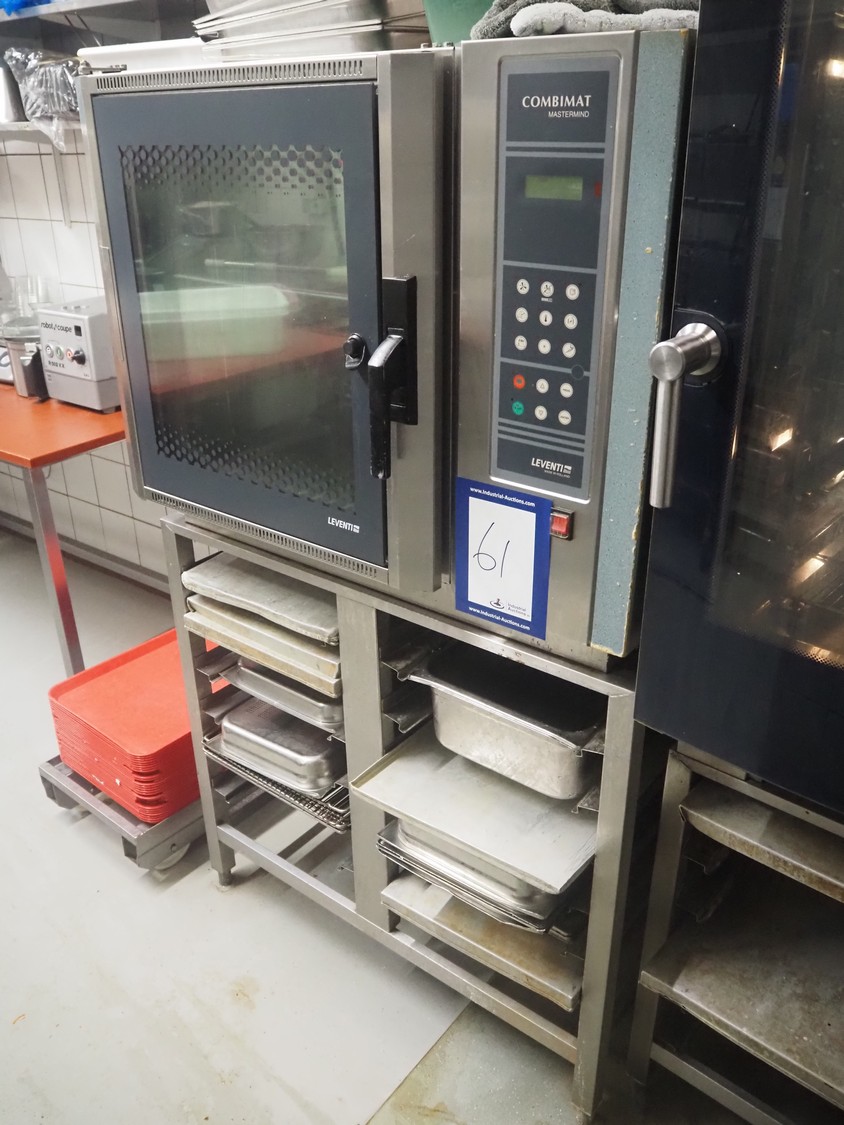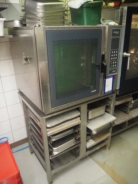 Leventi combi steamer, 6 floors, dimensions each floor: 550 mm x 380 mm, total dimensions: 970 mm x 830 mm x 1650 mm.