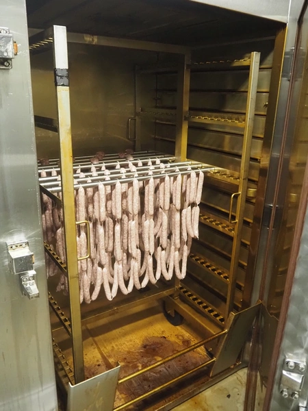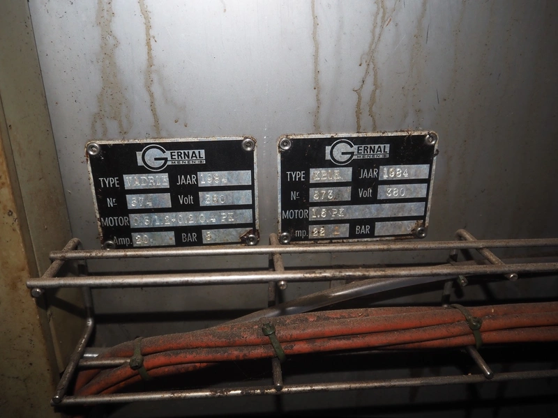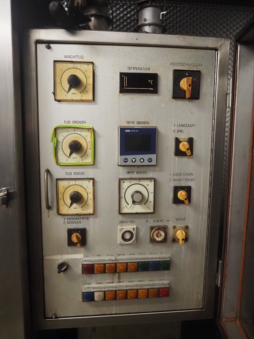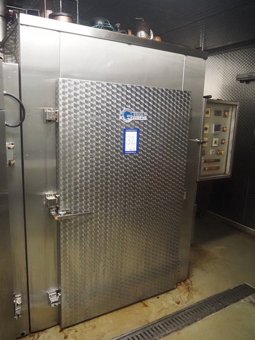 Gernal smoking chamber, type: VADRIE/KBIE, number: 573/574, year of construction: 1984, 380 V, 20/22 A, s/s smoke trolley, 6 floors, dimensions: 1000 mm x 1010 mm x 1800 mm, total dimensions: 2150 mm x 1200 mm x 2300 mm, with smoke generator, dimensions: 600 mm x 500 mm 1500 mm.