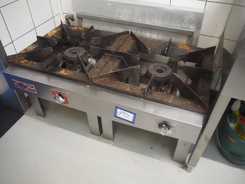Delrue 2-pits gas stove, number: 1-9960259, dimensions: 1100 mm x 700 mm x 700 mm.