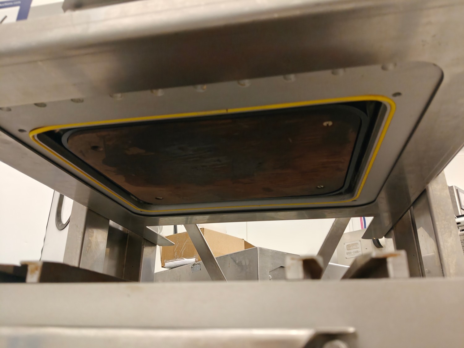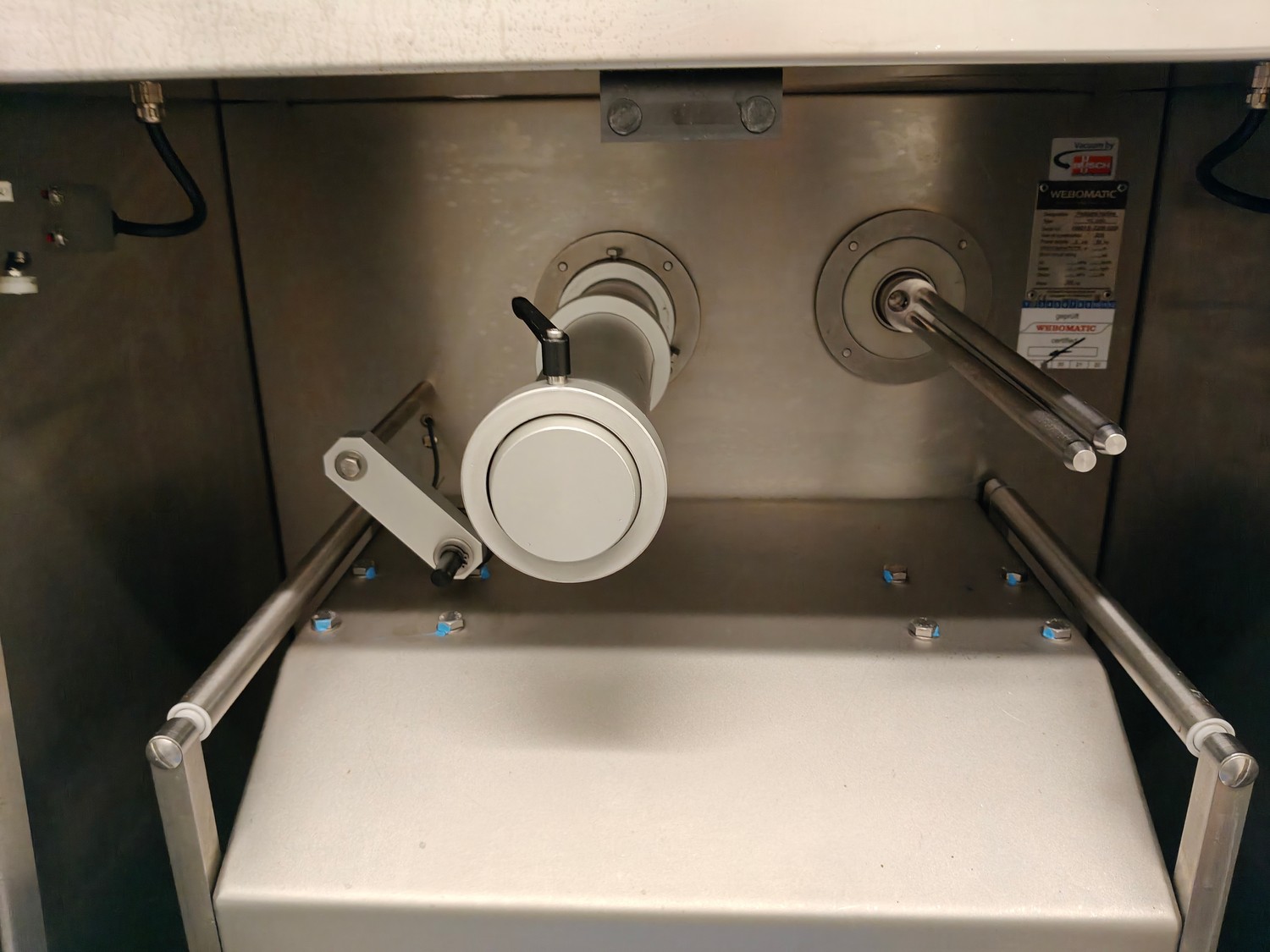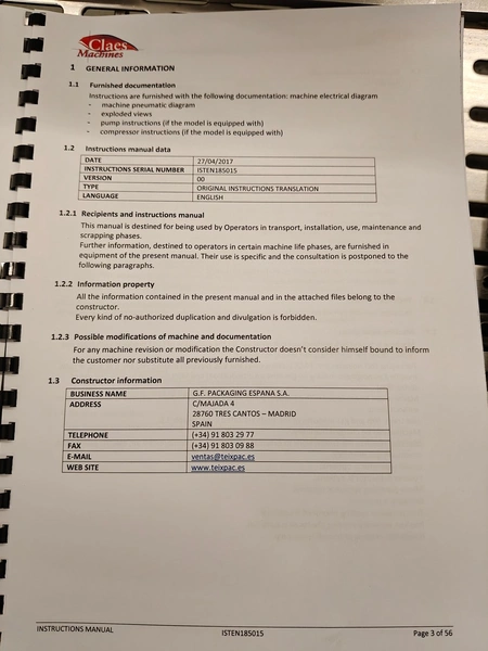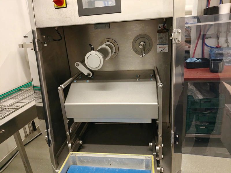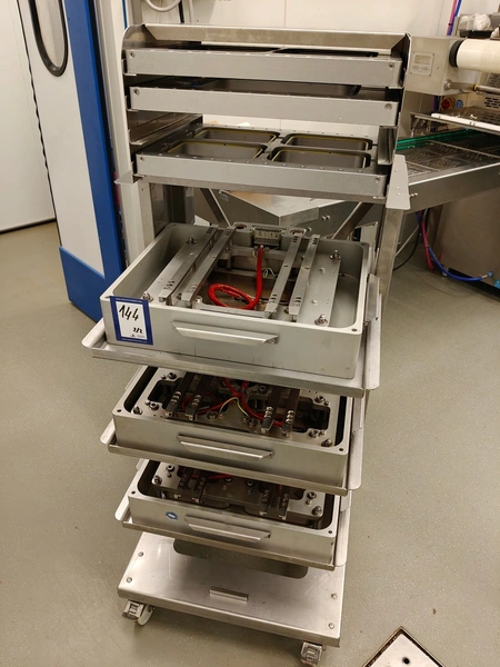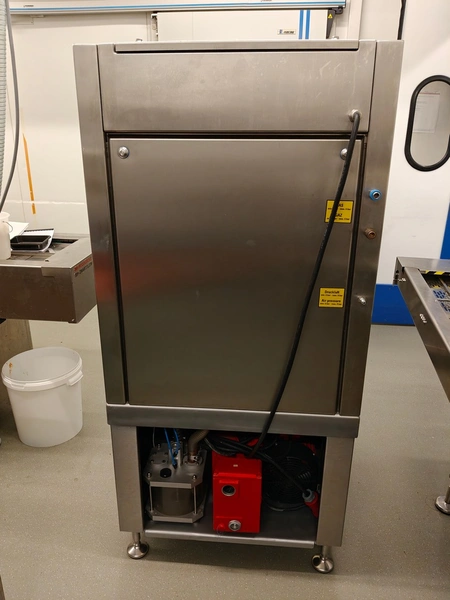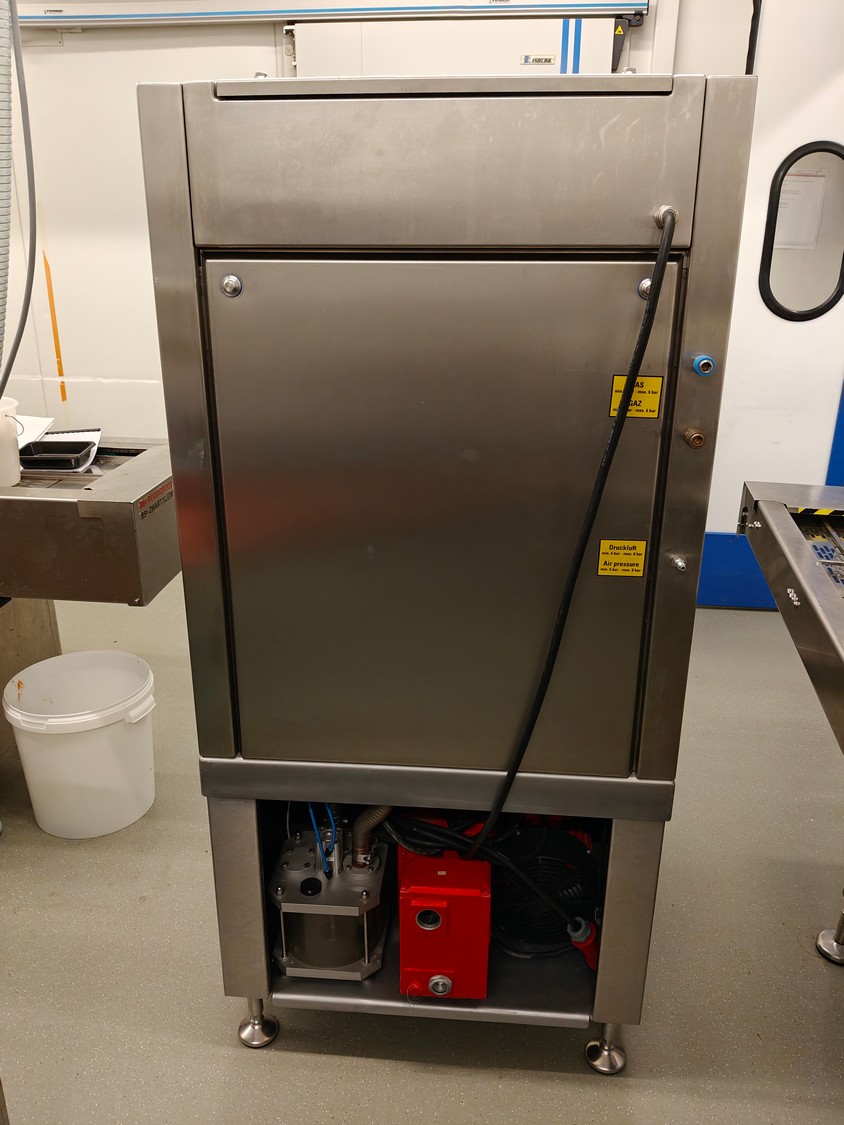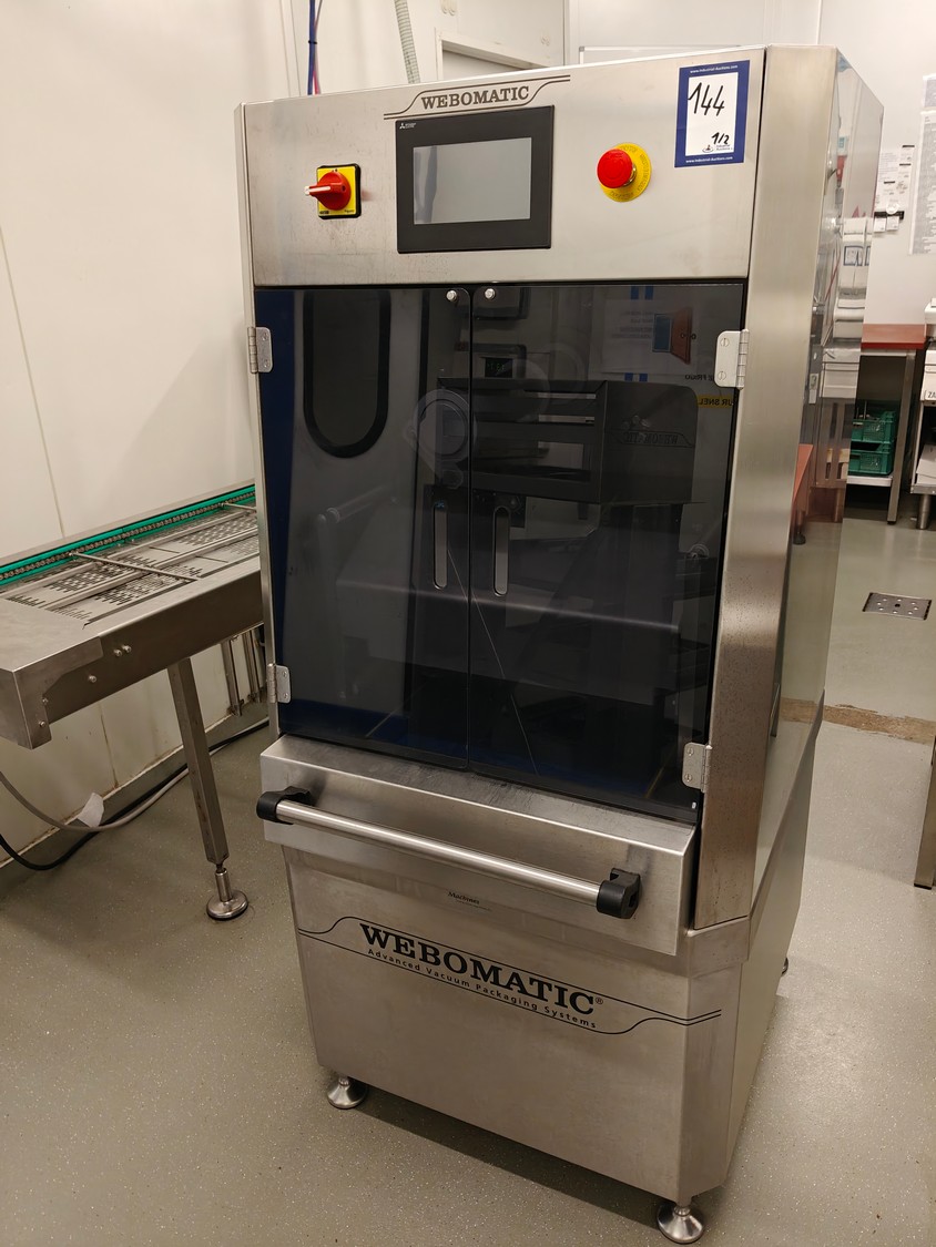 Webomatic traysealer, type: TL 250, serial number: H9015-Z2B-329, year of construction: 2019, 400 V, 3 Ph, 50 Hz, 3 kW, 380 kg, Busch vacuum pump, type: RA 0063 F 4S3, serial number: D188340299, year of construction: 2018, capacity: 63 m³/h, dimensions: 810 mm x 860 mm x 1730 mm. Including s/s tool trolley with various dyes, dimensions dyes: (4x) 172 mm x 122 mm, (2x) 160 mm x 210 mm and 1x 302 mm x 242 mm, dimensions trolley: 600 mm x 800 mm x 1450 mm.