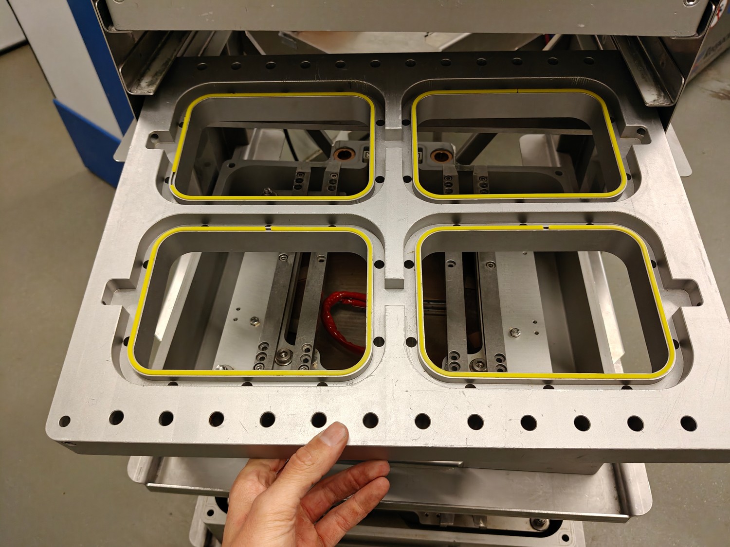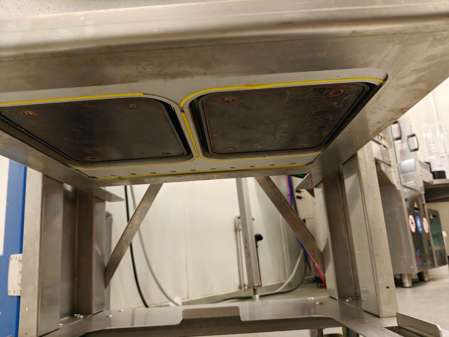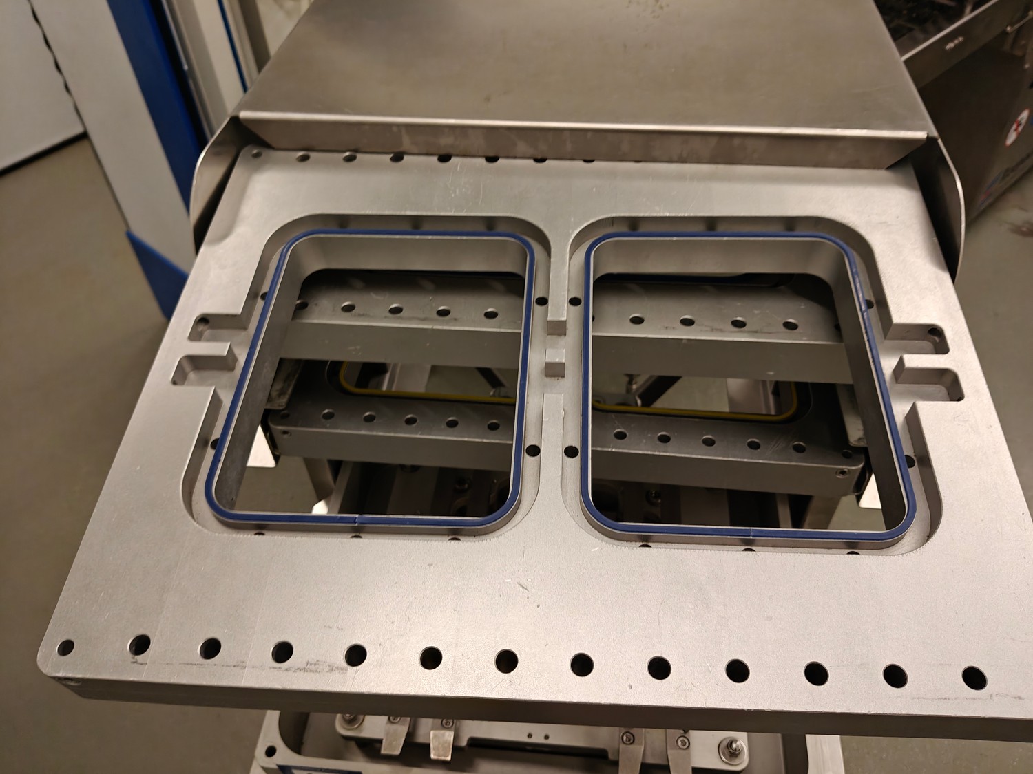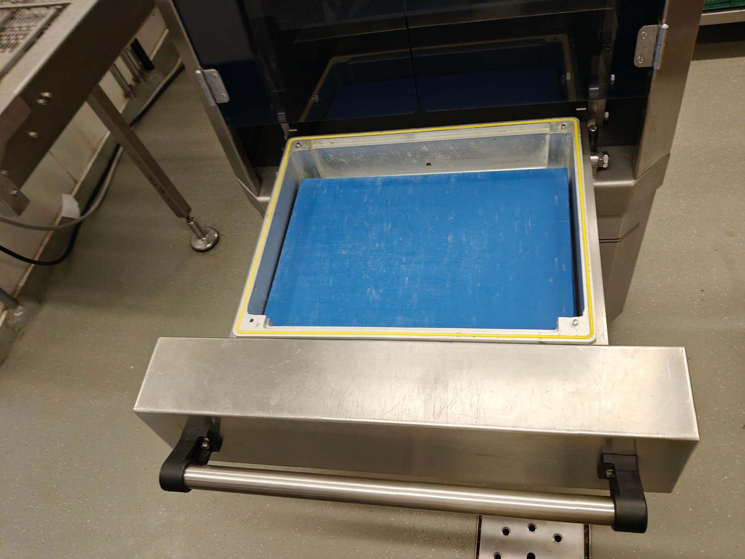 Webomatic traysealer, type: TL 250, serial number: H9015-Z2B-329, year of construction: 2019, 400 V, 3 Ph, 50 Hz, 3 kW, 380 kg, Busch vacuum pump, type: RA 0063 F 4S3, serial number: D188340299, year of construction: 2018, capacity: 63 m³/h, dimensions: 810 mm x 860 mm x 1730 mm. Including s/s tool trolley with various dyes, dimensions dyes: (4x) 172 mm x 122 mm, (2x) 160 mm x 210 mm and 1x 302 mm x 242 mm, dimensions trolley: 600 mm x 800 mm x 1450 mm.