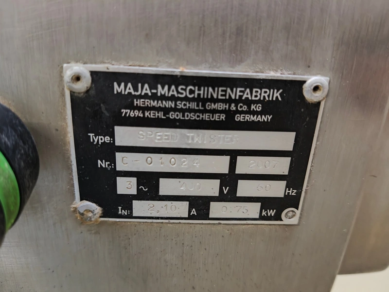 Maja Maja-Maschinenfabrik mobile speed twister, type: speed twister, number: C-01024, year of construction: 2007, 400 V, 3 Ph, 50 Hz, 2.10 A, 0.75 kW dimensions: 1270 mm x 630 mm x 1240 mm.
