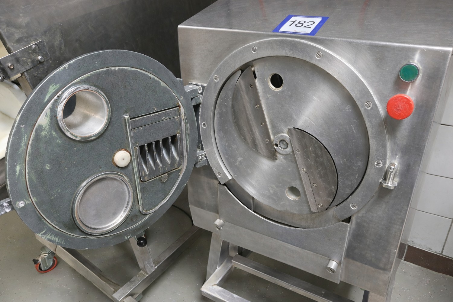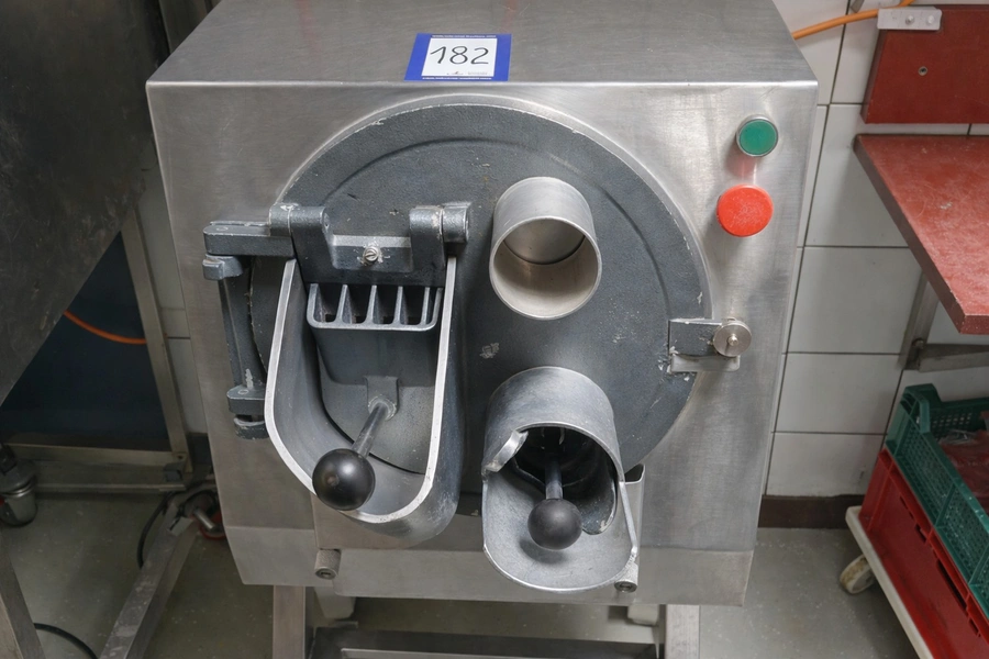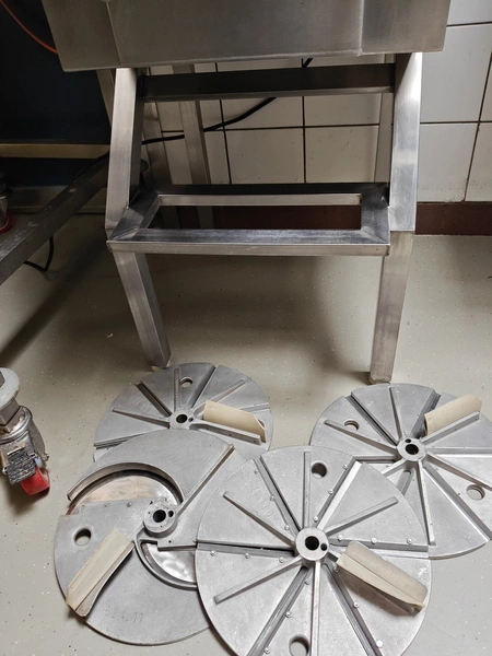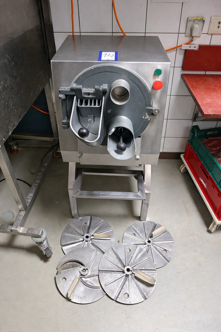 Duurland vegetable slicer, 230 V, 1 Ph, dimensions: 740 mm x 500 mm x 1130 mm. Including 5 knives.