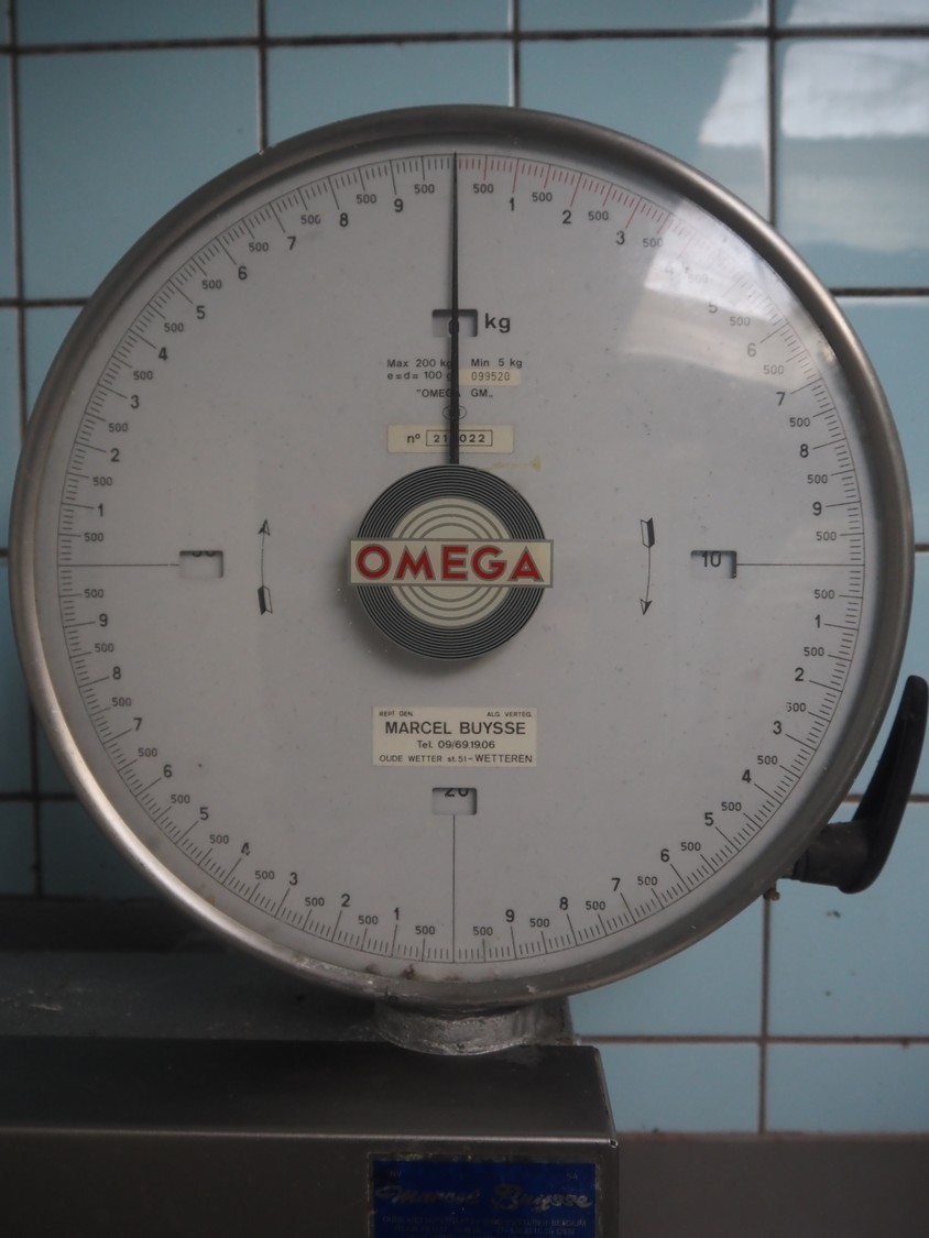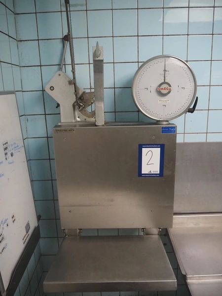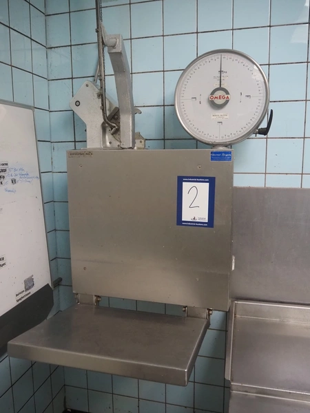 Omega hook weighing scale, number: 21022, maximum weight: 200 kg, minimum weight: 5 kg, e=d= 100 g, dimensions: 700 mm x 700 mm x 1050 mm.