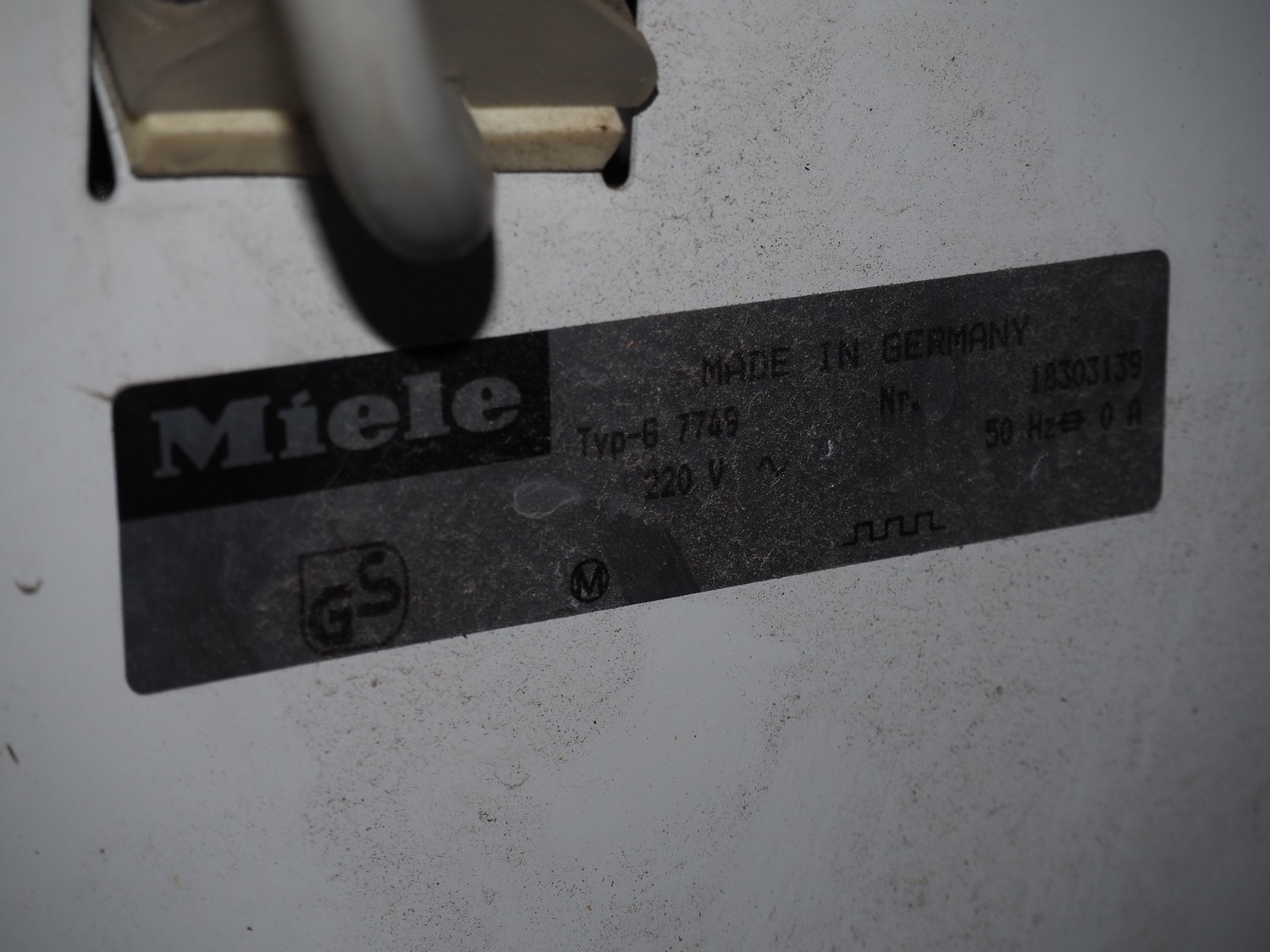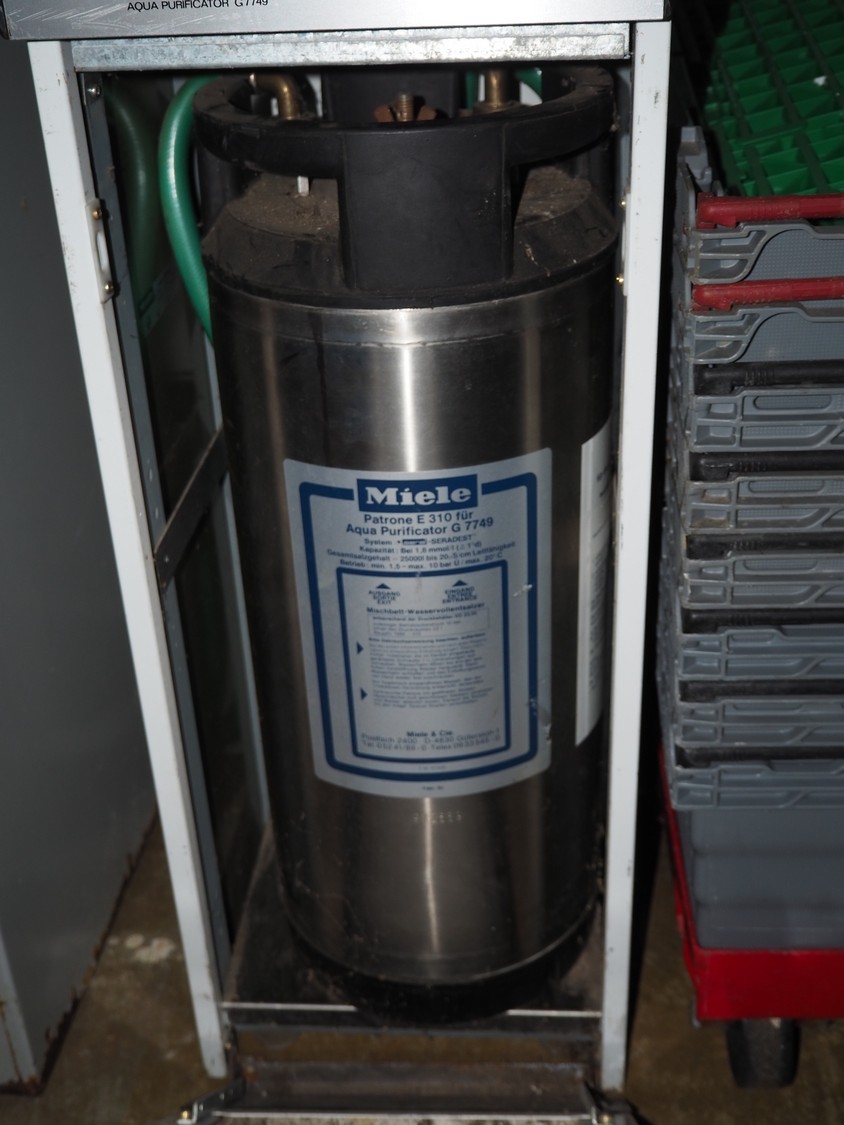 Miele water purifier, type: G 7749, number: 18303139, 220 V, 50 Hz, dimensions: 600 mm x 300 mm x 860 mm.