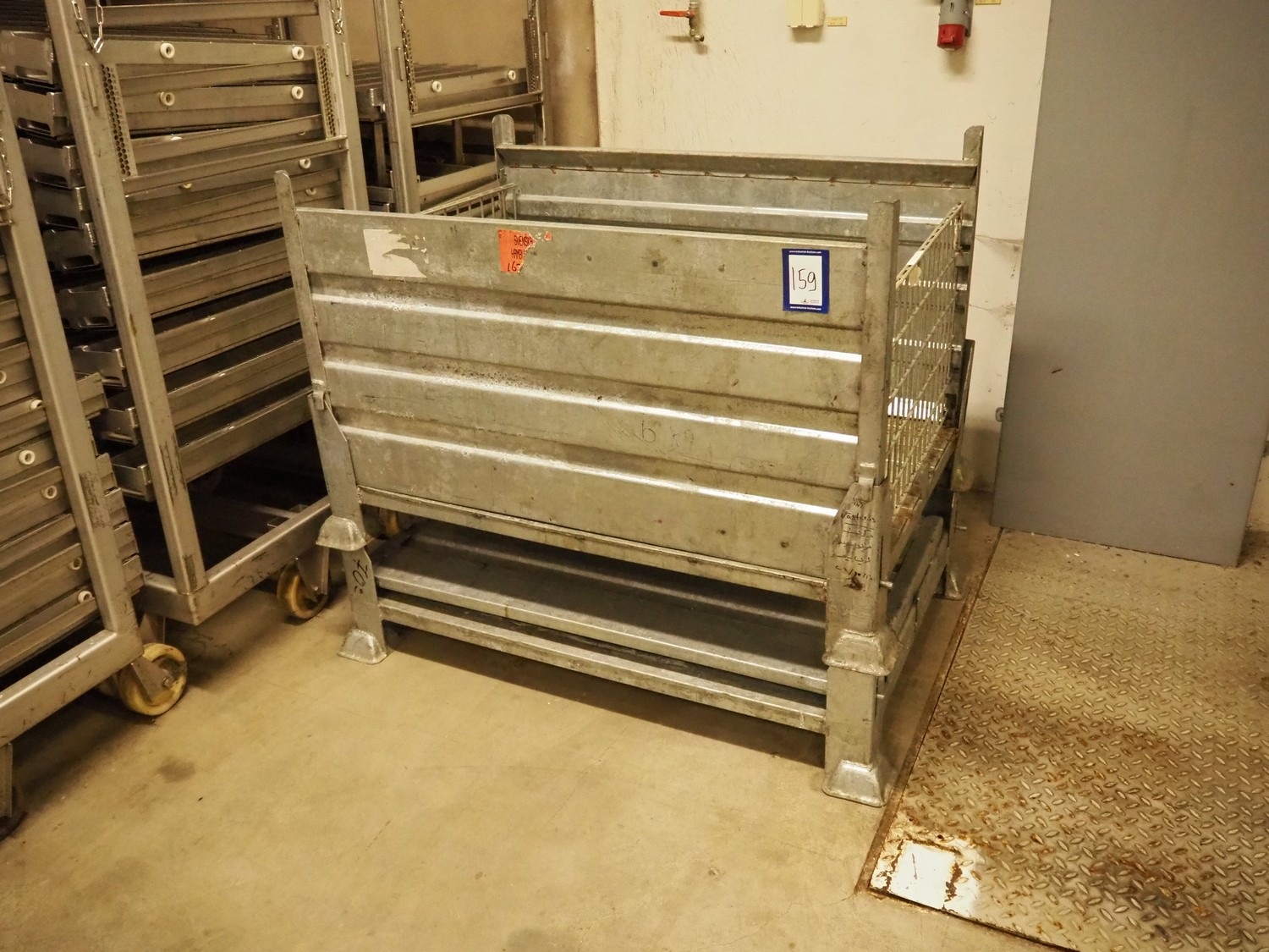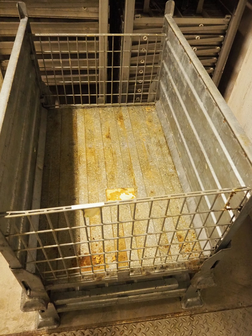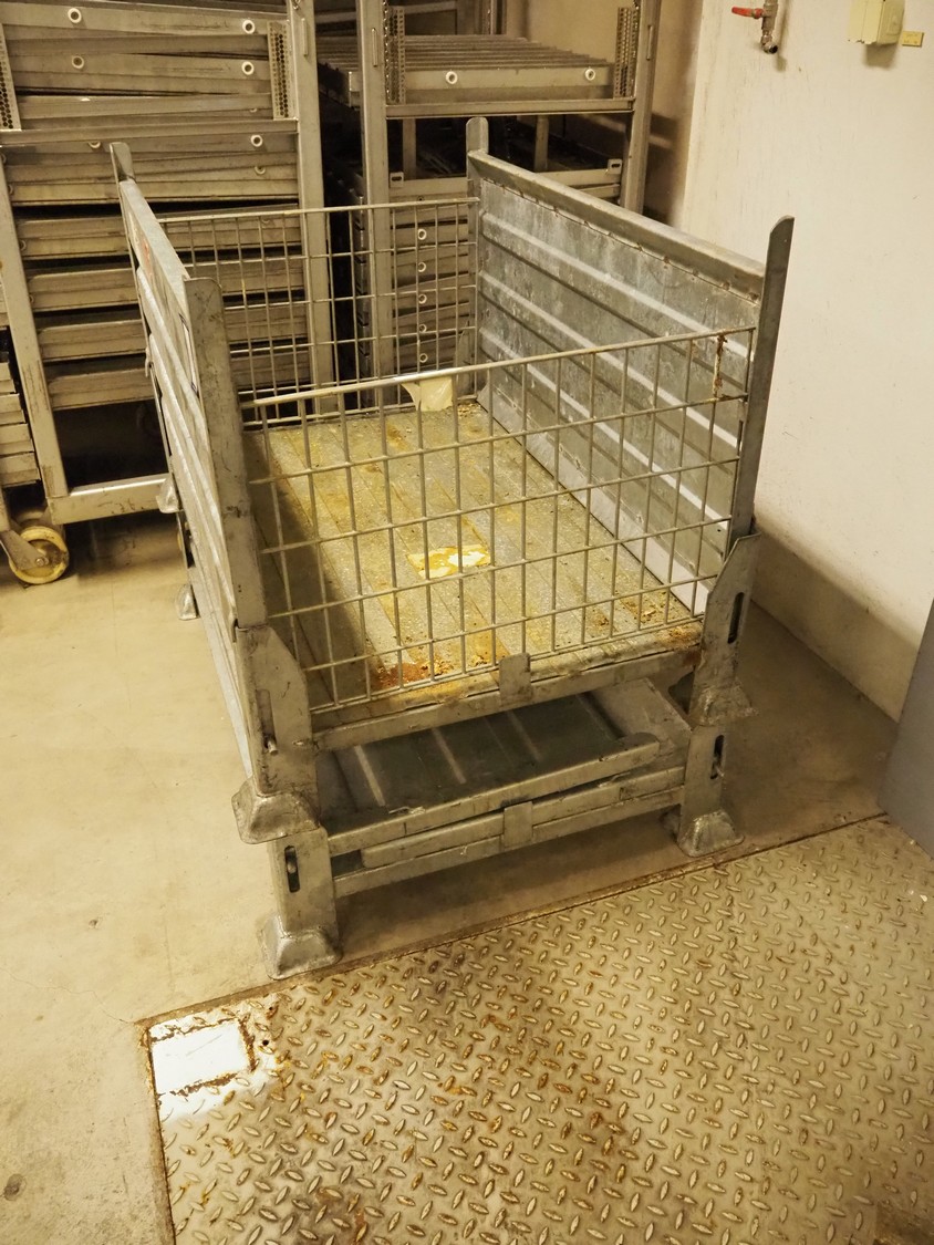 2 steel foldable pallet boxes, dimensions: 1210 mm x 810 mm x 800 mm.
