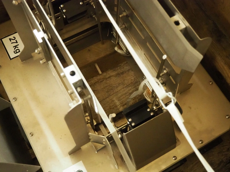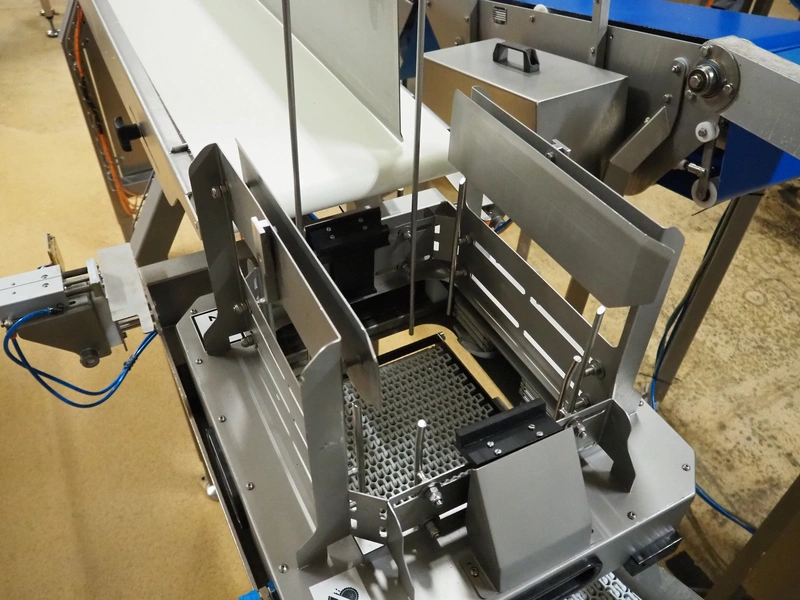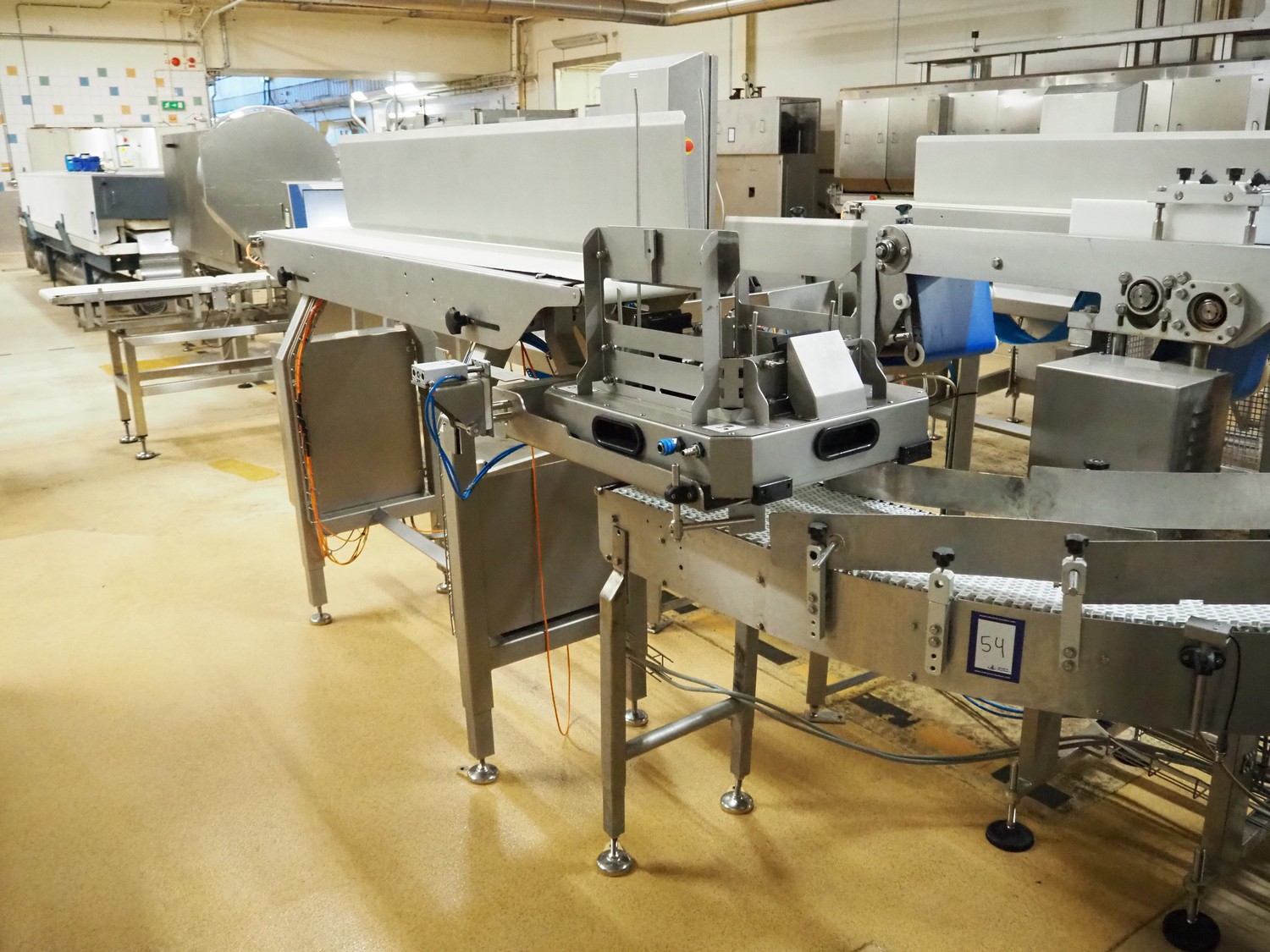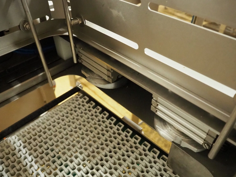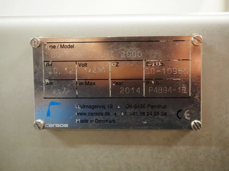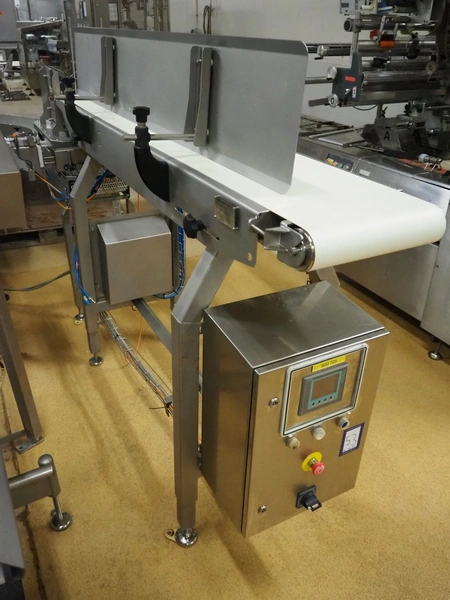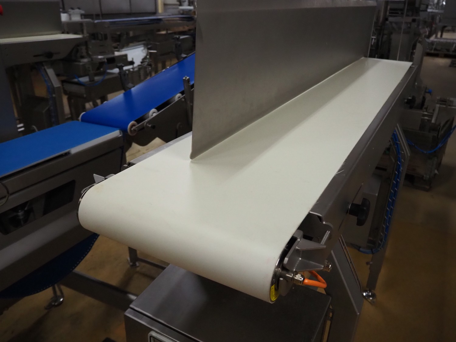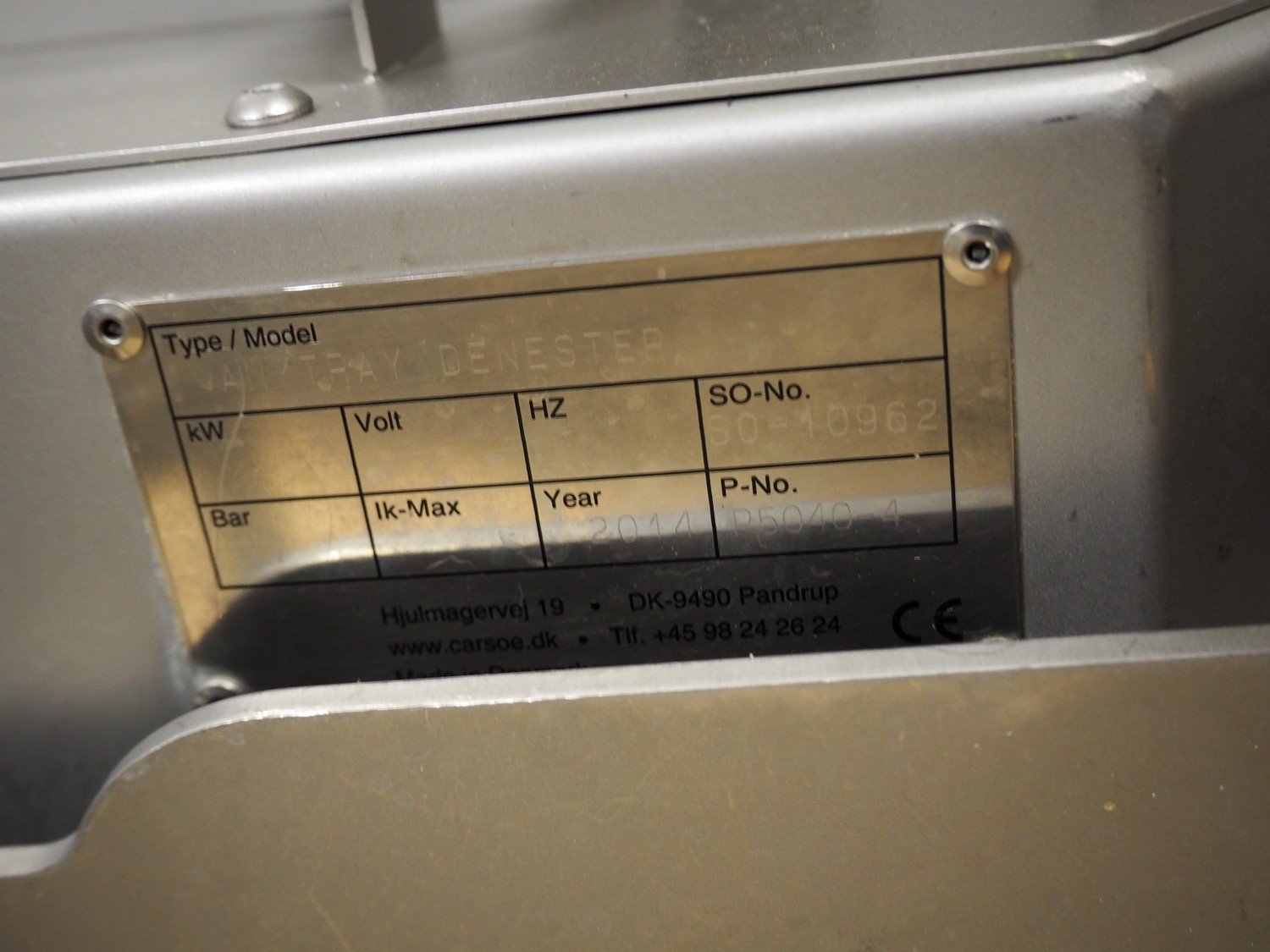 Carsoe buffer belt with tray denester, type: BUFFER LIGHT 2000, serial number: 10960, year of construction: 2014, 230 V, 1 Ph, 0.12 kW, s/s frame, plastic belt, belt width: 340 mm, dimensions trays: 280 mm x 180 mm, total dimensions: 2500 mm x 900 mm x 1600 mm. Including pallet with parts, dimensions: 1200 mm x 800 mm x 800 mm.