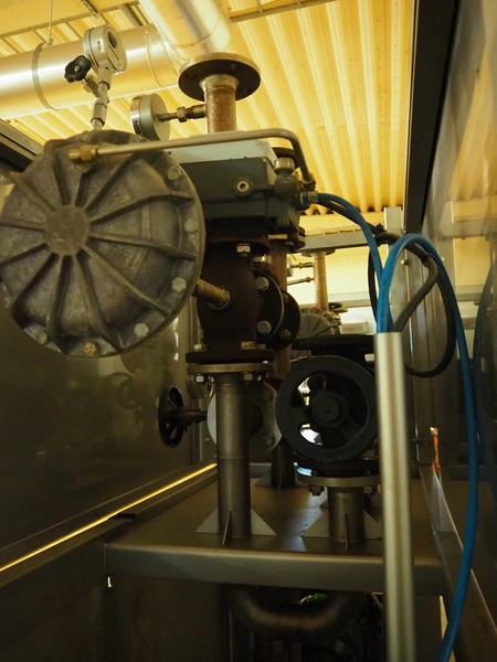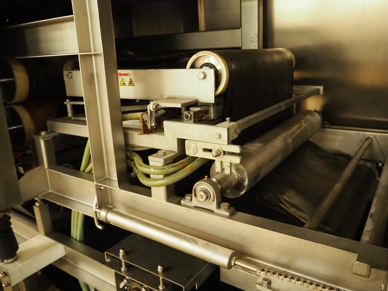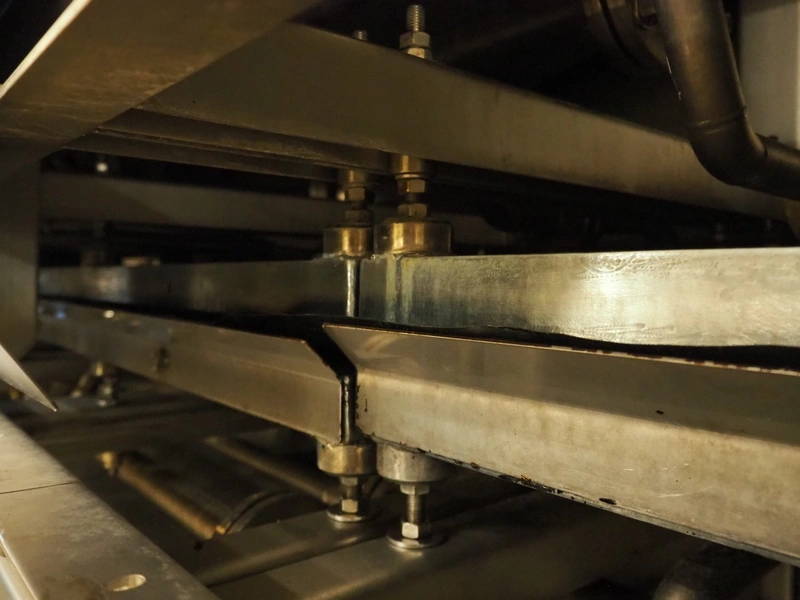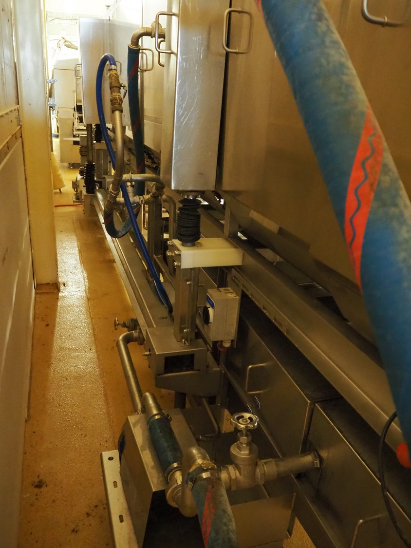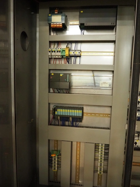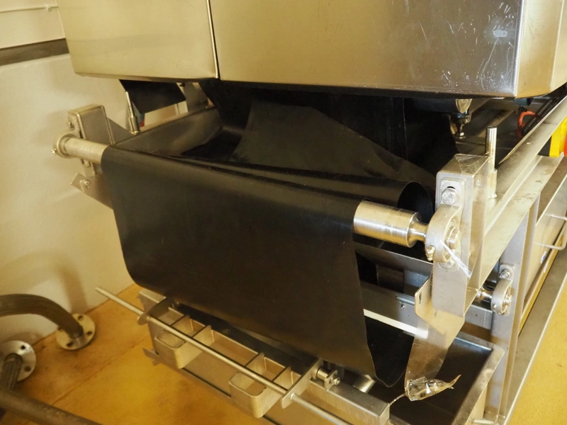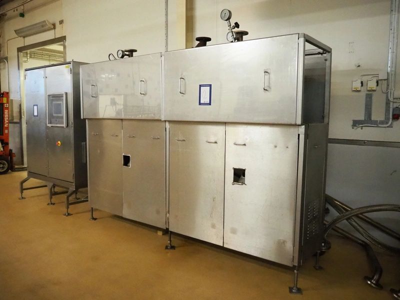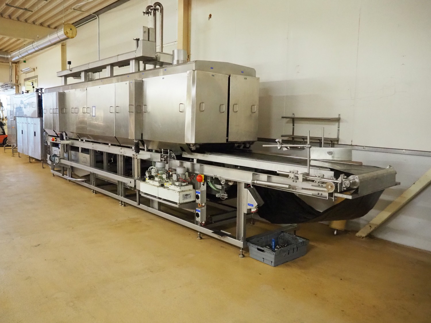 CFS teflon belt grill, type: TWG 4800/600, machine number: 604, year of construction: 2002, 400 V, 3 Ph, 50 Hz, 45 A, 22 kW, 5500 kg, belt width: 645 mm, dimensions: 8400 mm x 1500 mm x 3500 mm, height without pipes: 2850 mm, dimensions pump unit: 3000 mm x 850 mm x 2400 mm, dimensions switch cabinet: 1500 mm x 750 mm x 2200 mm.