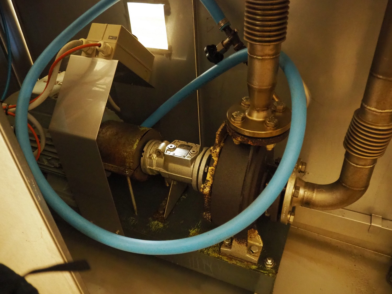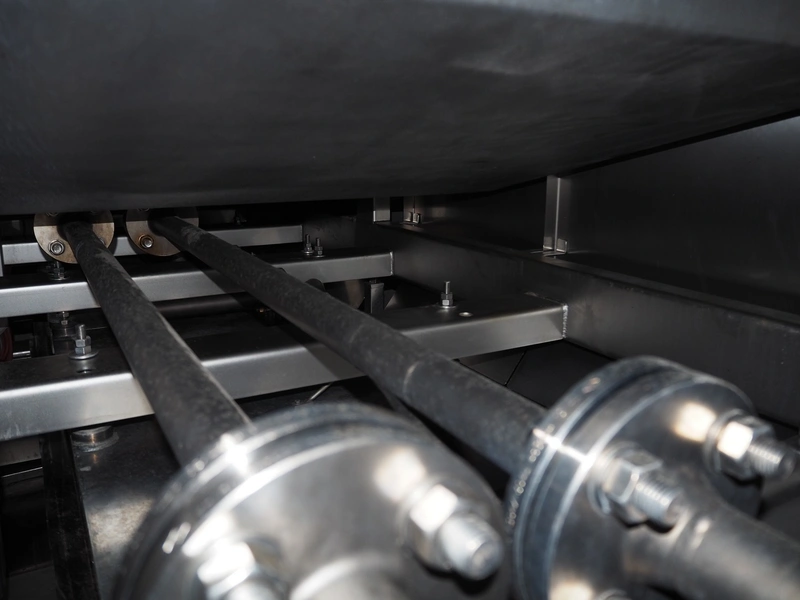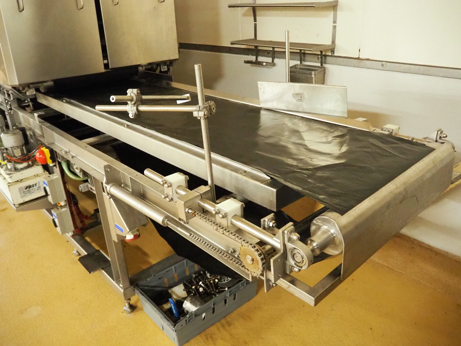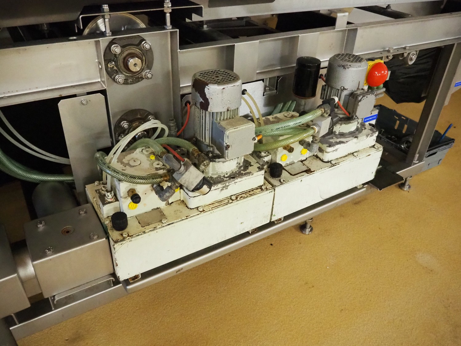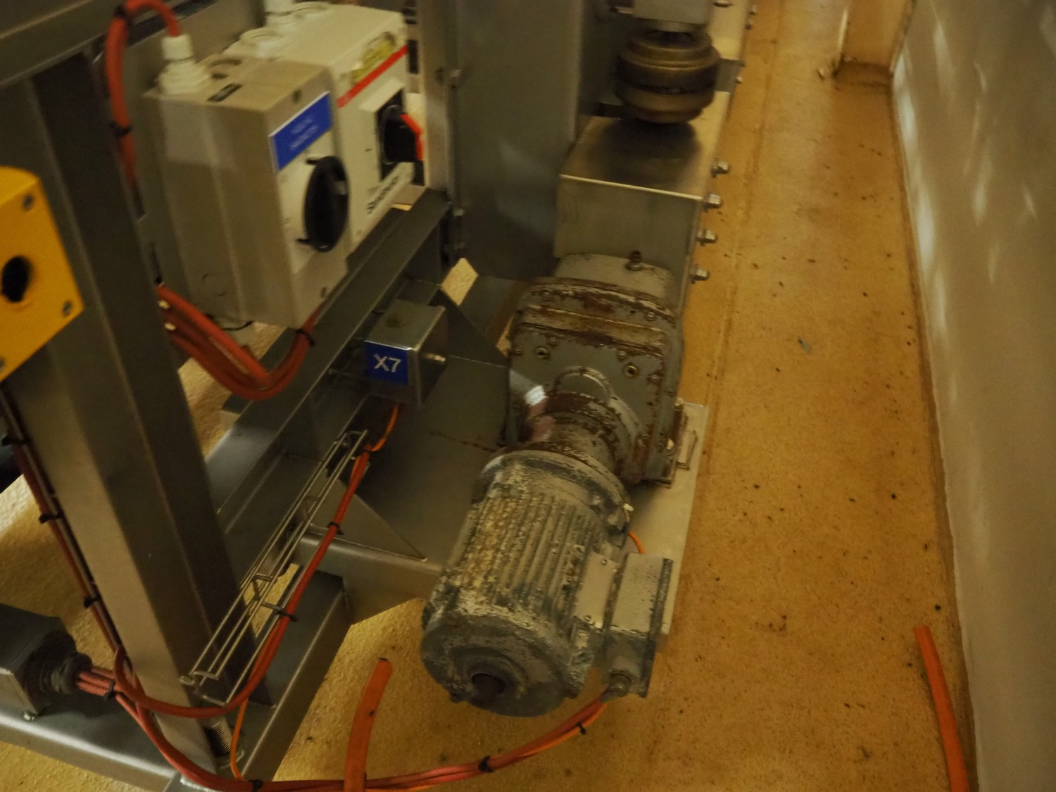 CFS teflon belt grill, type: TWG 4800/600, machine number: 604, year of construction: 2002, 400 V, 3 Ph, 50 Hz, 45 A, 22 kW, 5500 kg, belt width: 645 mm, dimensions: 8400 mm x 1500 mm x 3500 mm, height without pipes: 2850 mm, dimensions pump unit: 3000 mm x 850 mm x 2400 mm, dimensions switch cabinet: 1500 mm x 750 mm x 2200 mm.