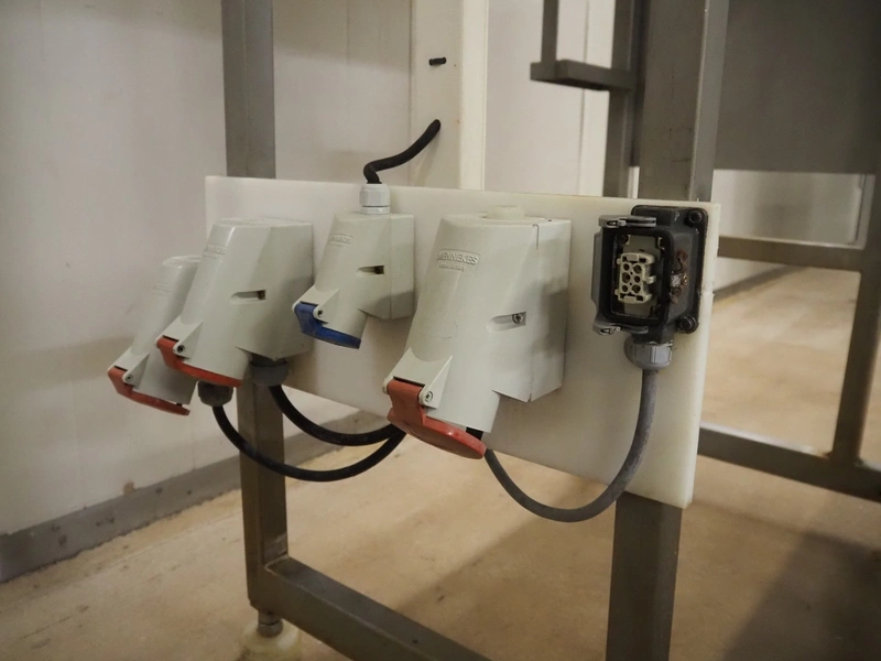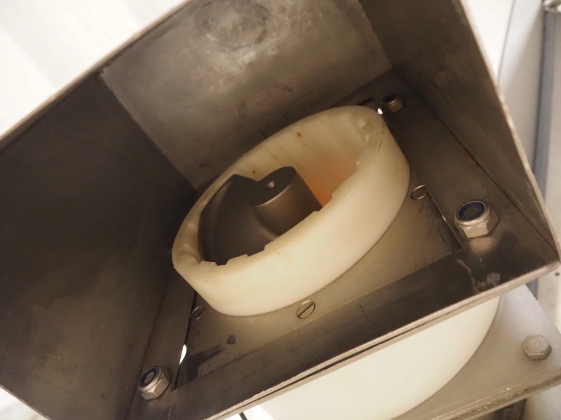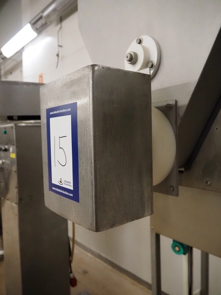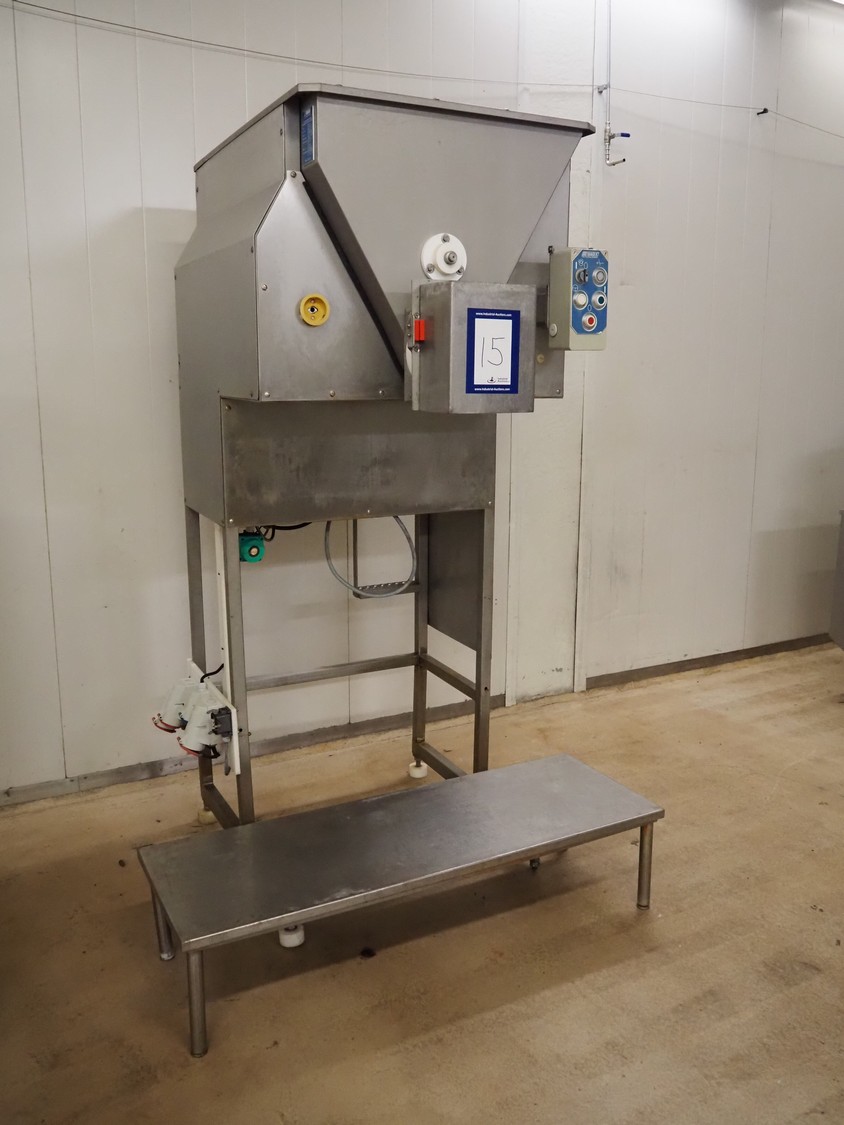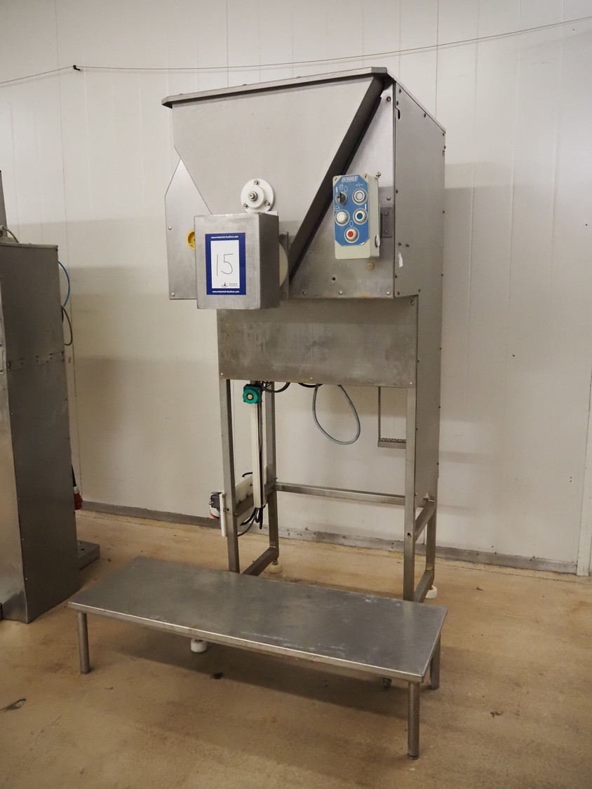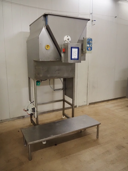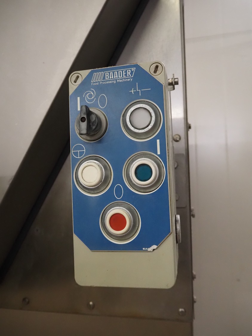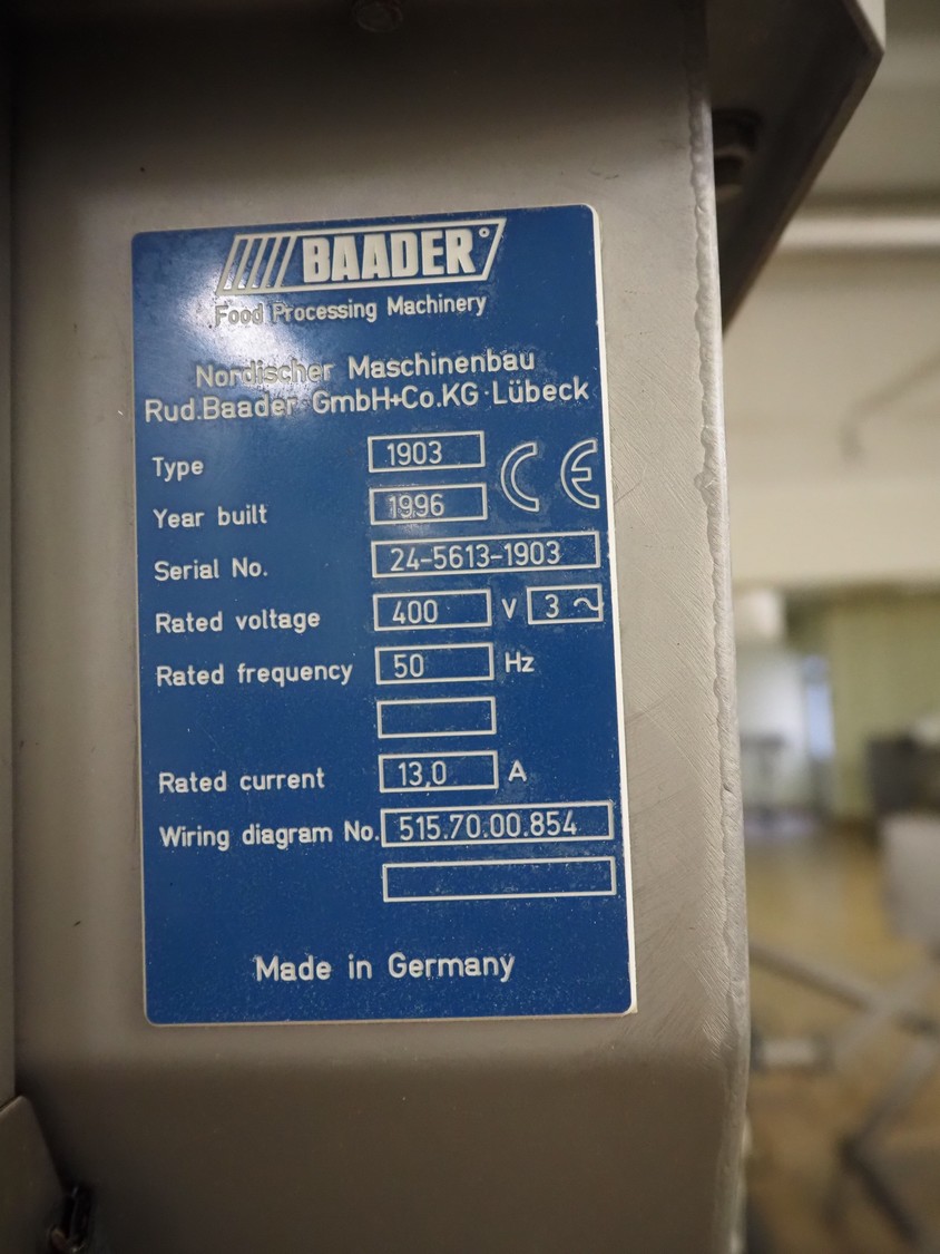 Baader infeed bunker, type: 1903, serial number: 24-5613-1903, year of construction: 1996, 400 V, 3 Ph, 50 Hz, 13 A, dimensions: 1250 mm x 930 mm x 2300 mm.