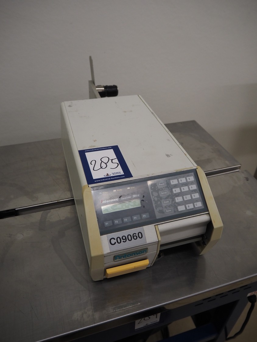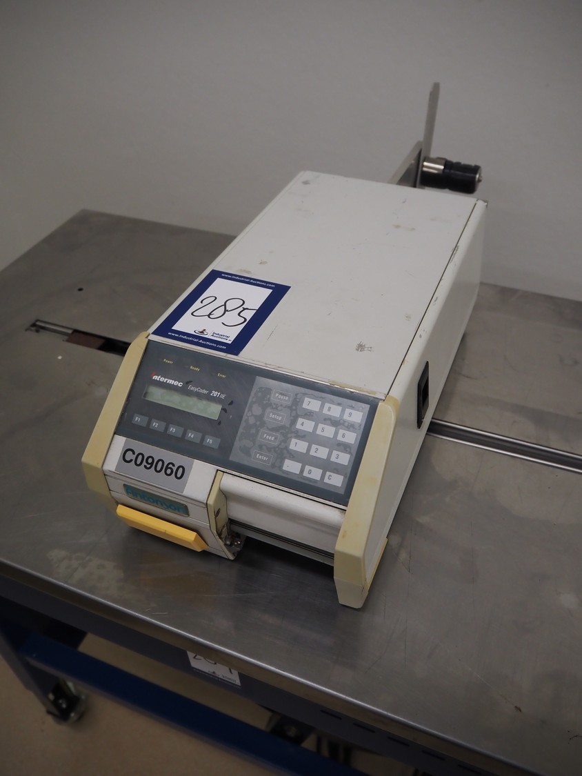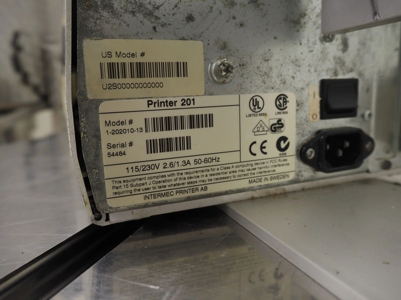 Intermec label printer, model: 1-202010-13, serial number: 54484, 115/230 V, 50-60 Hz, 2.6/1.3 A, dimensions: 600 mm x 220 mm x 200 mm.