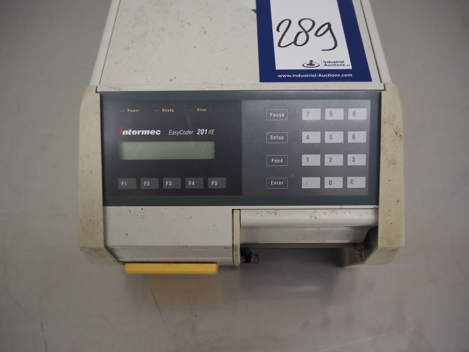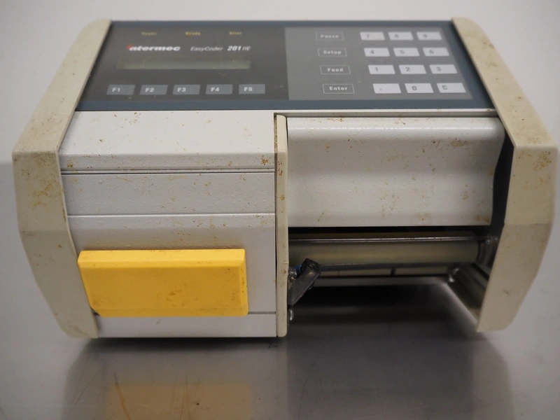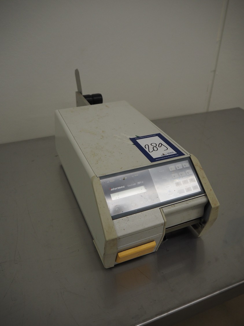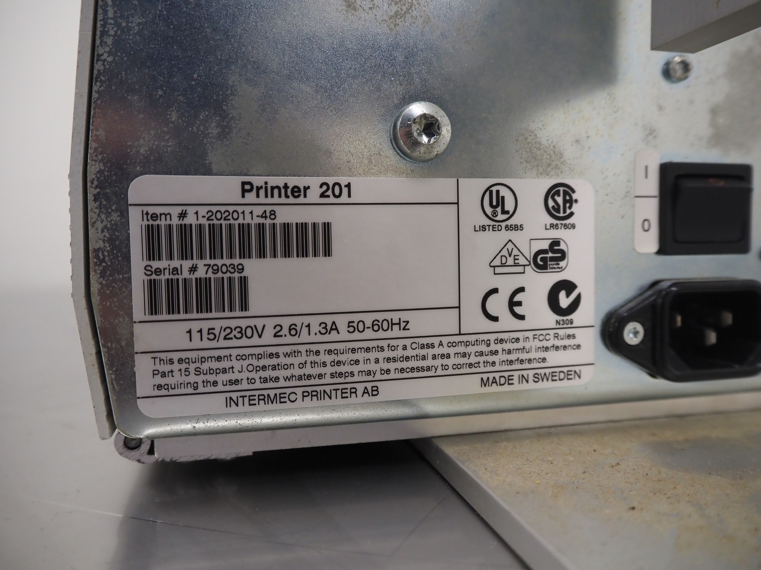 Intermec label printer, model: Easycoder 201 IIE, serial numbers: 79039 , 115/230 V, 50/60 Hz, 2.6/1.3 A, dimensions: 630 mm x 210 mm x 220 mm.