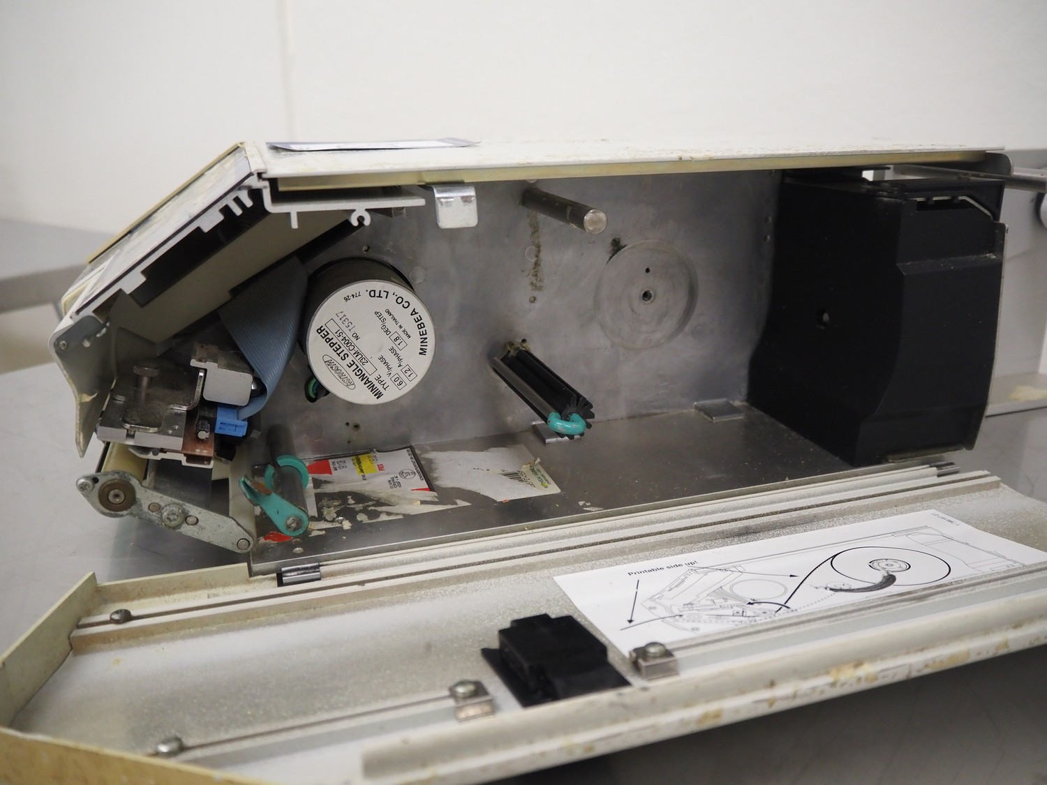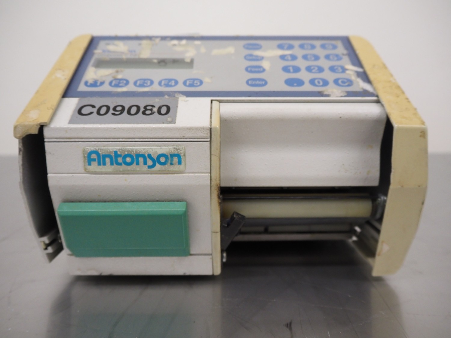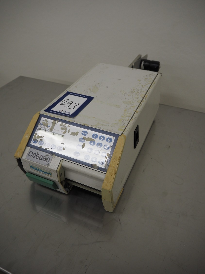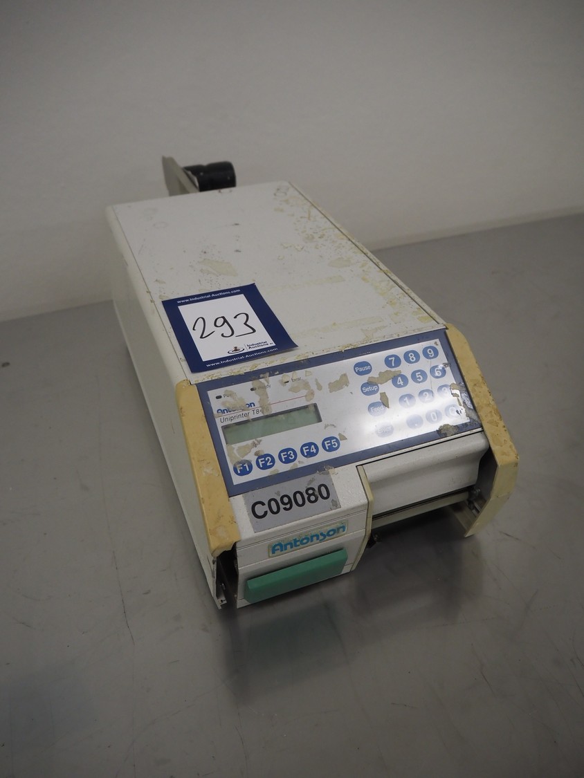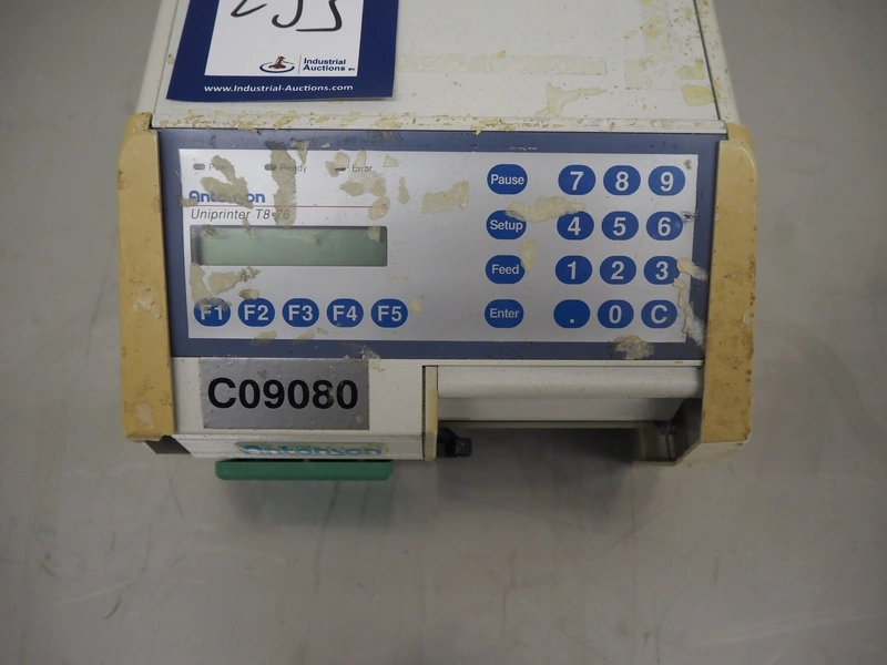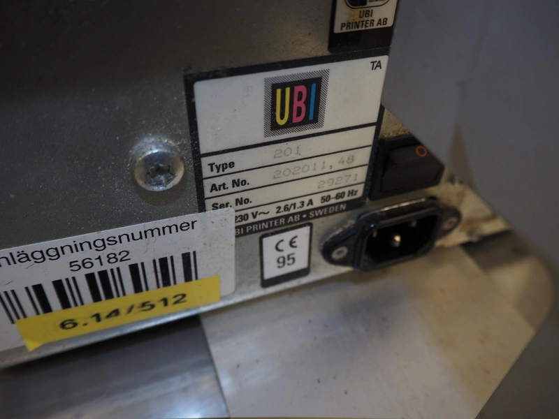 Antonson label printer, model: Uniprinter T8-76, type: 201, serial number: 29271, 230 V, 1 Ph, 50/60 Hz, 2.6/1.3 A, dimensions: 630 mm x 220 mm x 220 mm.