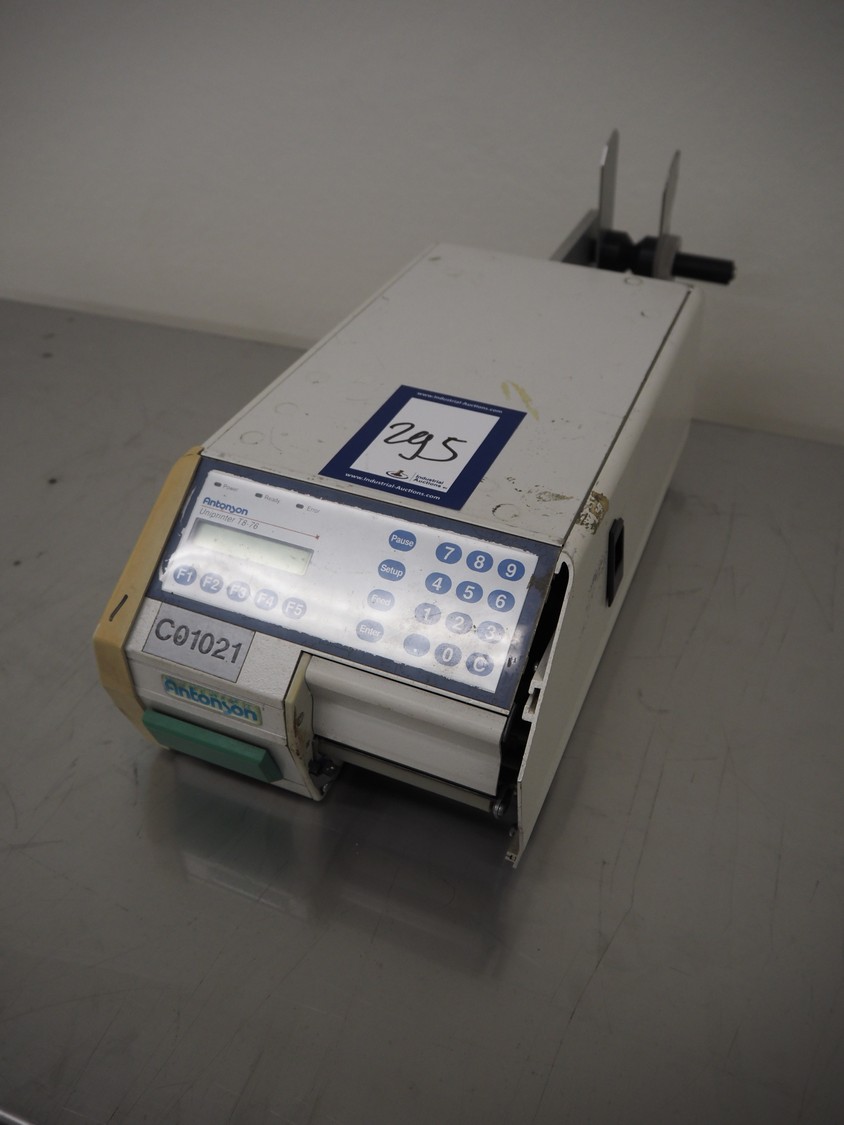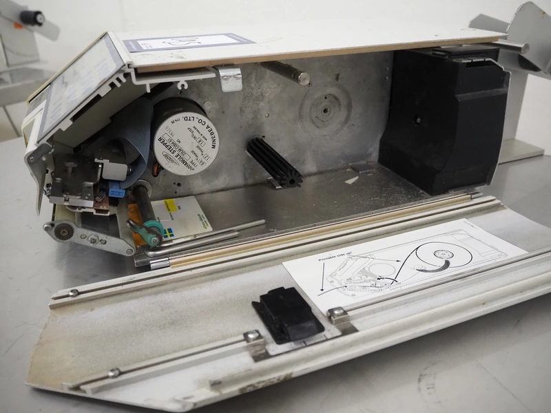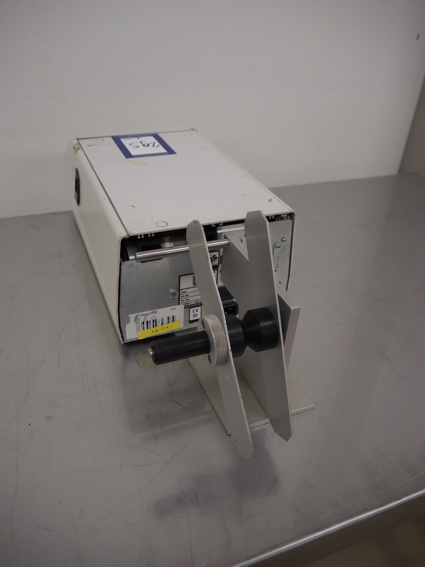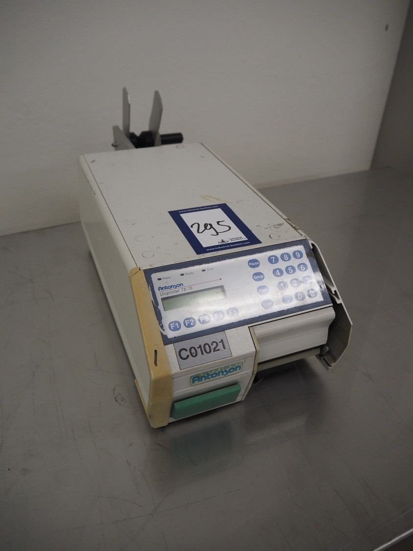 Antonson label printer, model: Uniprinter T8-76, type: 201, serial number: 29141, 230 V, 1 Ph, 50/60 Hz, 2.6/1.3 A, dimensions: 630 mm x 220 mm x 220 mm.