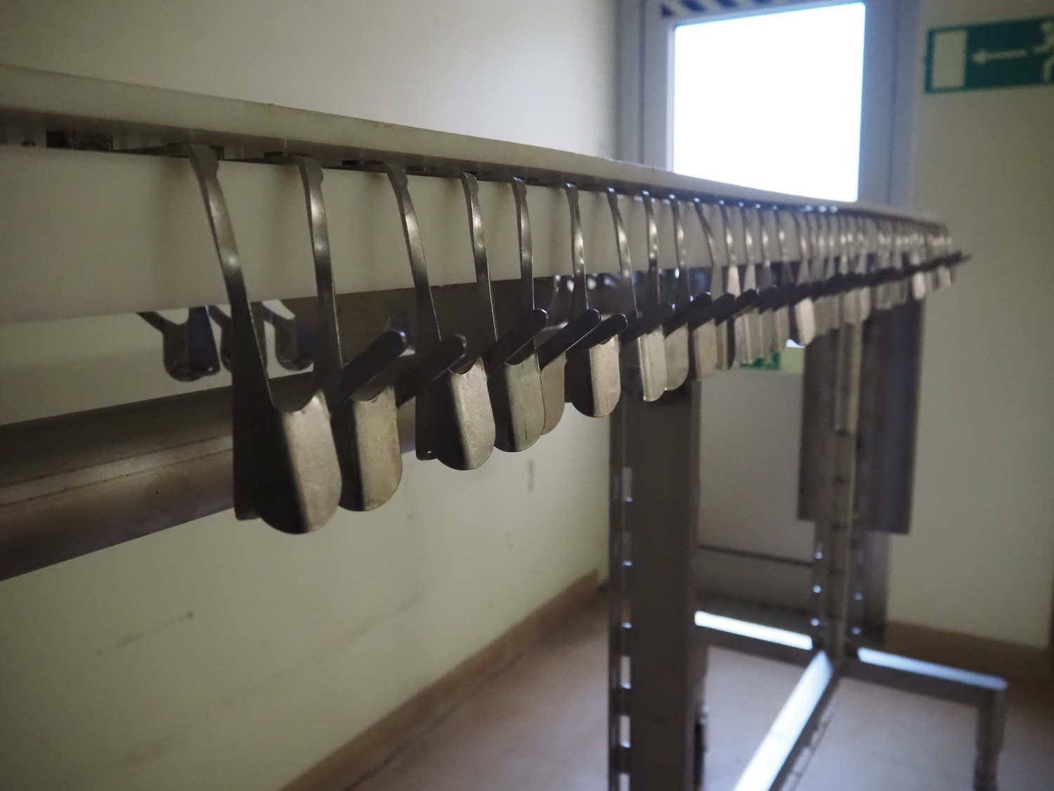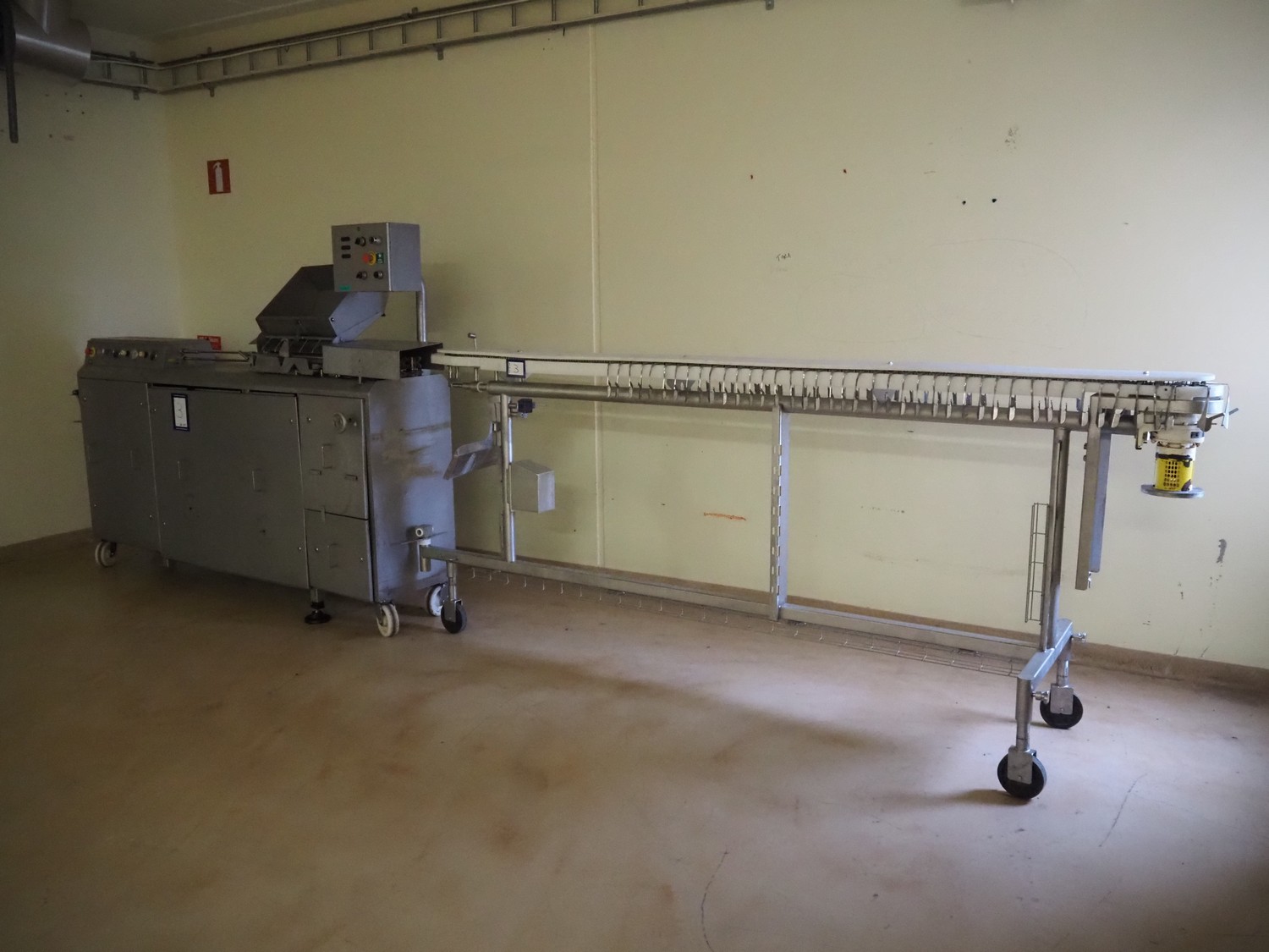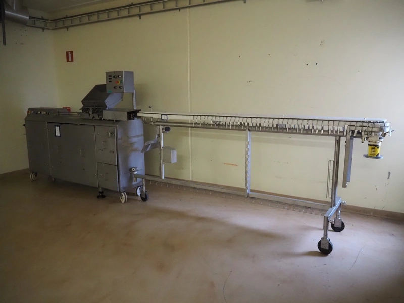 Townsend mobile linking and hanging line consisting of: Townsend linking machine: Linkmaster Mark 111-3A, dimensions linking machine: 2900 mm x 700 mm x 1870 mm and mobile hanging machine, dimensions hanging machine: 3300 mm x 750 mm x 1350 mm.