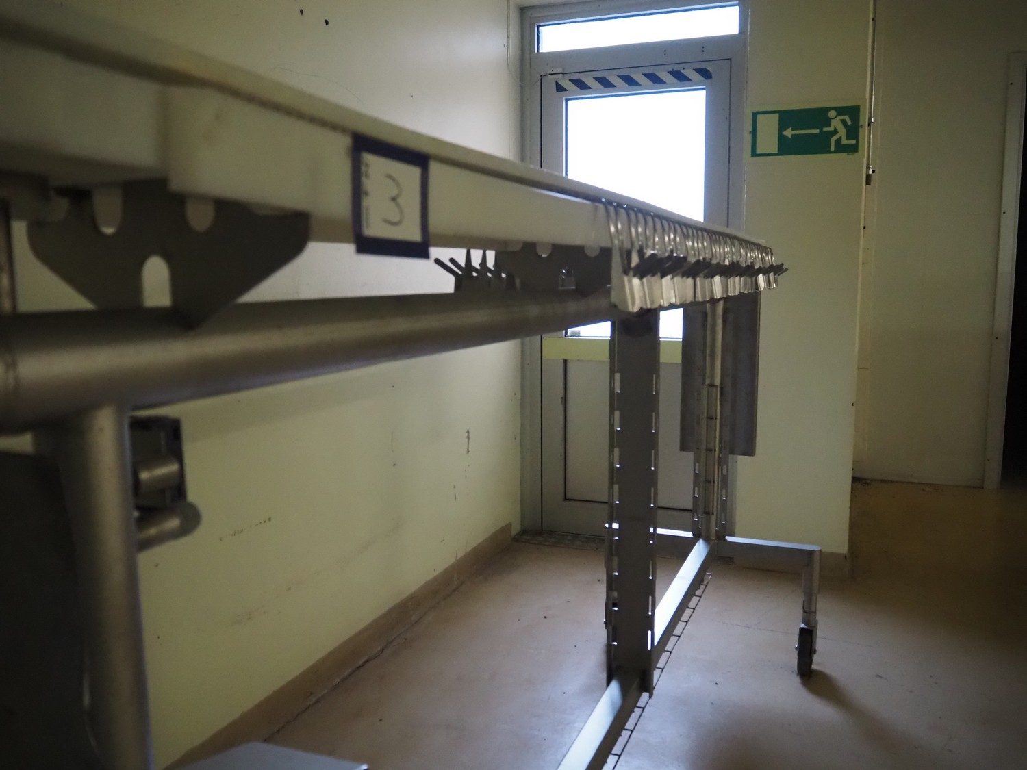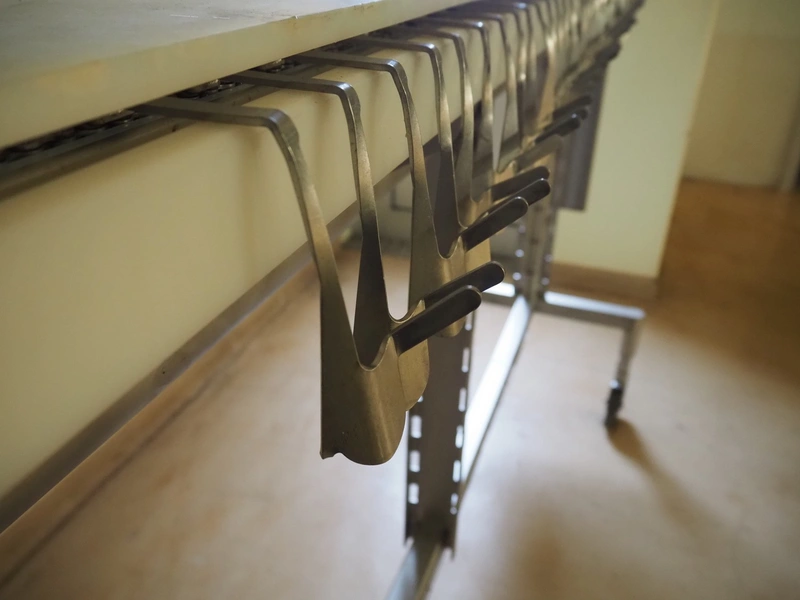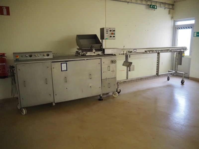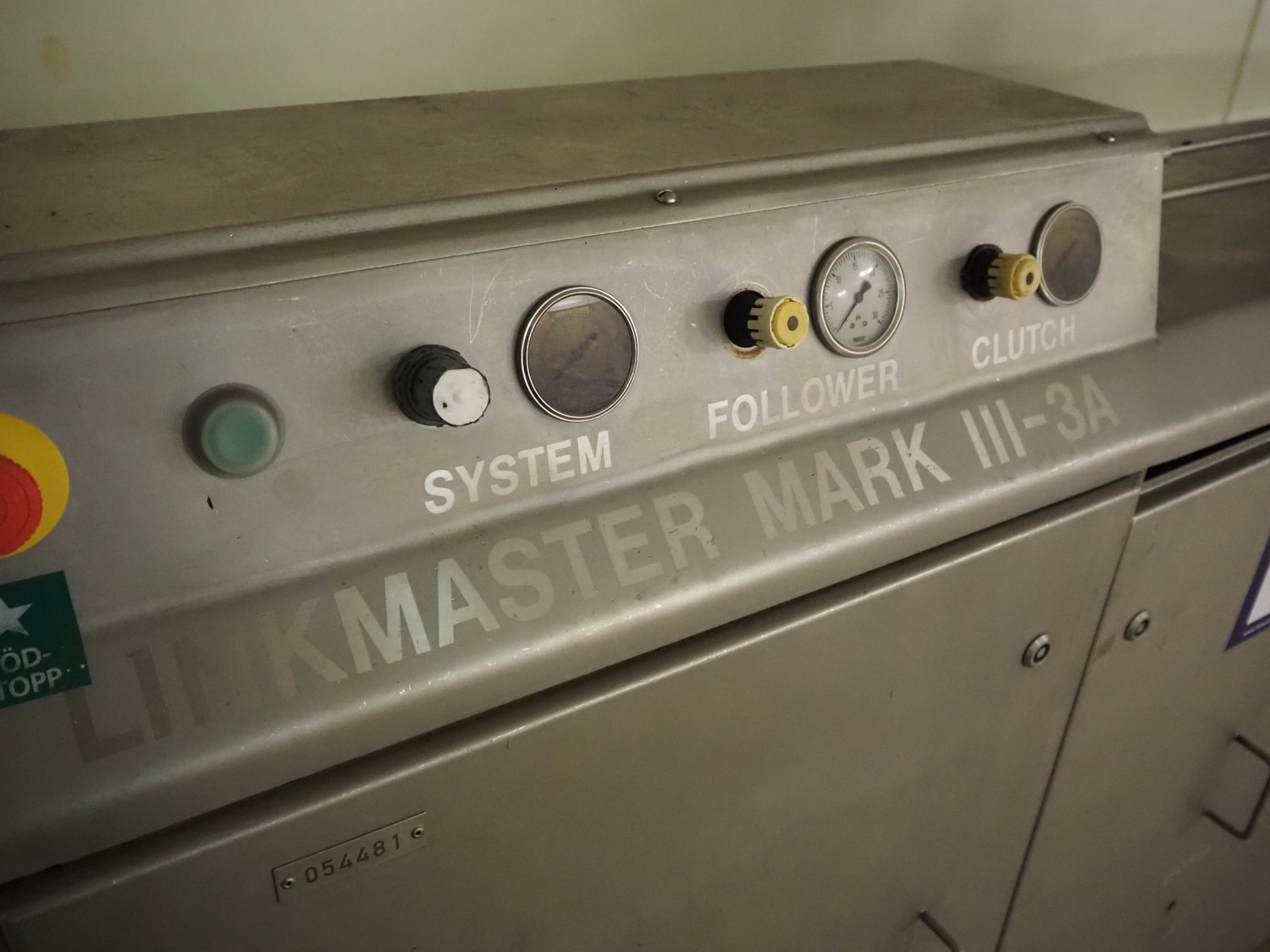 Townsend mobile linking and hanging line consisting of: Townsend linking machine: Linkmaster Mark 111-3A, dimensions linking machine: 2900 mm x 700 mm x 1870 mm and mobile hanging machine, dimensions hanging machine: 3300 mm x 750 mm x 1350 mm.