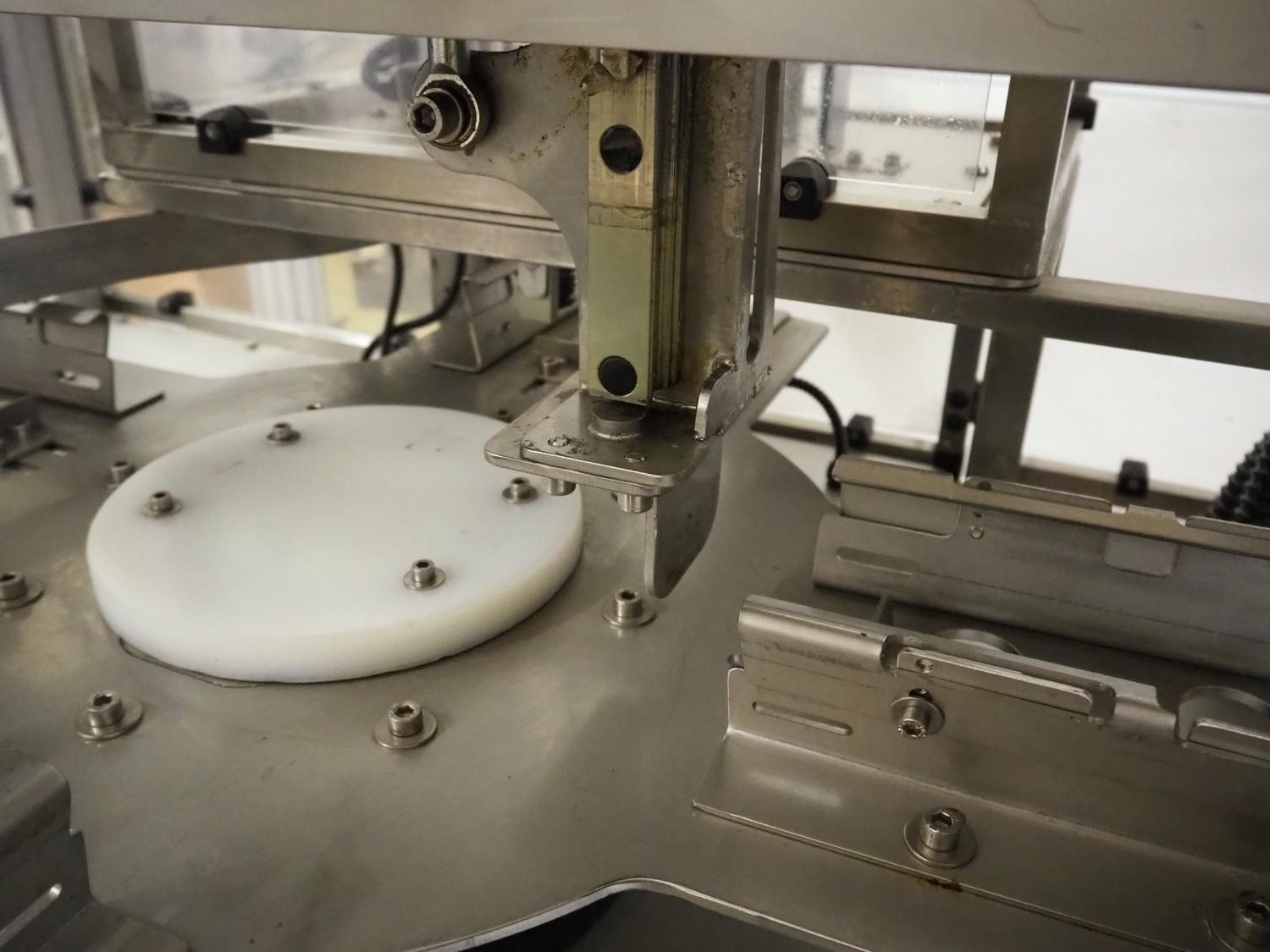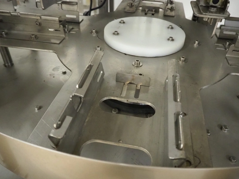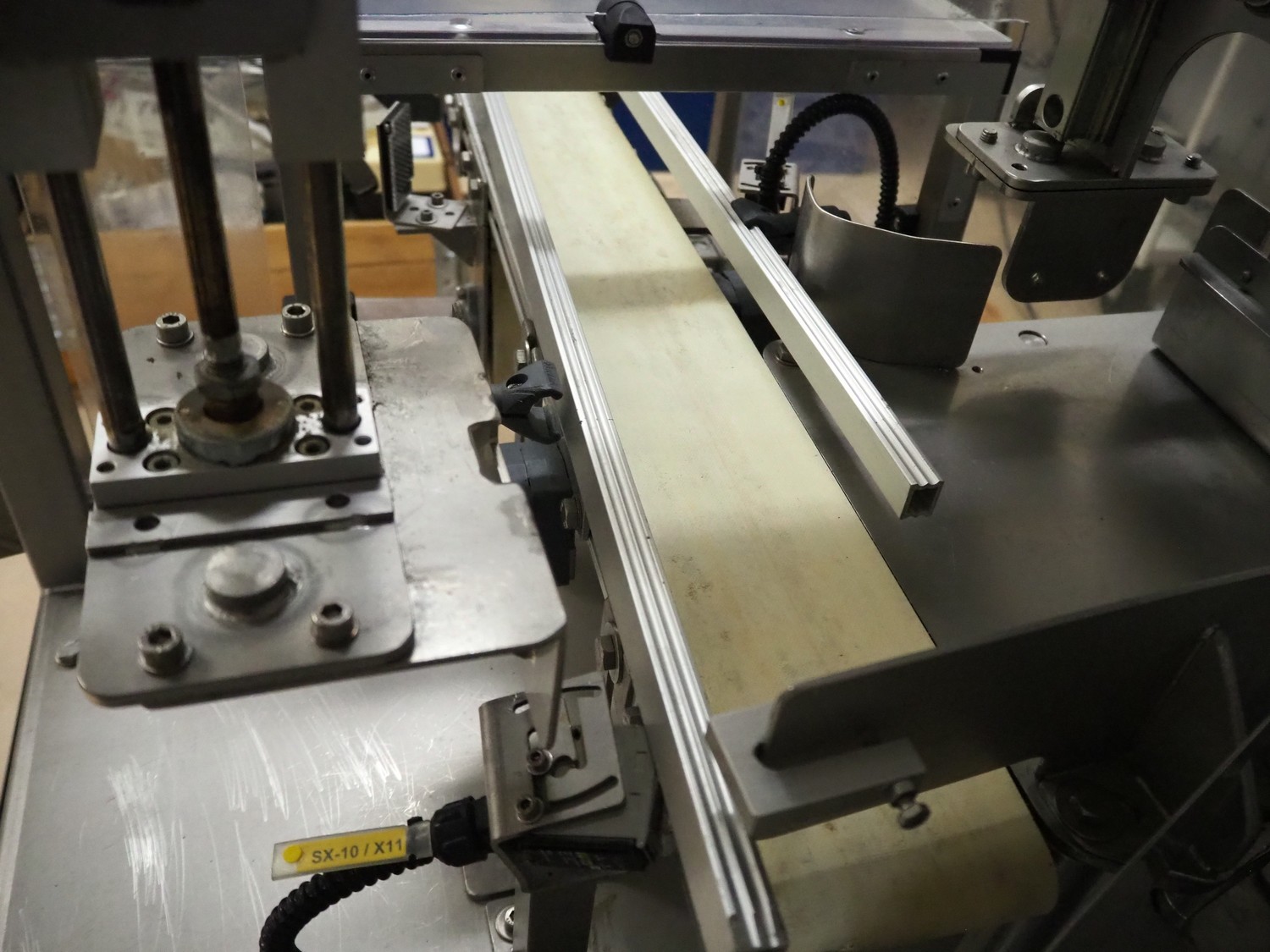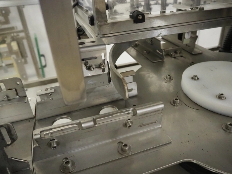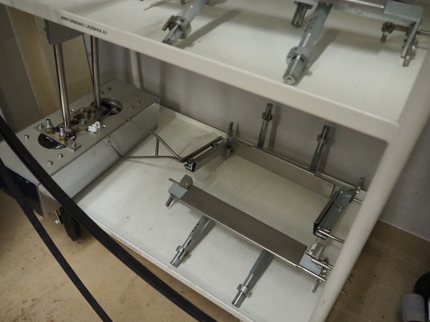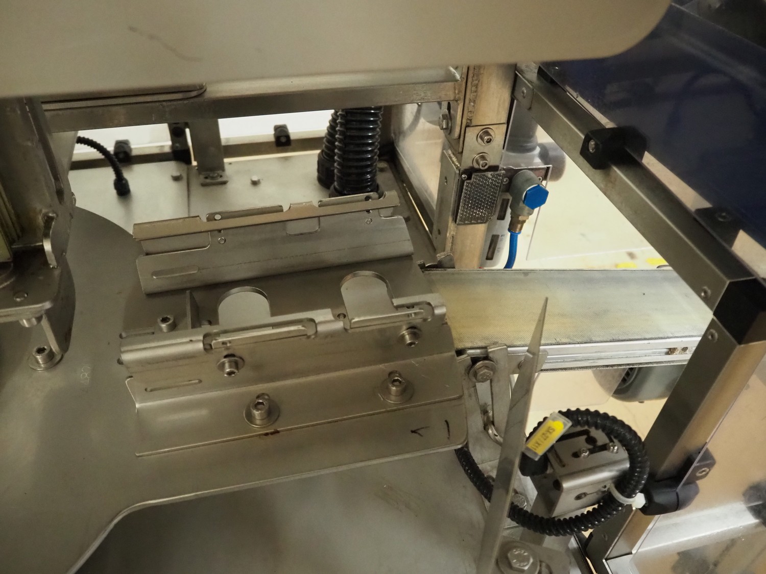 Cad-Tekniikka OY tray closing machine with lid denester, machine type: CA-50/2, number: 448, year of construction: 1999, 400 V, 50 Hz, 3 x 16 A, 600 Kpa, dimensions lids/trays: 200 mm x 170 mm, plastic belt, belt width: 95 mm, total dimensions: 3000 mm x 1200 mm x 2100 mm.
