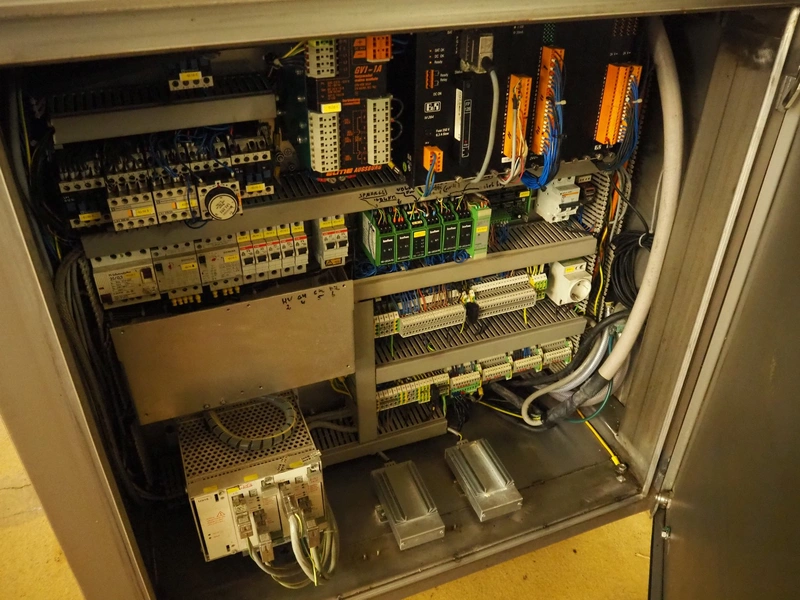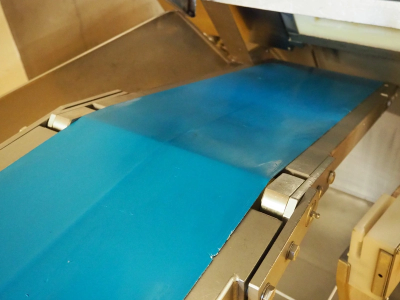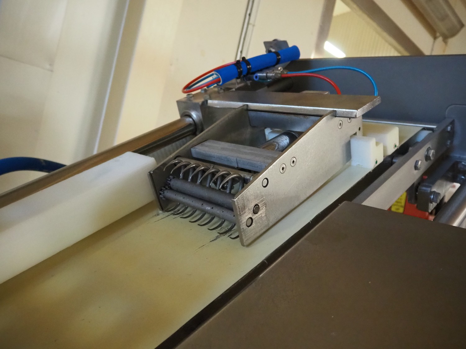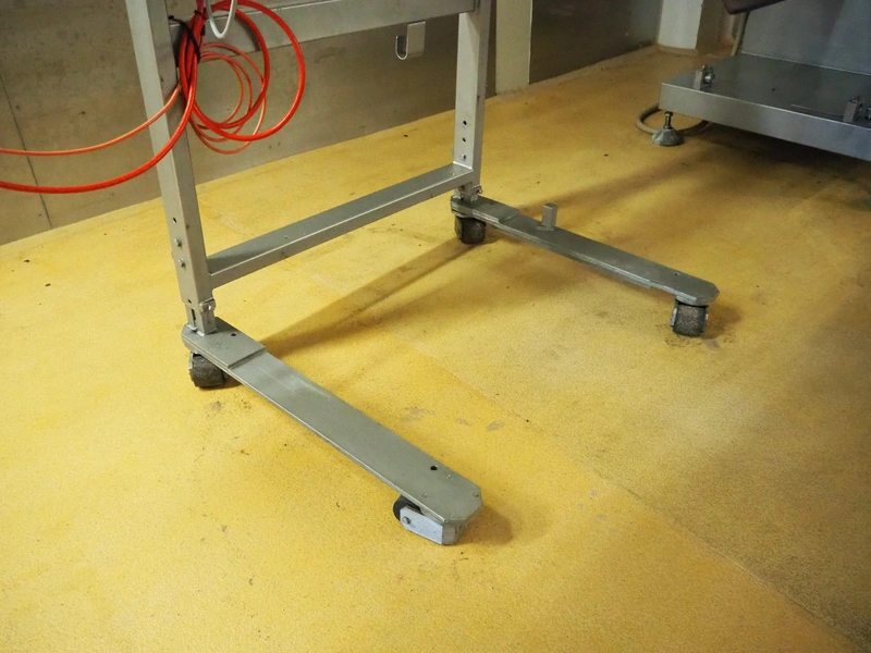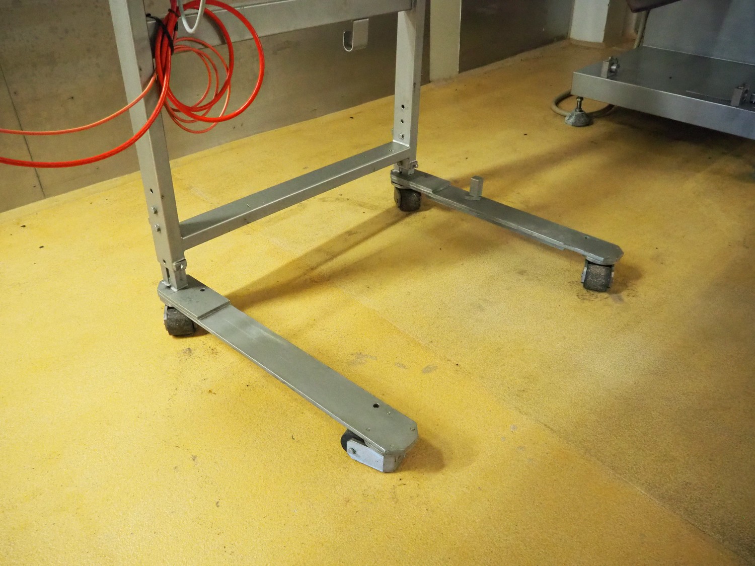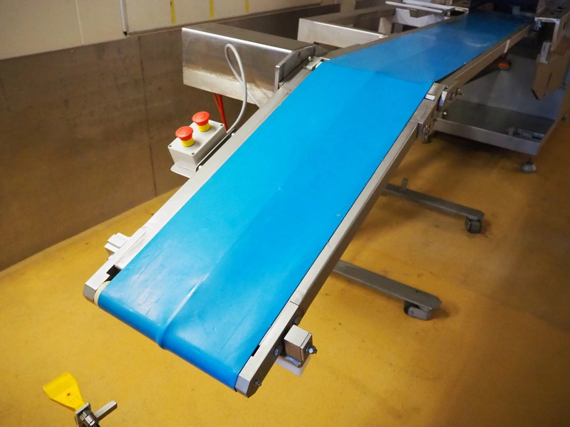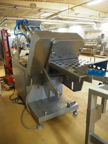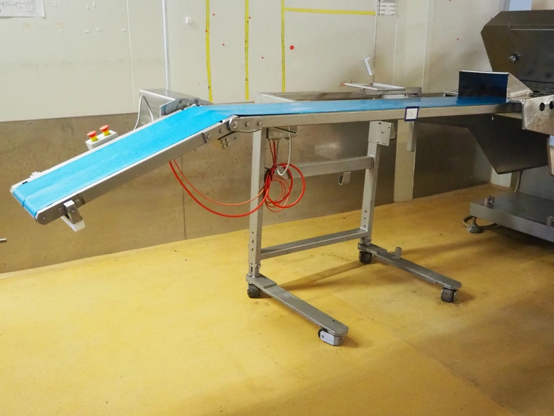 Dixie Union slicer with outfeed belt, type slicer: SL 495, year of construction: 1993, 380 V, 3 Ph, 50 Hz, 12 A, plastic belt, belt width: 270 mm, dimensions slicer: 2600 mm x 1100 mm x 2100 mm, Dixie Union outfeed belt, type: ATB 797, fabrication number: 495.1385/0028, year of construction: 1993, plastic belt, belt width: 300 mm, dimensions outfeed belt: 3650 mm x 900 mm x 1240 mm.