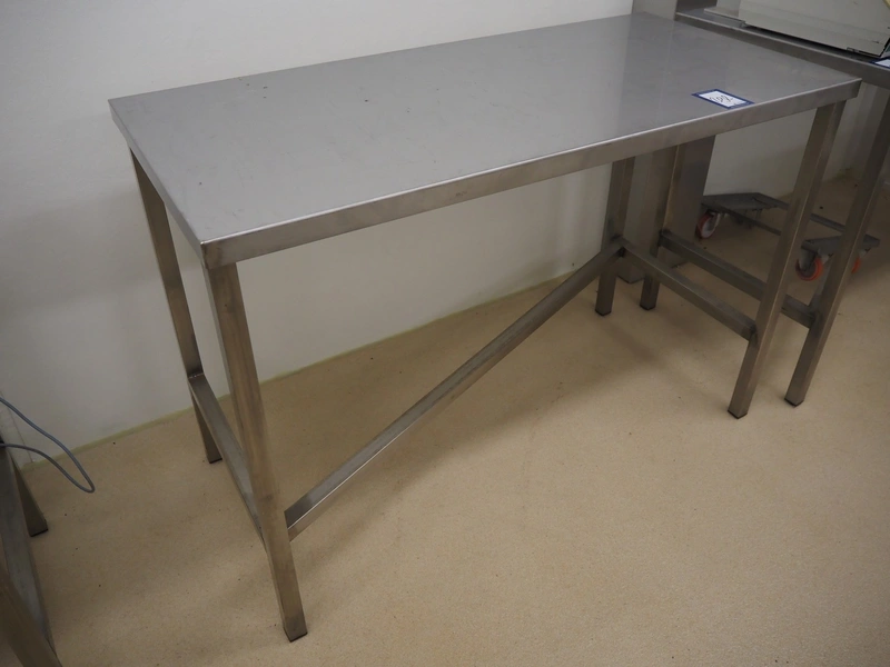 S/s table, dimensions: 1430 mm x 670 mm x 970 mm.