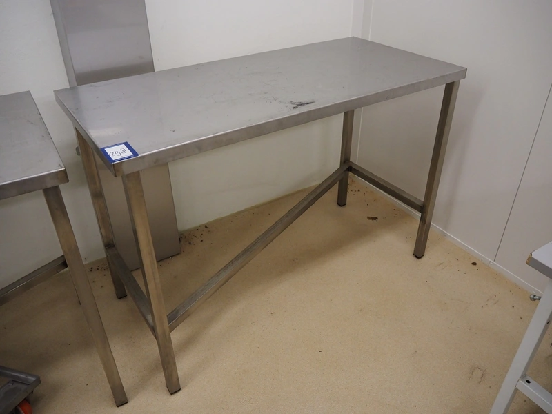 S/s table, dimensions: 1430 mm x 670 mm x 970 mm.