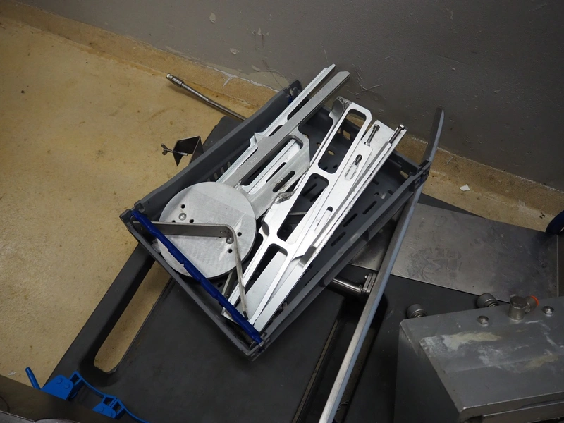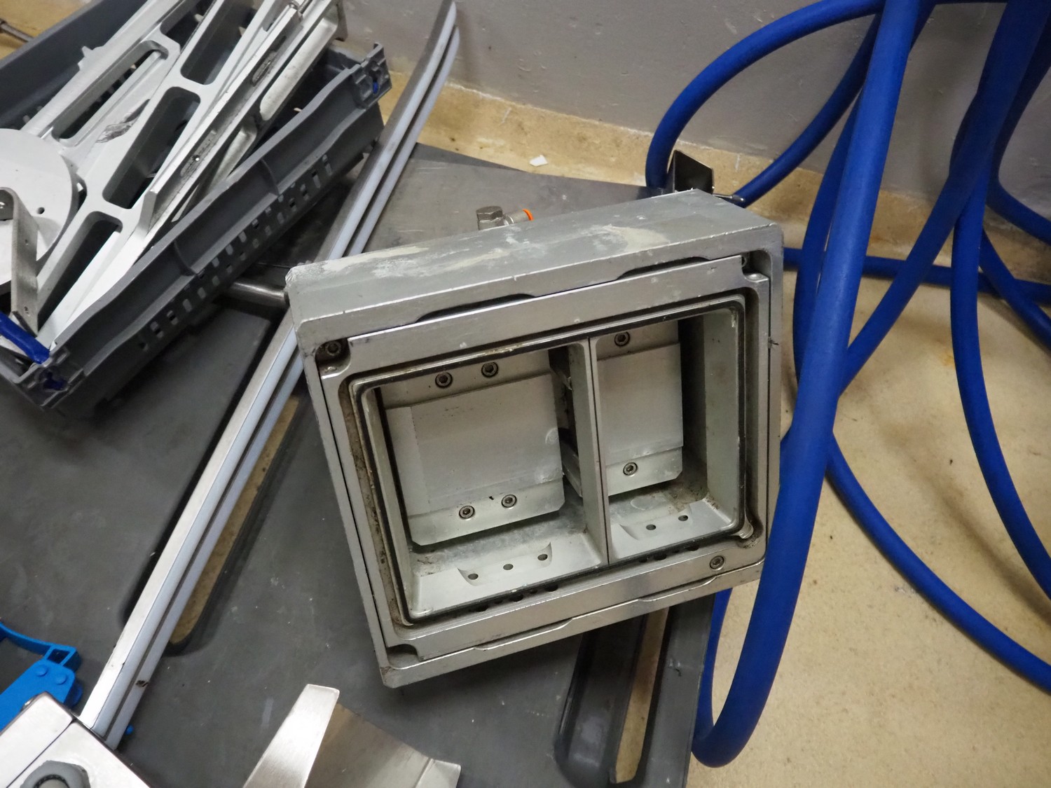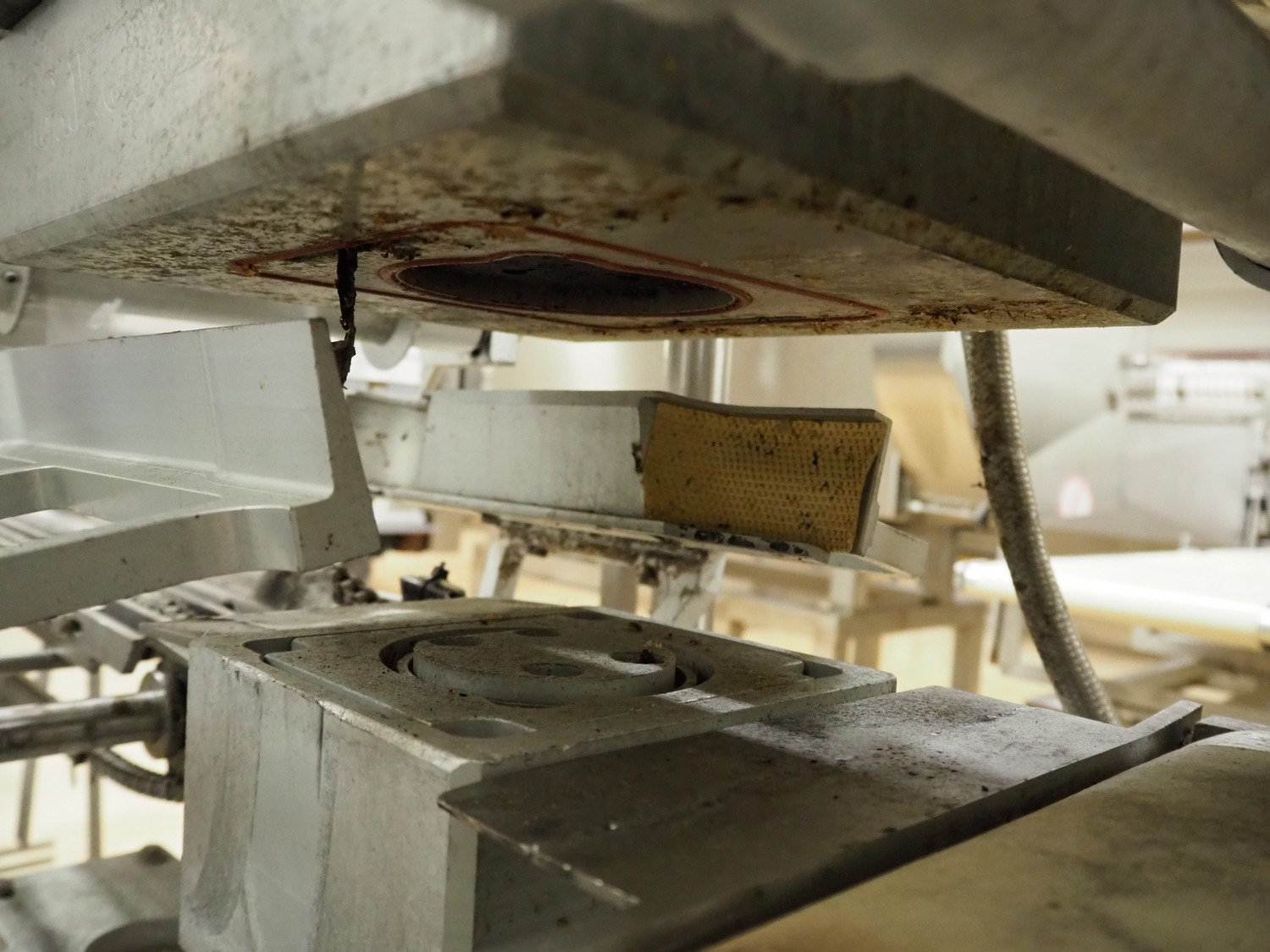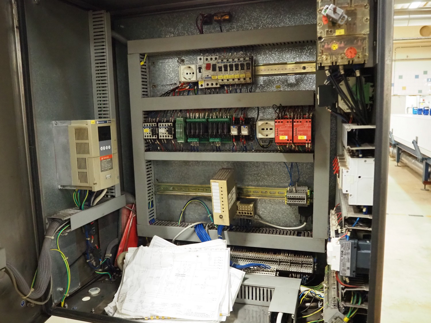 G. Mondini S.p.A. traysealer, model: GVS/MT.VG.1, serial number: 1701-A/00, year of construction: 06/05/00, 400 V, 3 Ph, 50 Hz, diameter cups: 140 mm, plastic belt, belt width: 240 mm, total dimensions: 3300 mm x 900 mm x 2650. Including pallet with extra dye sets.