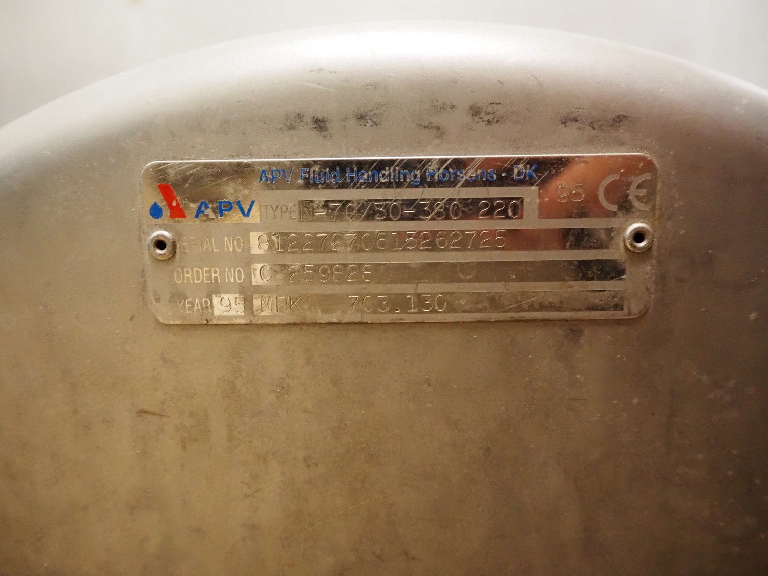 APV centrifugal pump, type: W-70/30-380-220, serial number: 81227270615262725, year of construction: 1995, dimensions: 750 mm x 420 mm x 600 mm.