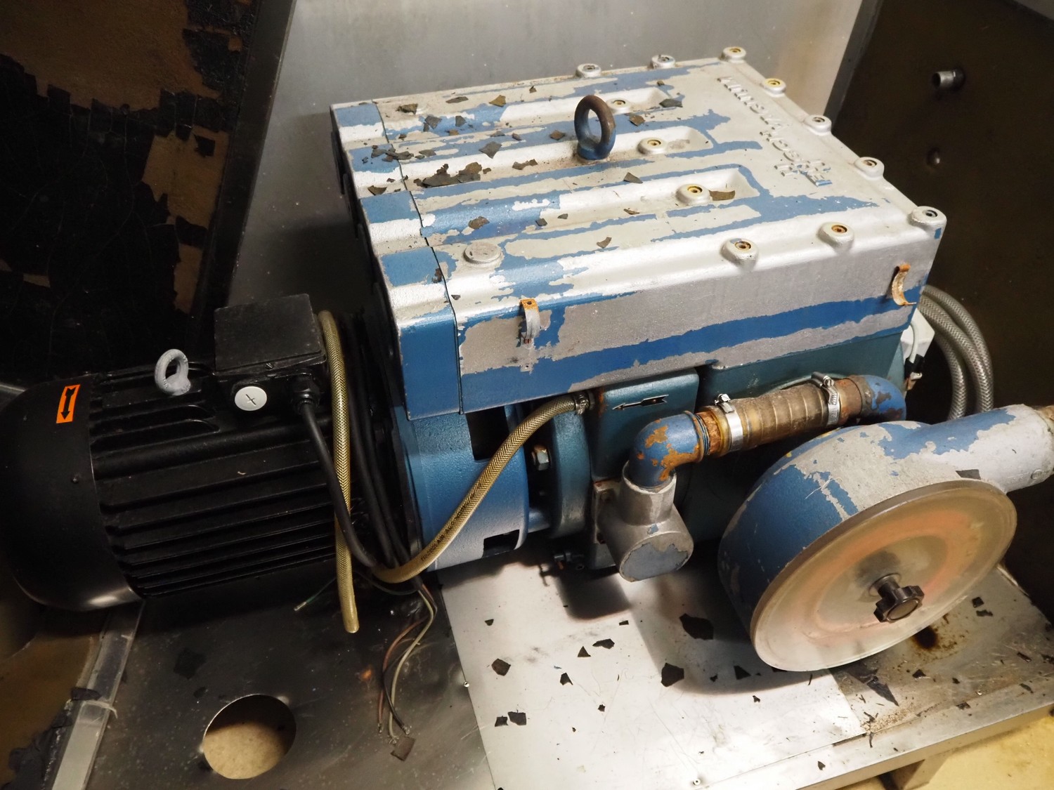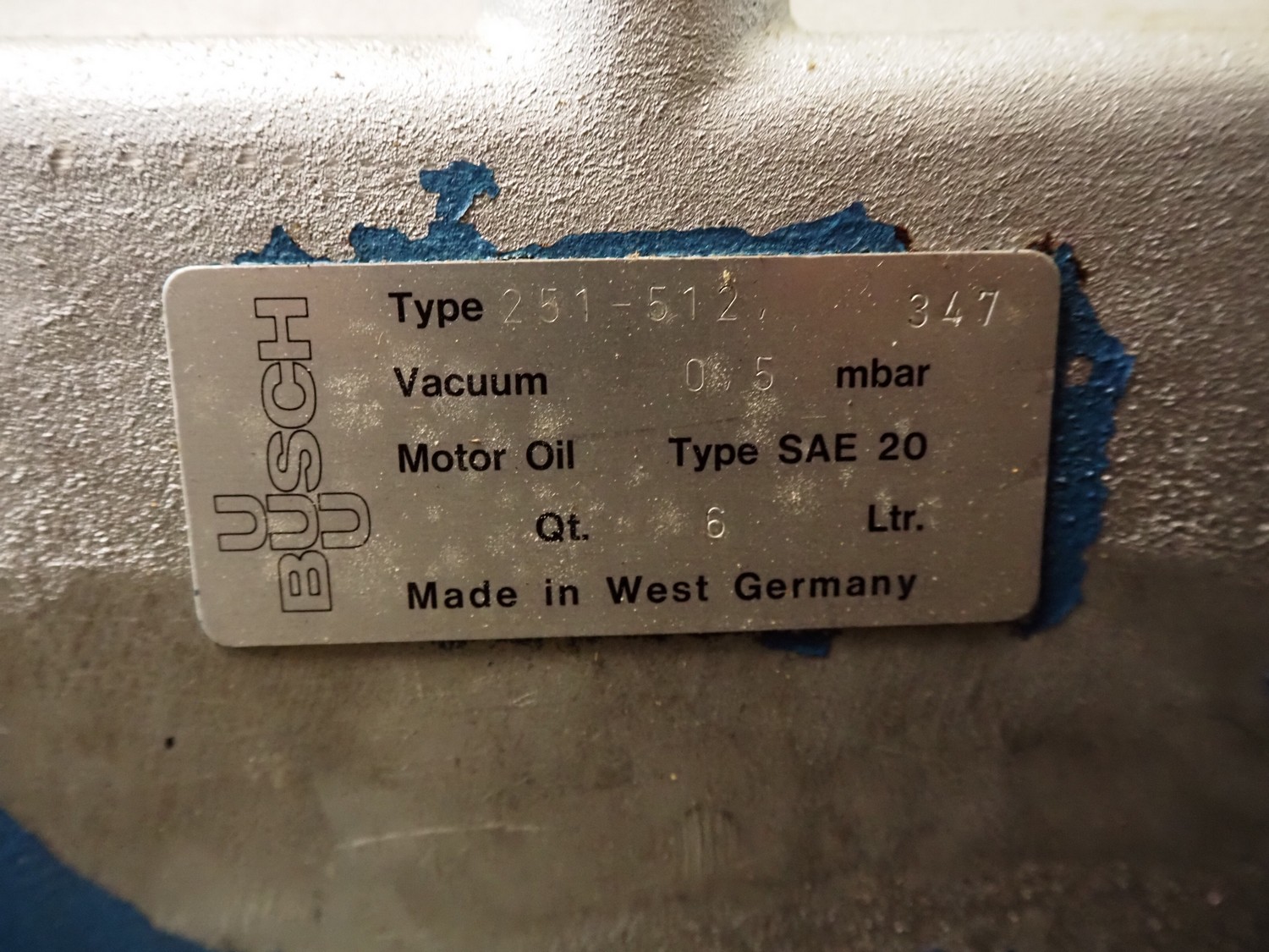 Busch vacuum pump, type: 251 - 512 347, 0.5 mbar, capacity: 250 m³/hour, dimensions: 1250 mm x 820 mm x 800 mm.