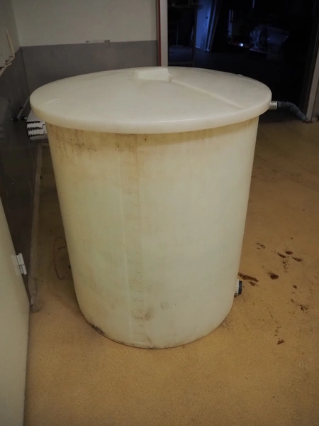 Plastic tank with lid, dimensions: 900 mm x 900 mm x 1100 mm.