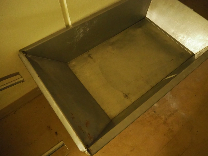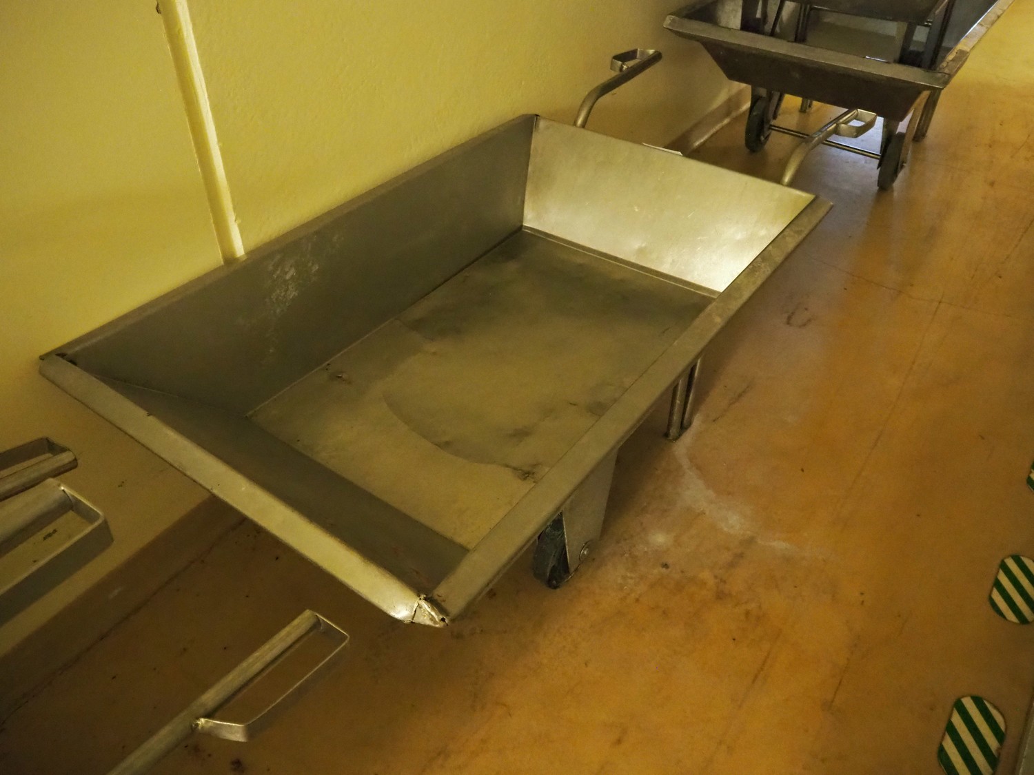 S/s wheel barrow, dimensions: 1950 mm x 850 mm x 590 mm.