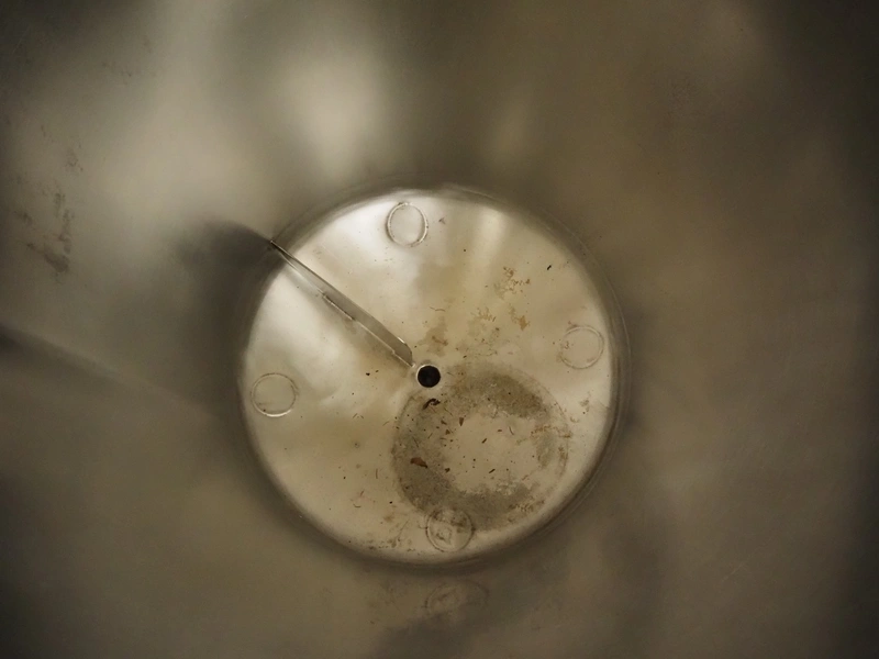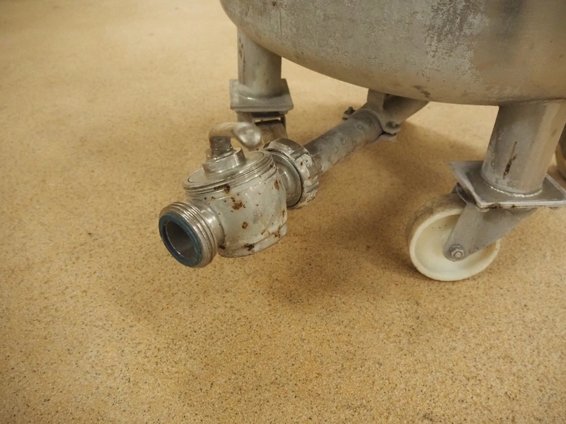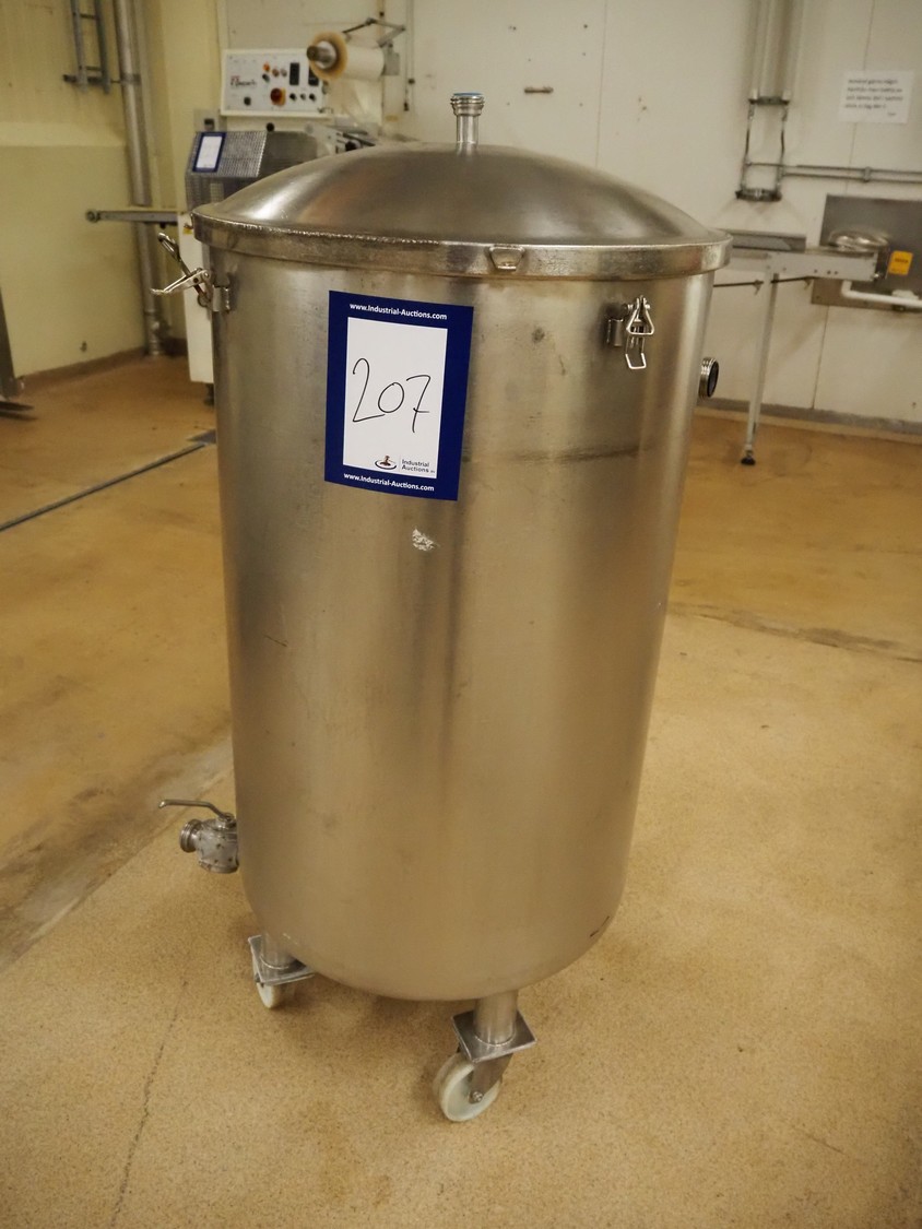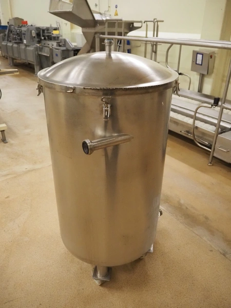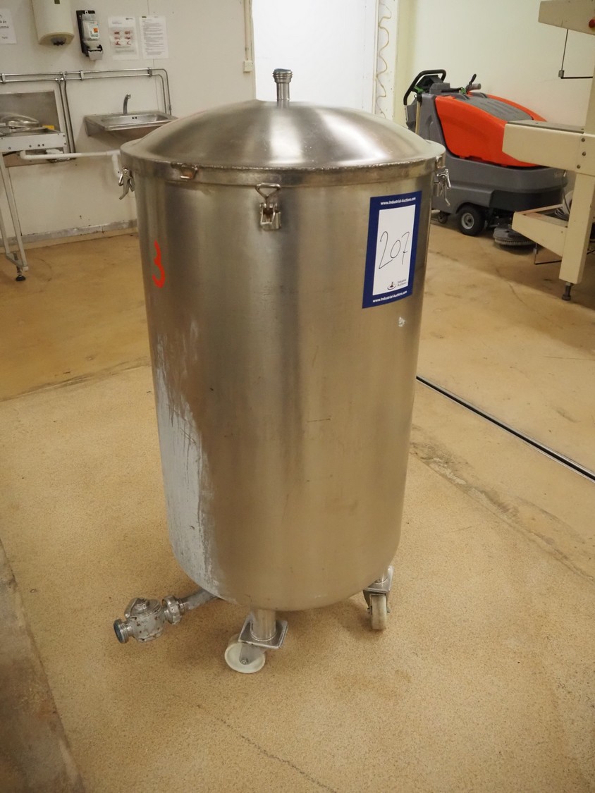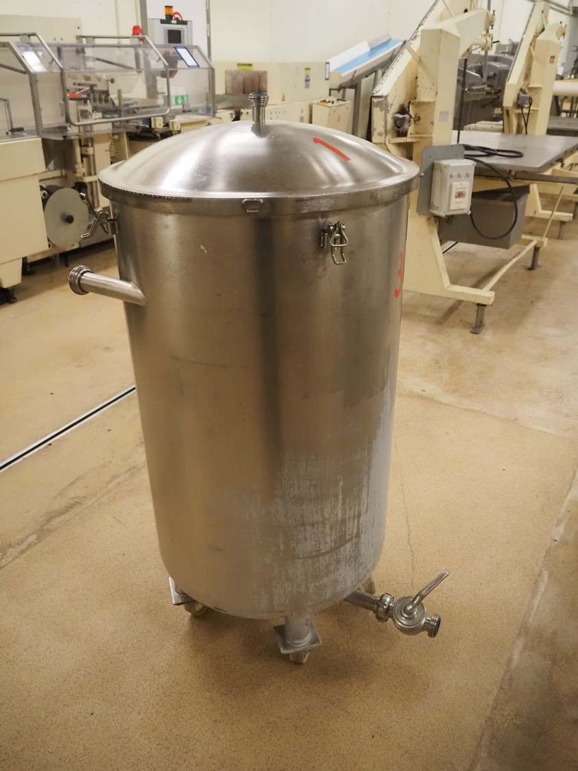 S/s mobile vessel, inside dimensions: Ø 600 x 1000 mm, total dimensions: 800 mm x 680 mm x 1320 mm.