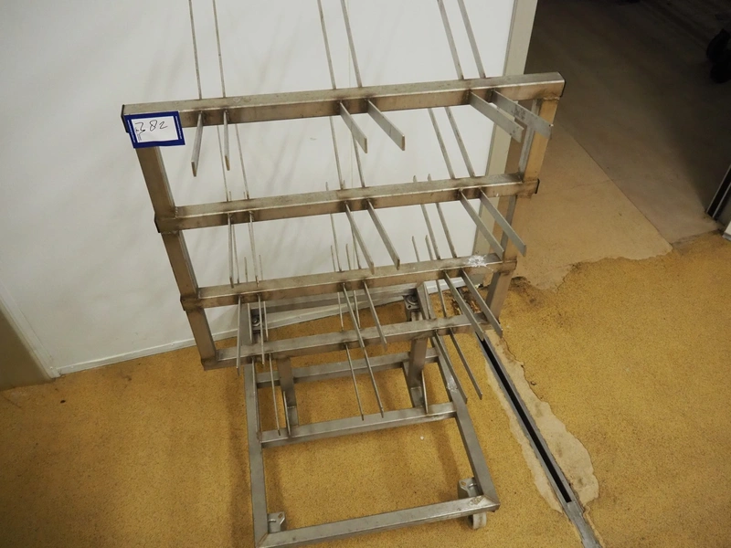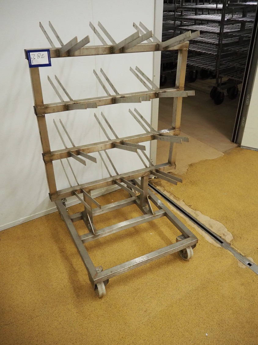Mobile s/s tool rack, dimensions: 900 mm x 700 mm x 1350 mm.