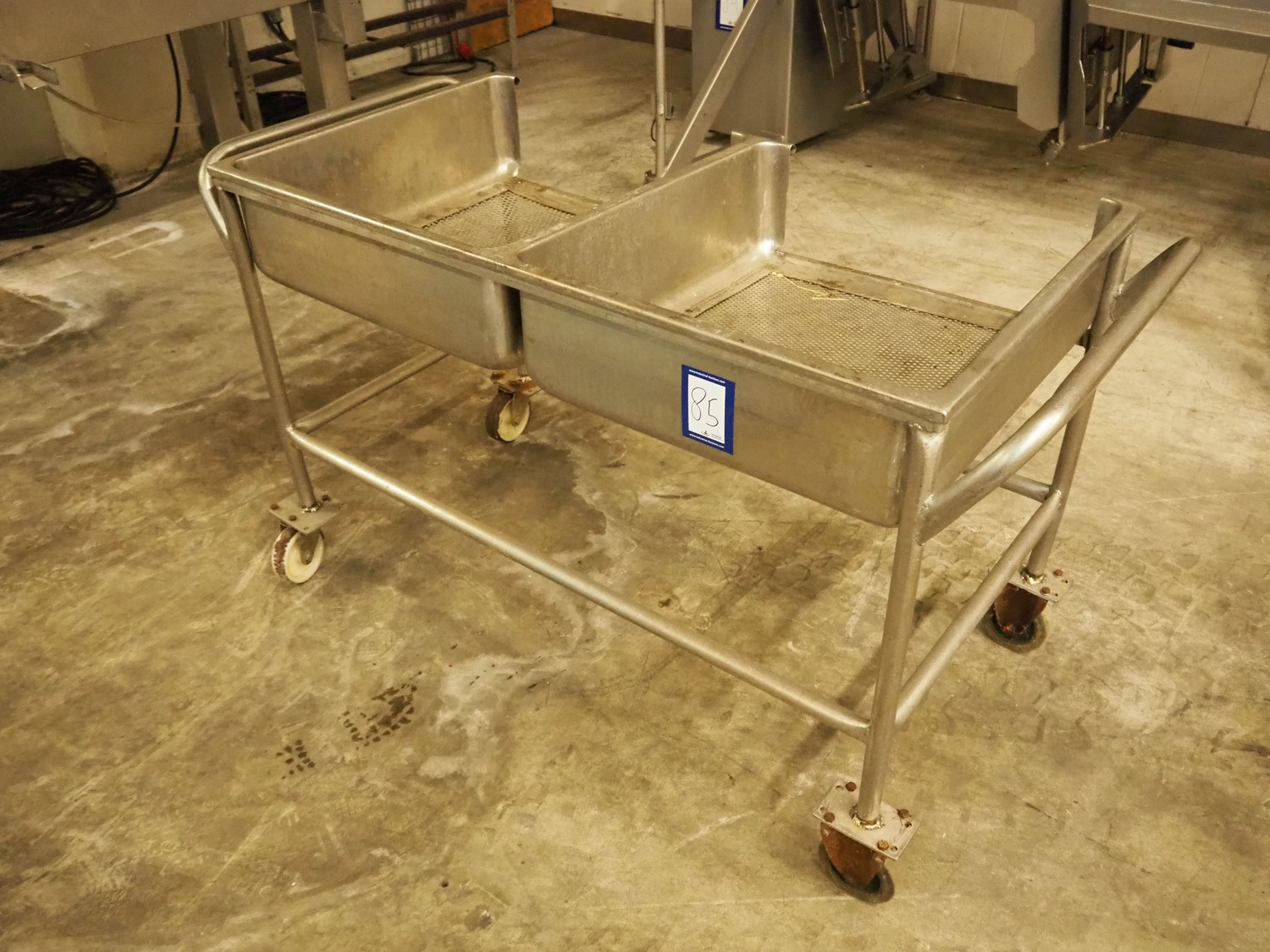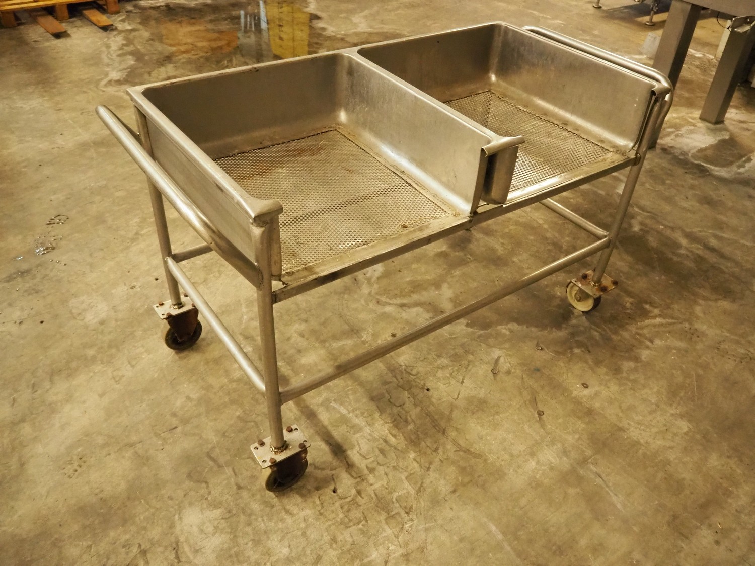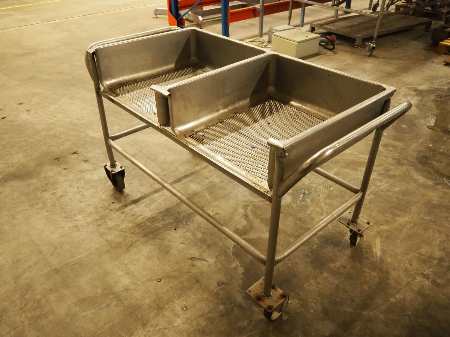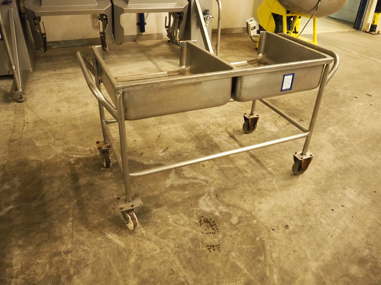S/s trolley, inside dimensions: (2x) 610 mm x 580 mm, total dimensions: 1430 mm x 660 mm x 820 mm.