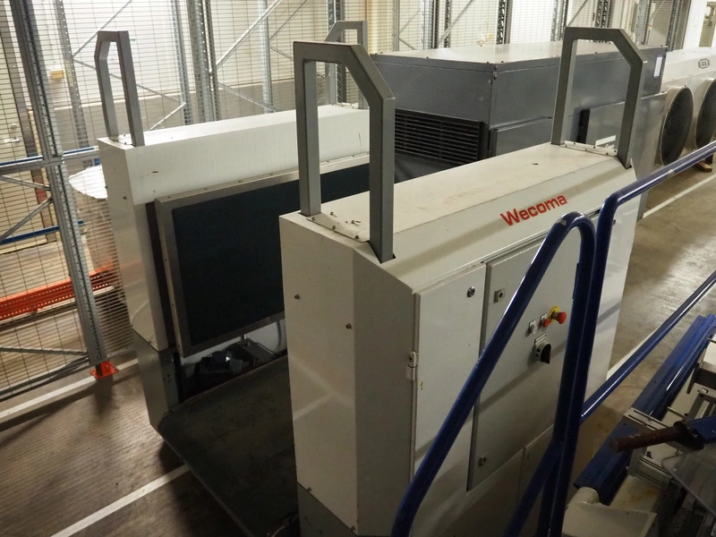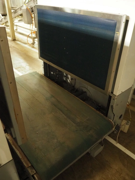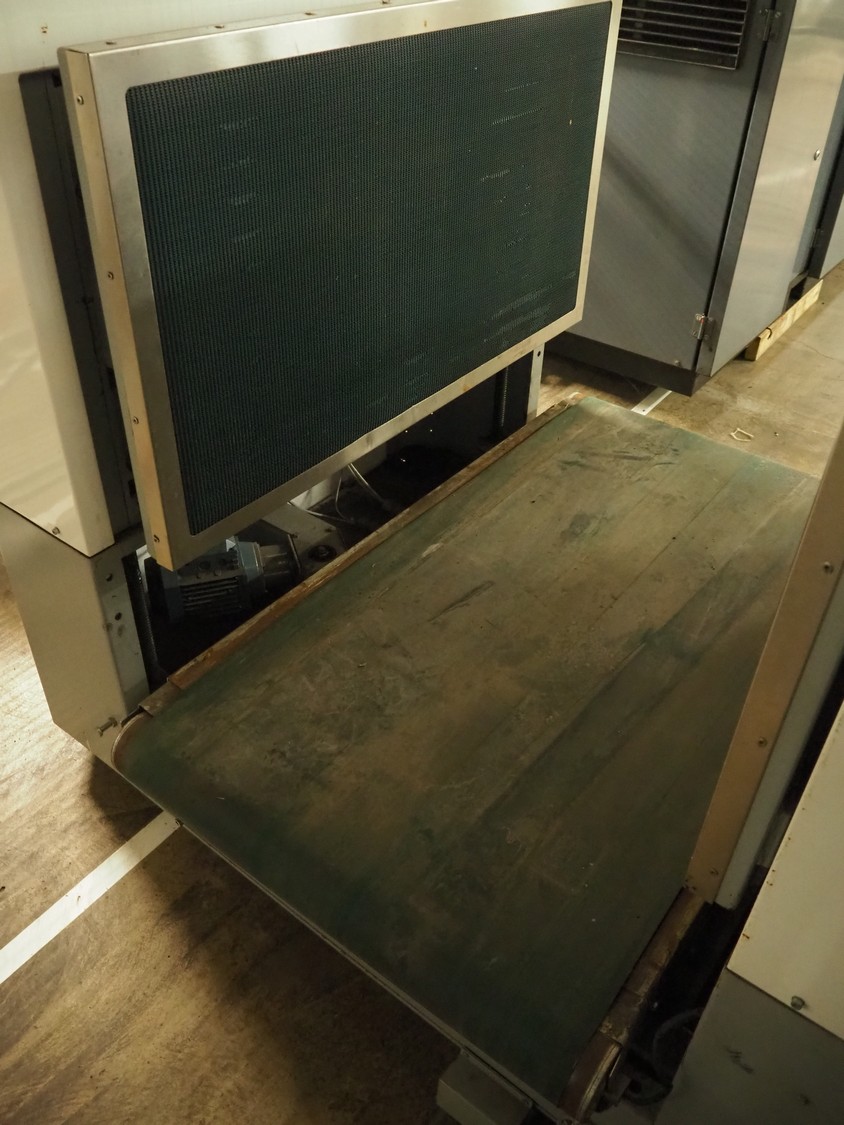 Pallet stacker / de-stacker, plastic belt, belt width: 800 mm, total dimensions: 1850 mm x 1550 mm x 2000 mm.