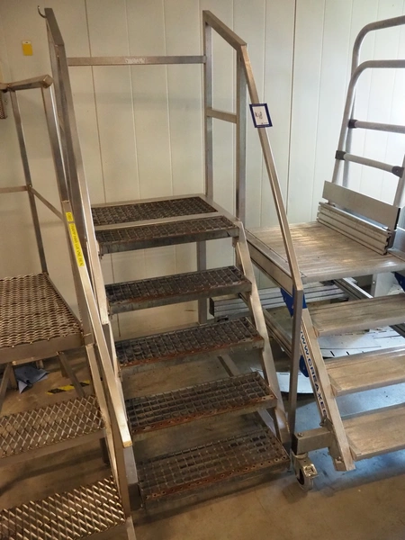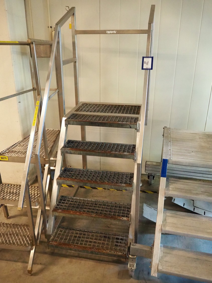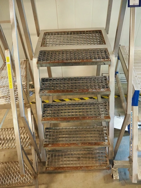 S/s platform with steel gratings, dimensions: 1200 mm x 720 mm x 1840 mm.
