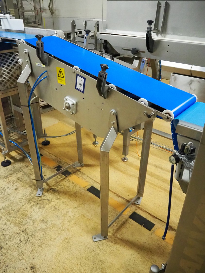 Maskin & Montage AB rejecting belt, type: RE BA DC, number: 100, year of construction: 12-2015, s/s frame, plastic belt, belt width: 280 mm, total dimensions: 1200 mm x 670 mm x 1320 mm.