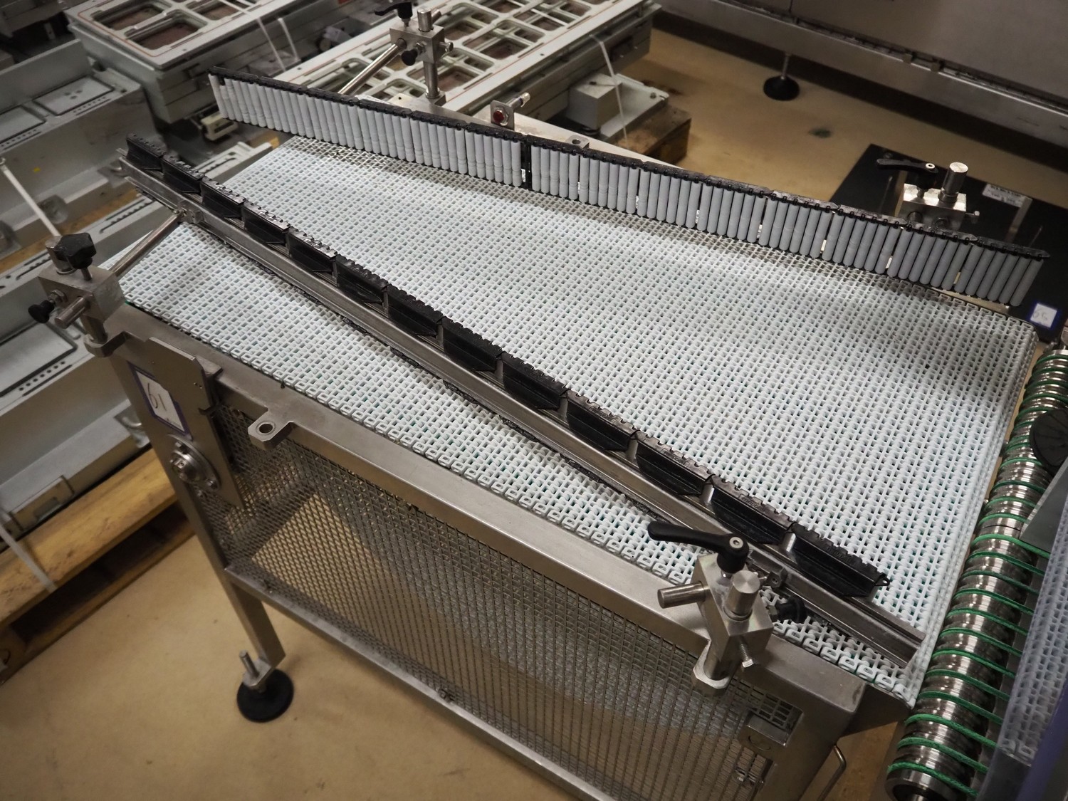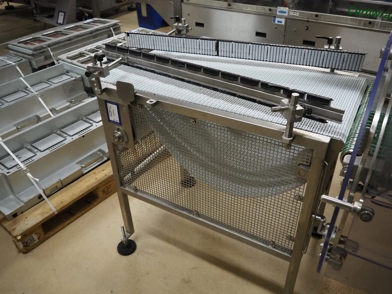 G. Mondini S.p.a. transport belt, model: ND/2-1, serial number: 3544/08, year of construction: 10/2008, 400 V, 3 Ph, 50 Hz, plastic mesh belt, belt width: 500 mm, total dimensions: 1050 mm x 900 mm x 1100 mm.