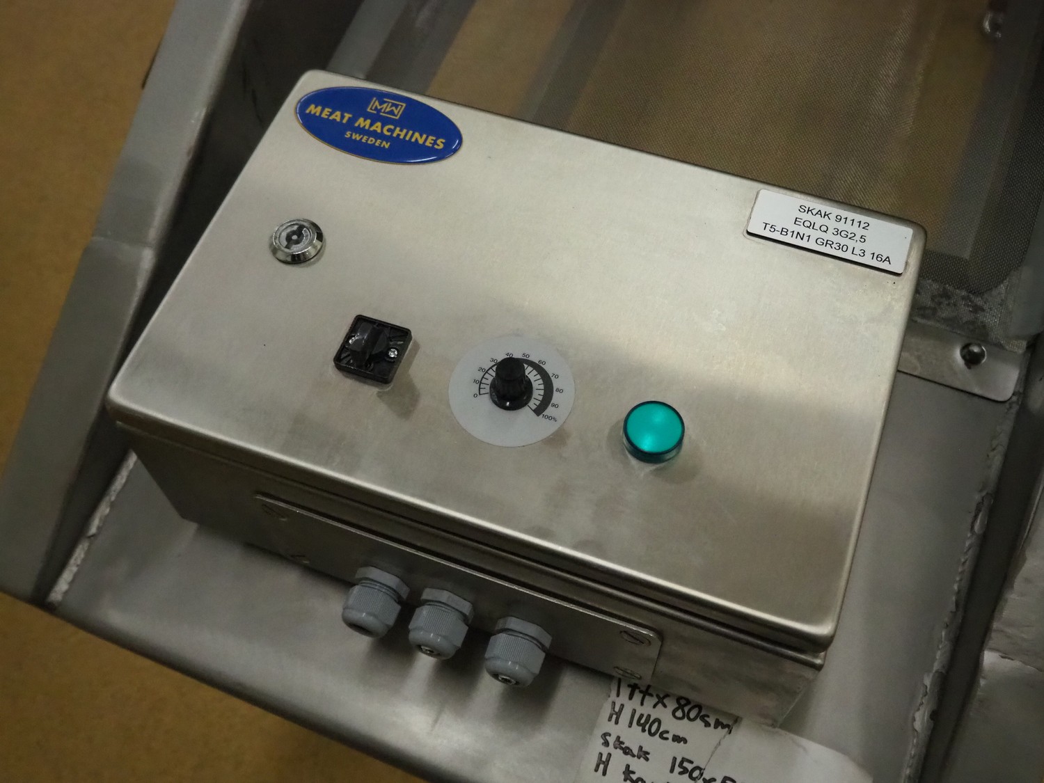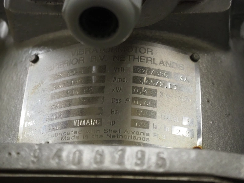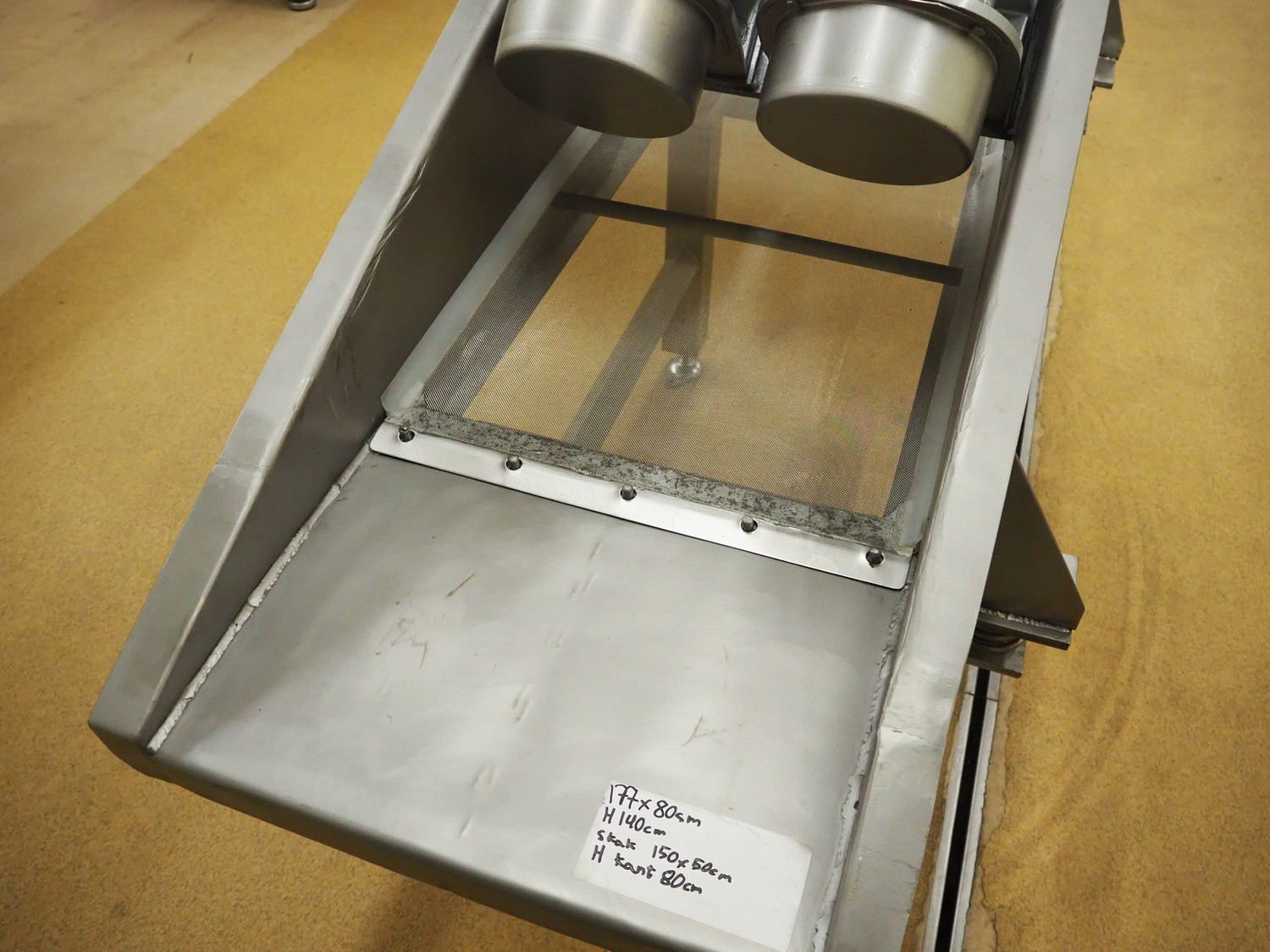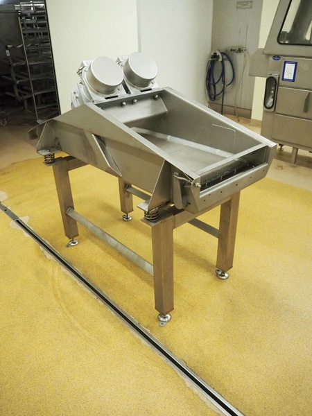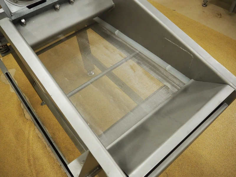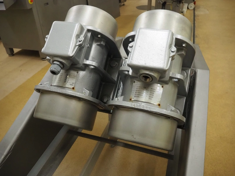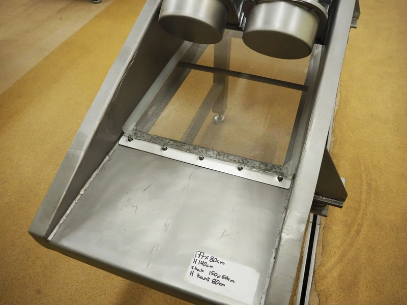 S/s vibration gutter with wire mesh, mesh width: 470 mm, total dimensions: 1750 mm x 800 mm x 1400 mm.