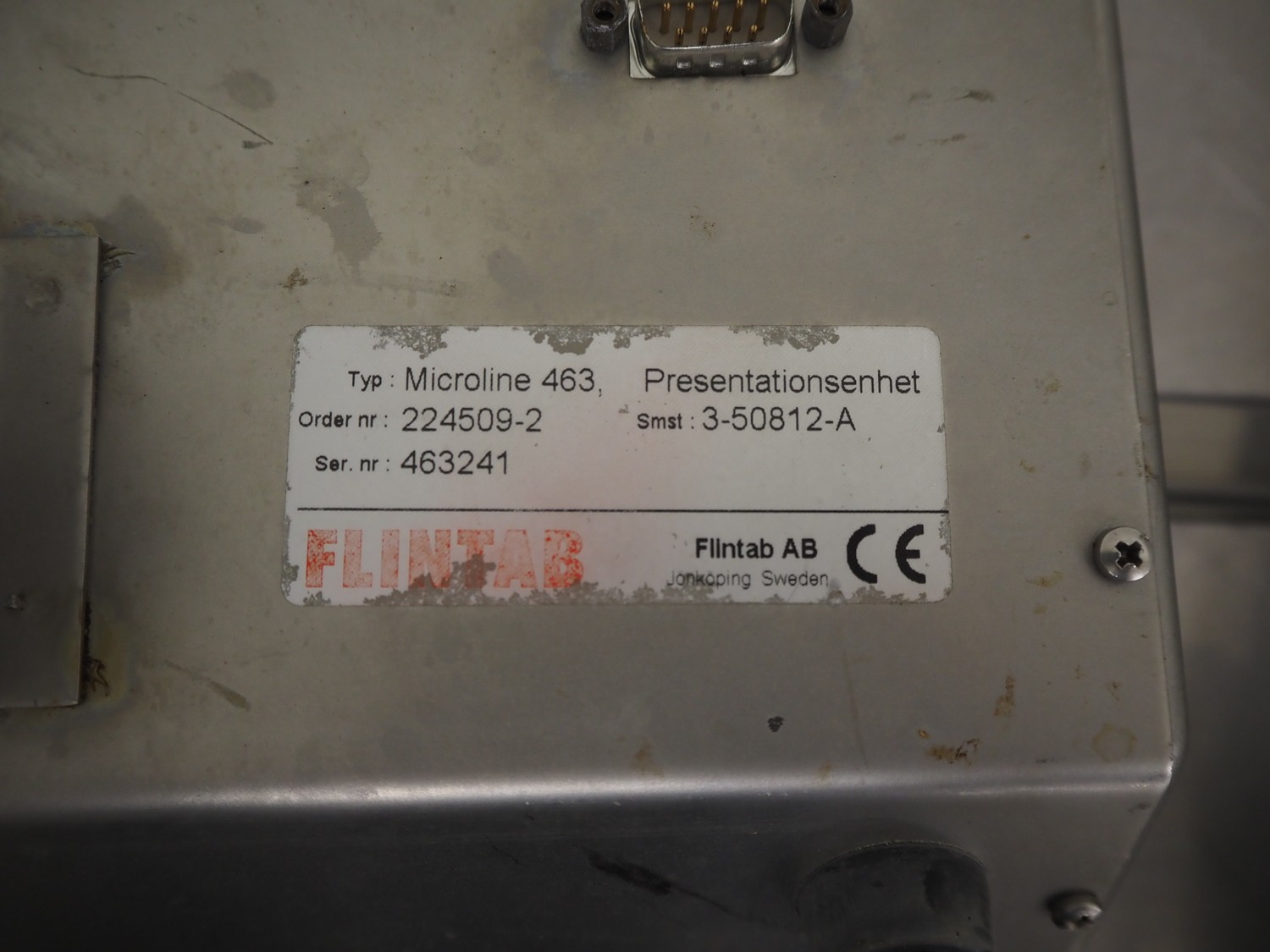 Flintab AB control panel, type: Microline 463, serial number: 463241, dimensions: 290 mm x 280 mm x 190 mm.