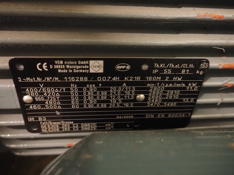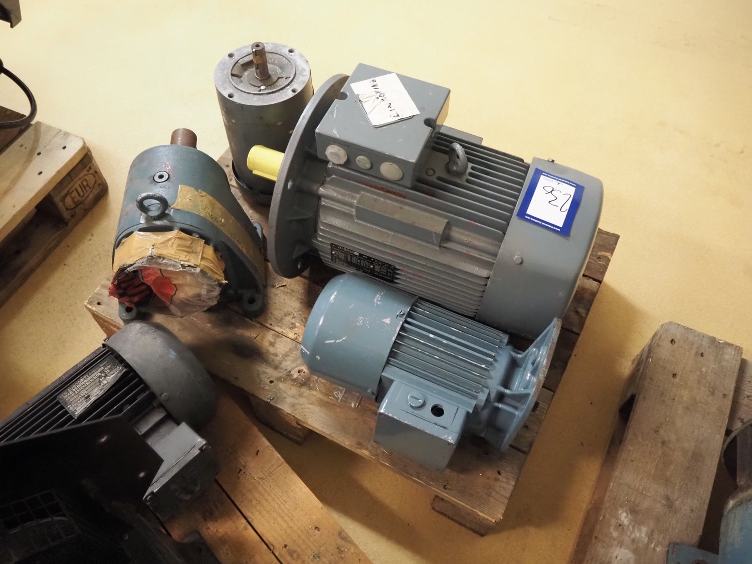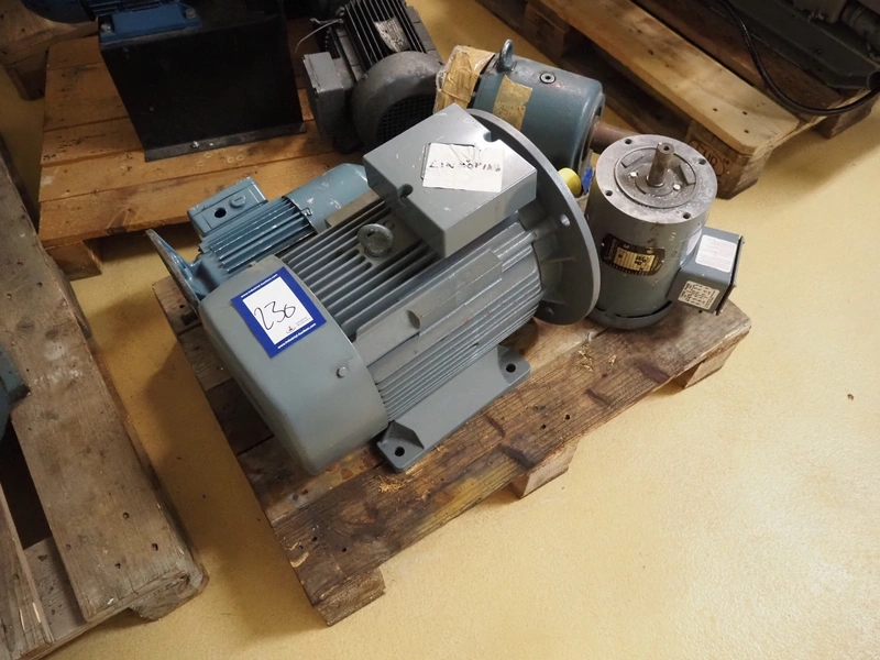 Pallet with 4 motors, among others: VEM, 11.0 kW, ABM, 1.5 kW, dimensions: 800 mm x 600 mm x 800 mm.