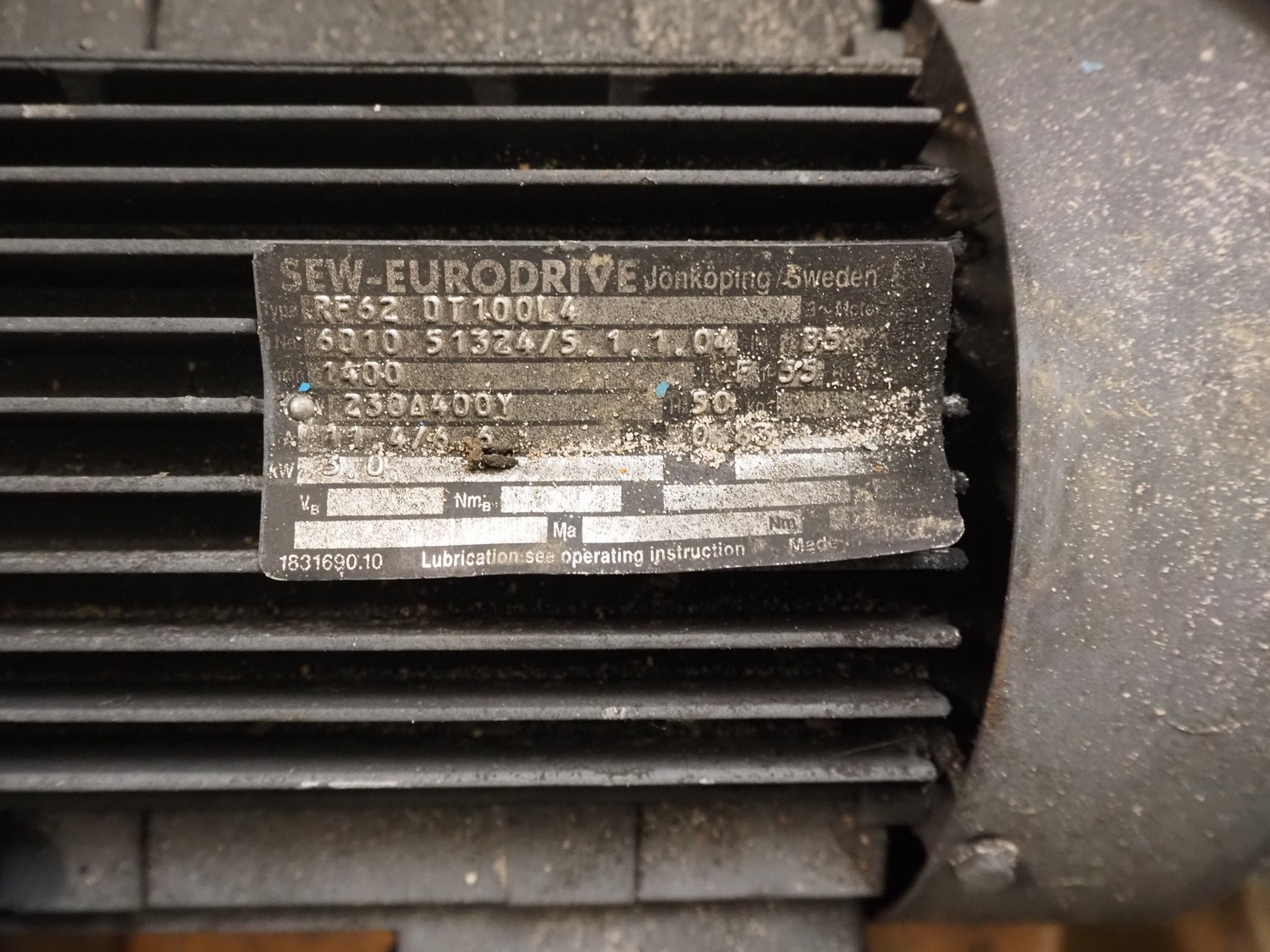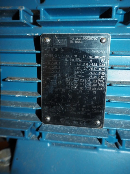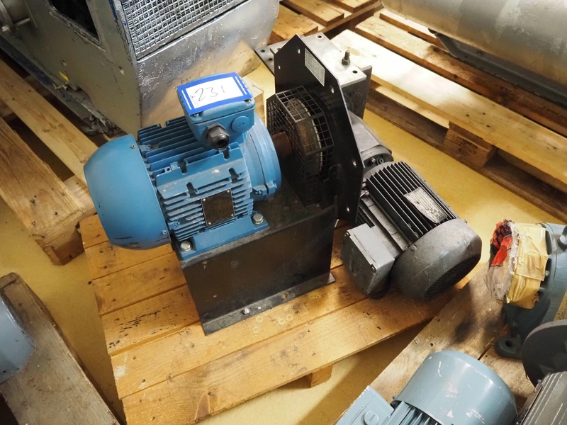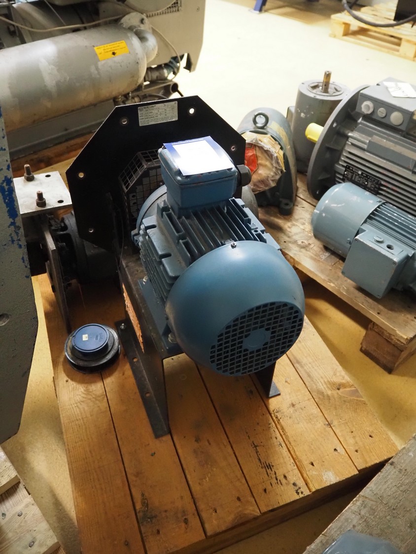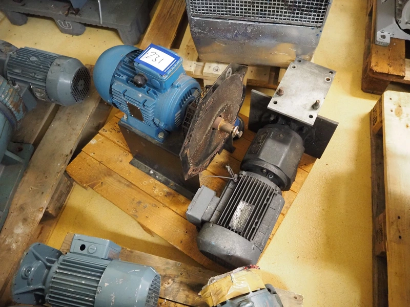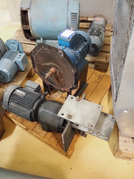 Pallet with WEG motor, model: 3 AL100L-04 and RF62 DT100L4, 3 kW, dimensions: 500 mm x 400 mm x 540 mm and SEW-Eurodrive motor.