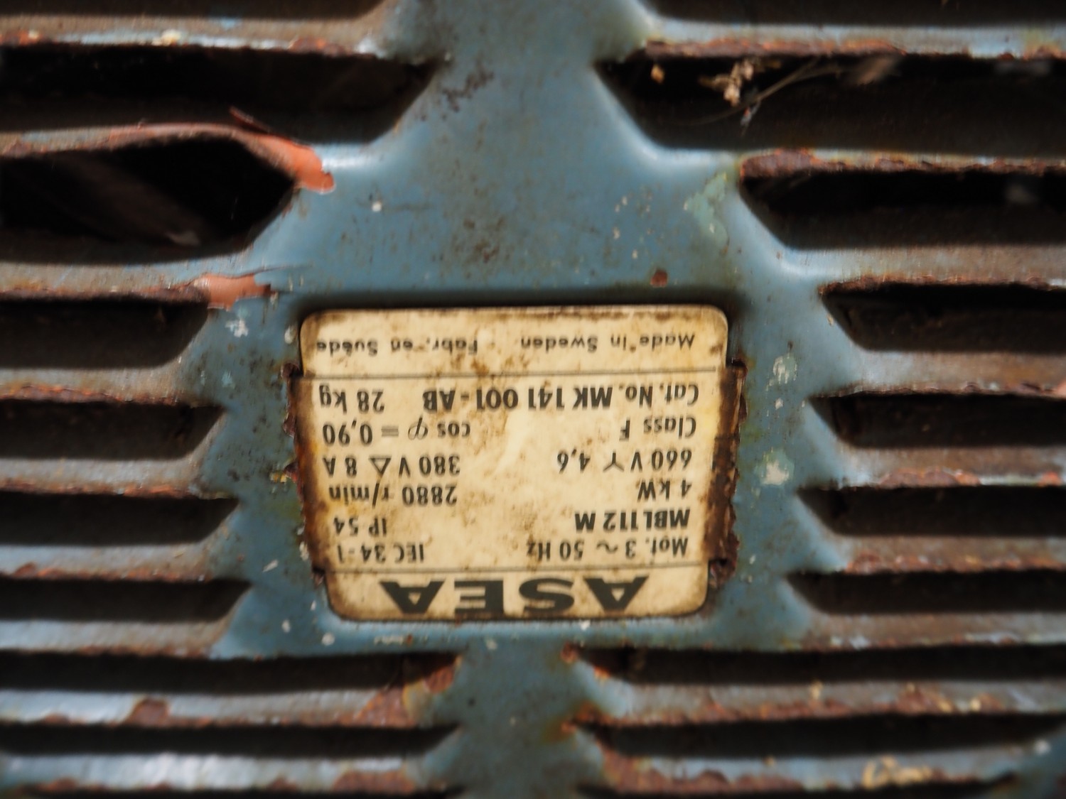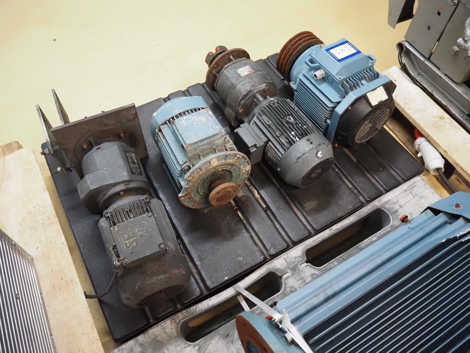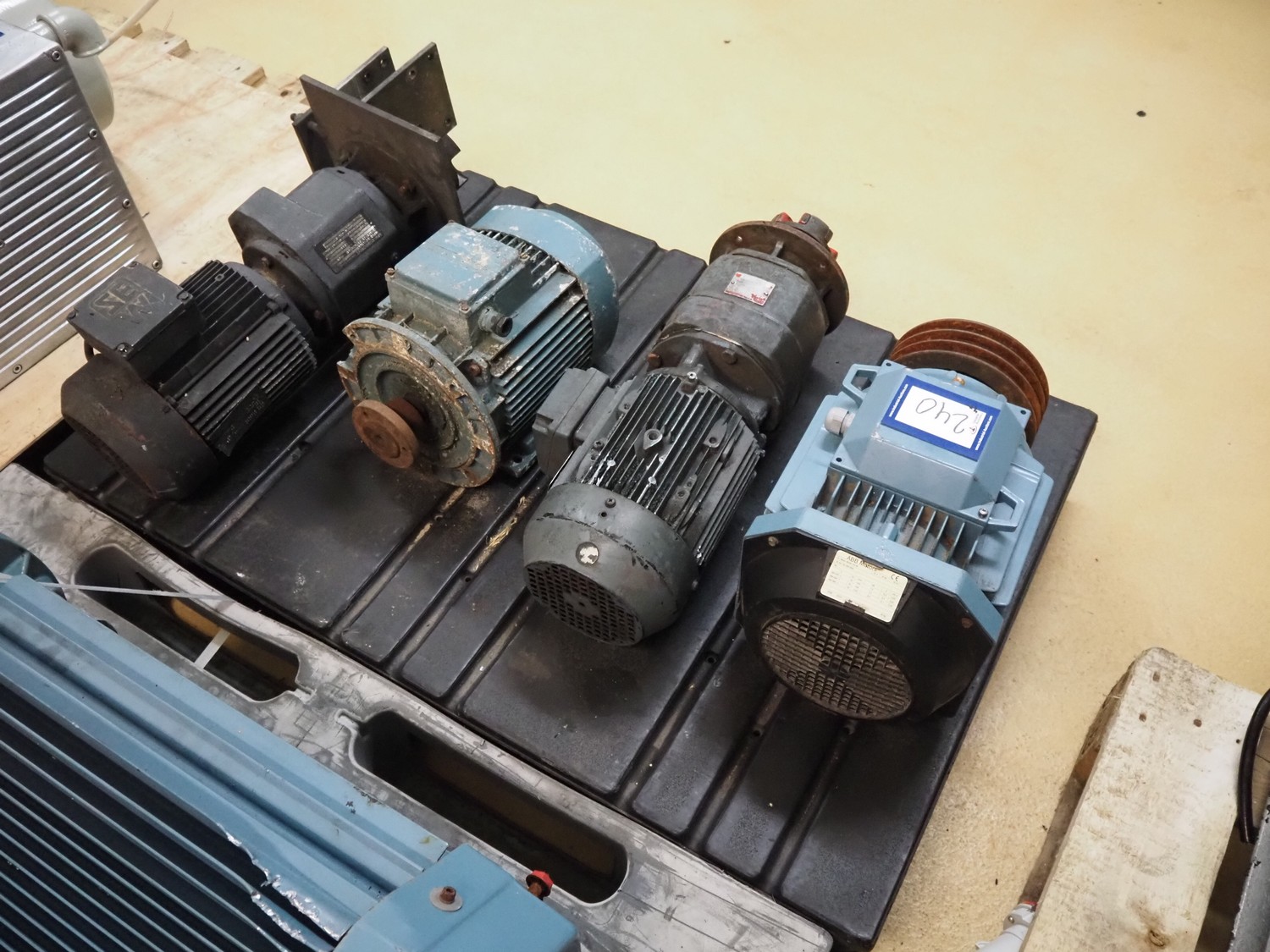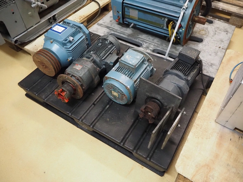 Pallet 4 motors, among others: ABB motor, 7.5 kW / 8.6 kW, SEW motor, dimensions: 400 mm x 250 mm x 250 mm, ASEA motor, 4 kW, dimensions: 750 mm x 300 mm x 300 mm and Brook Crompton motor, 2.2 kW, dimensions: 650 mm x 300 mm x 200 mm.