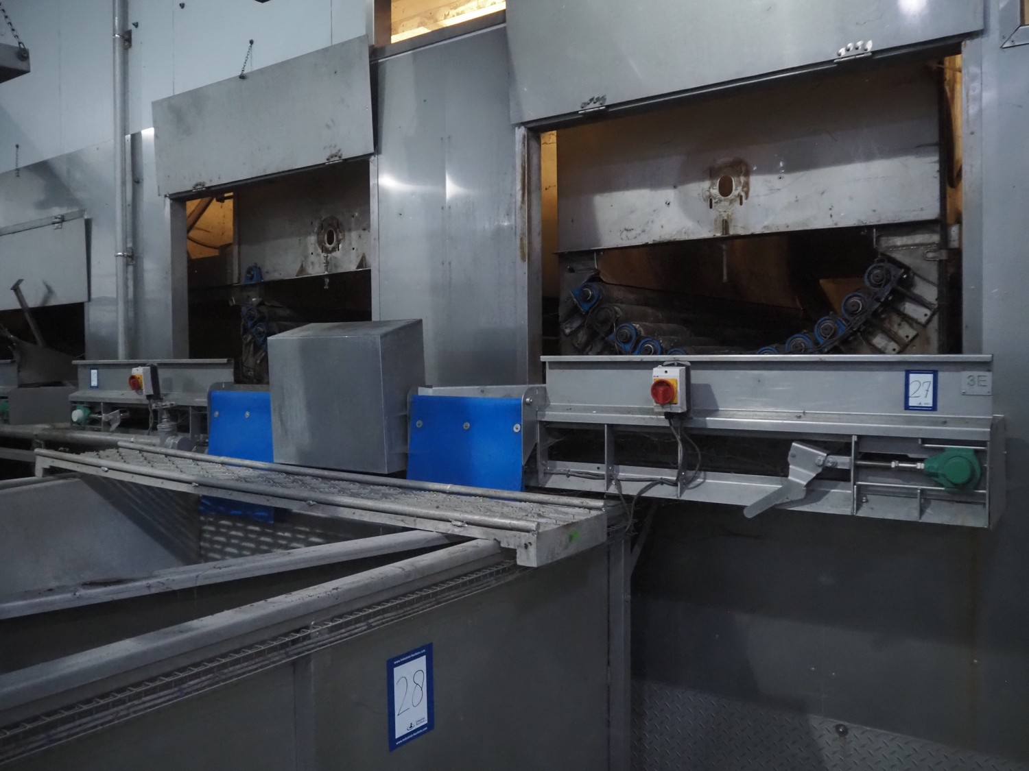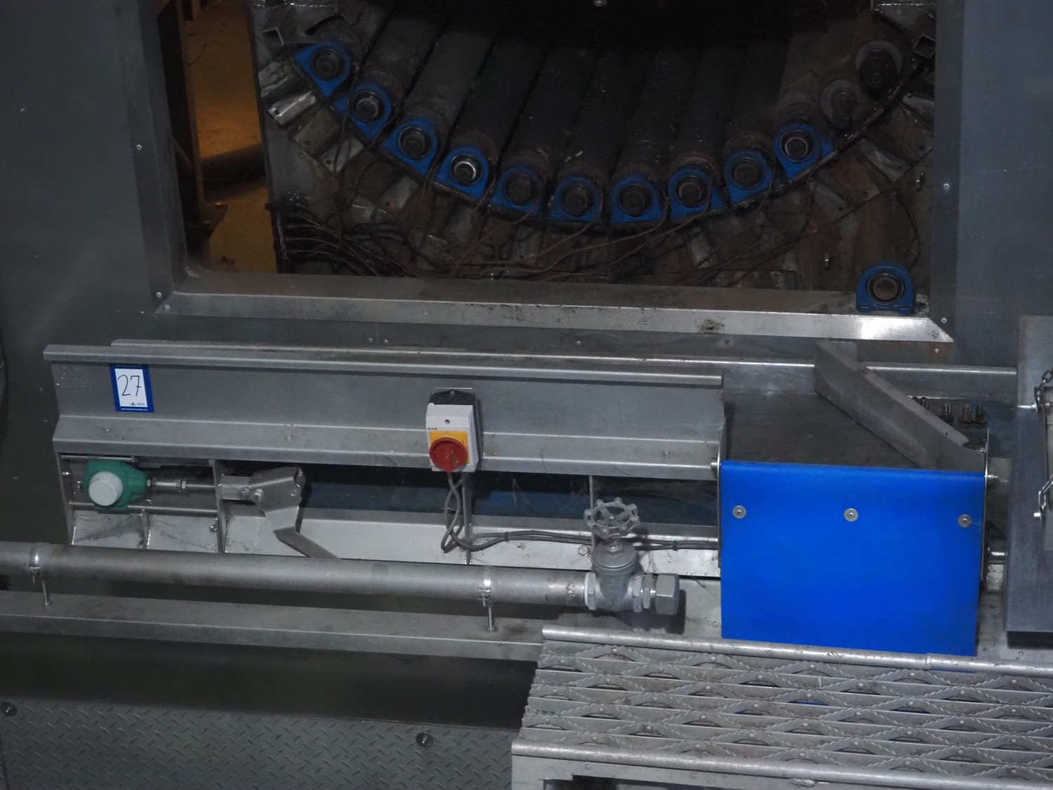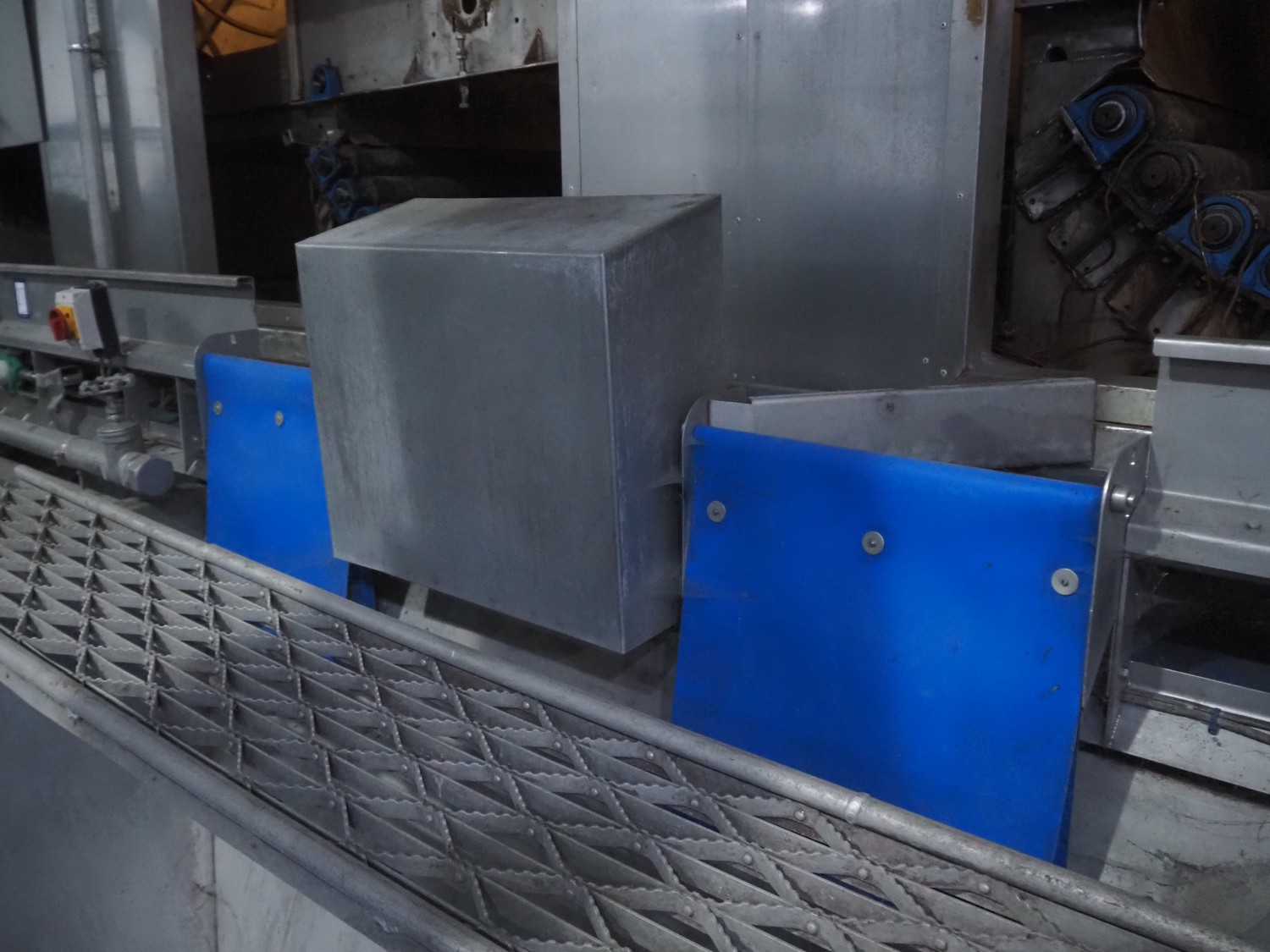 Tong Engineering infeed belt, type: CONVEYOR, serial number: 14-16963, year of construction: 2015, plastic belt, belt width: 295 mm x clearance: (2x) 445 mm x 100 mm, total dimensions: 4000 mm x 500 mm x 500 mm.