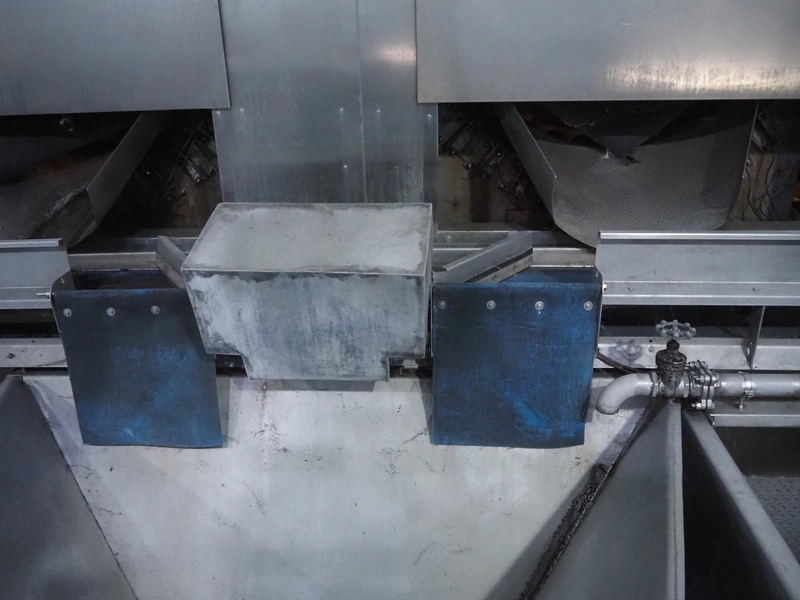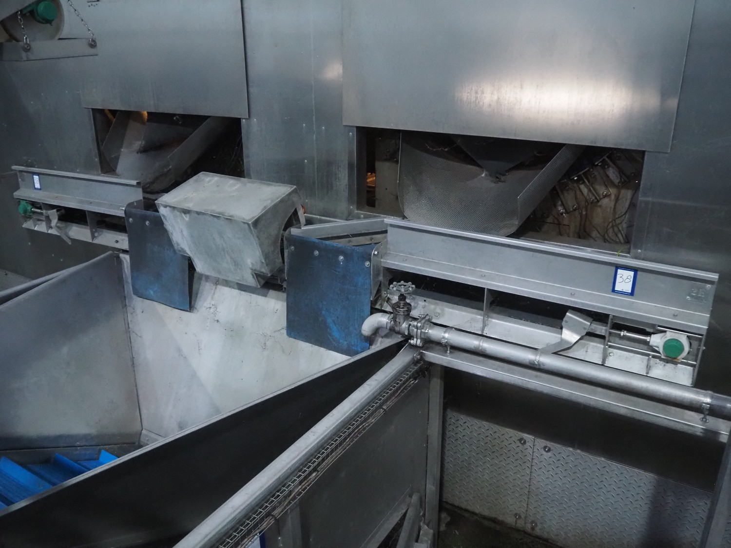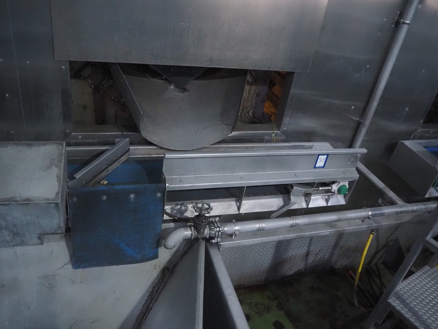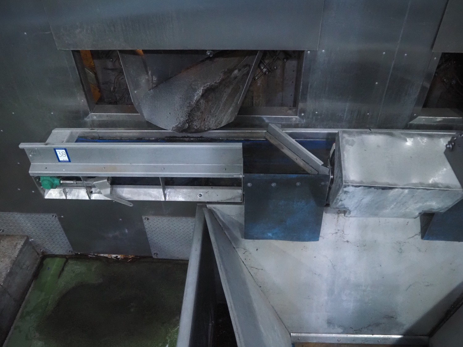 Tong Engineering infeed belt, plastic belt, belt width: 295 mm x clearance: (2x) 445 mm x 100 mm, total dimensions: 4000 mm x 500 mm x 500 mm.