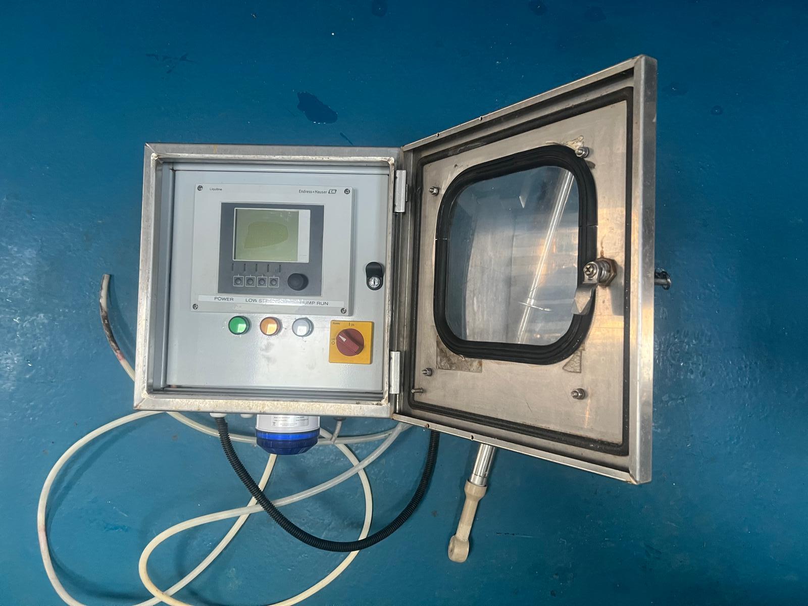 Endress + Hauser dosing unit with monitoring probe, dimensions: 400 mm x 340 mm x 500 mm.