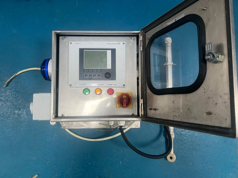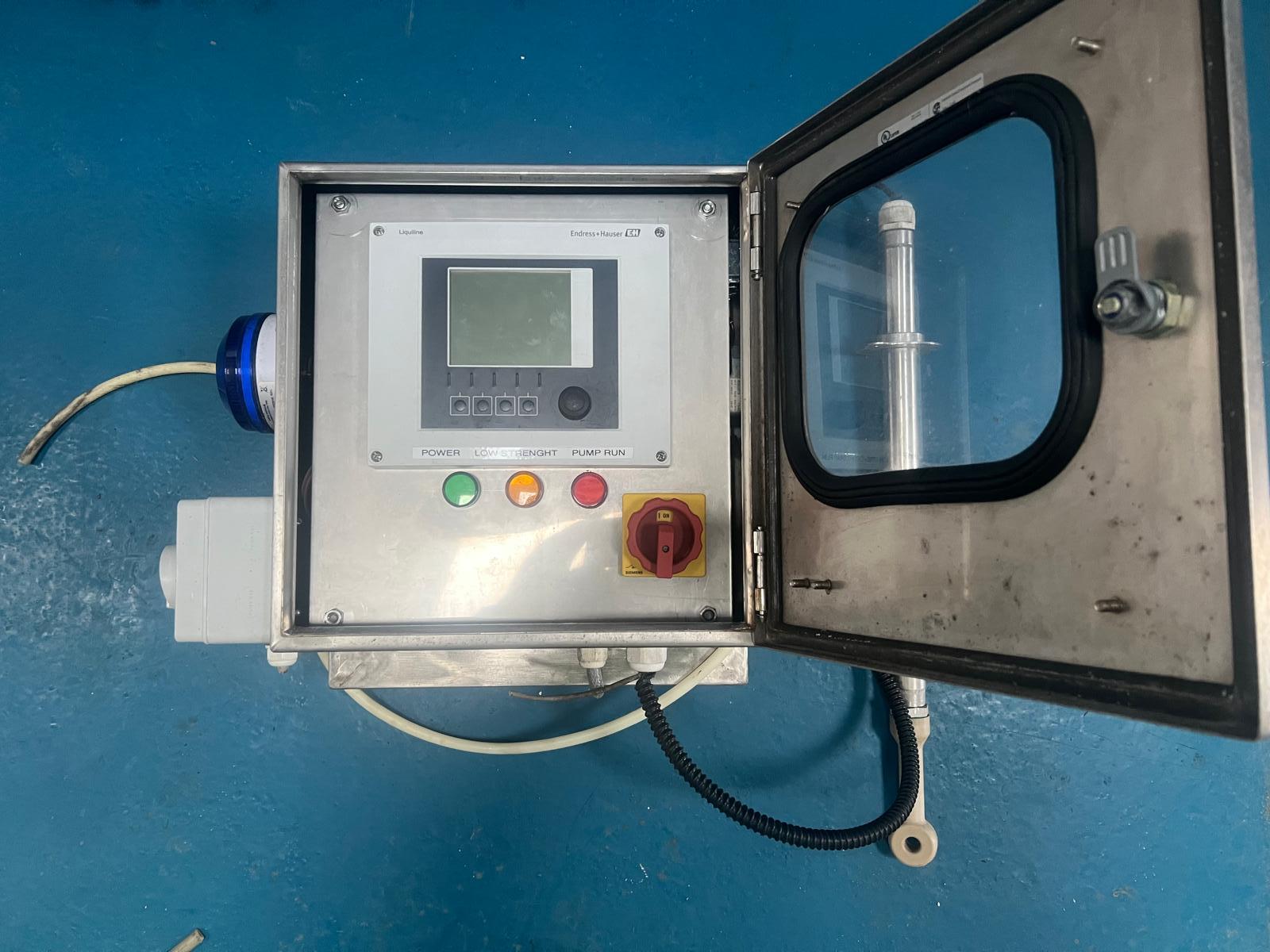 Endress + Hauser dosing unit with monitoring probe, dimensions: 400 mm x 340 mm x 500 mm.
